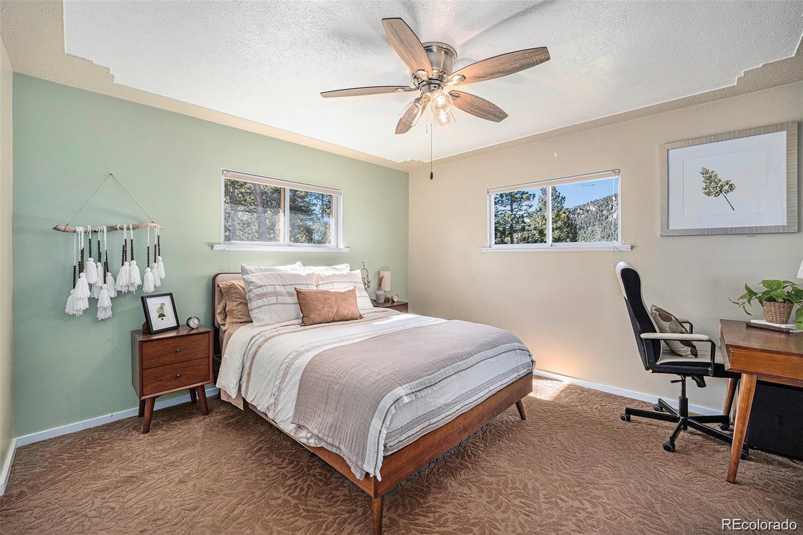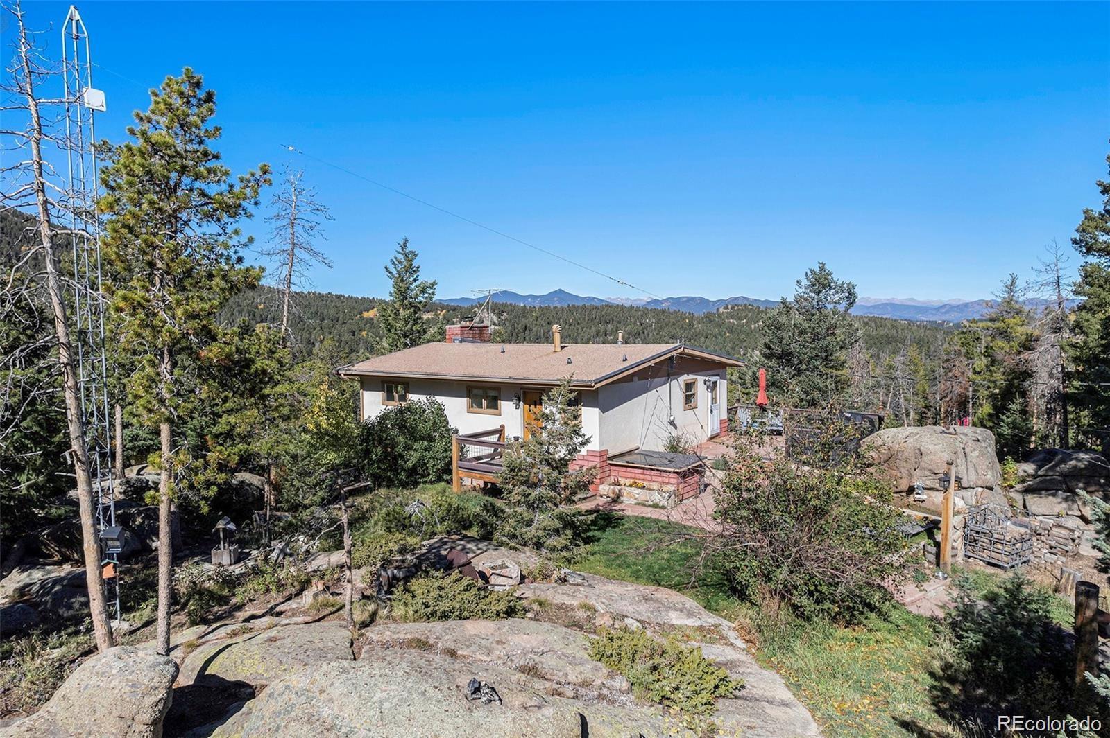 Majestic Views for Miles! Mountain Retreat in Conifer. Perched high above the foothills with sweeping views that seem to go on forever, this 6 acre property is a rare Colorado mountain retreat. Mature pines, dramatic rock outcroppings, and wide-open skies create a setting that is both breathtaking and deeply peaceful. Originally built in 1956 and lovingly maintained ever since, this home blends timeless craftsmanship with modern updates. Inside, you’ll find 4 bedrooms and 1 full bath across 1,872 finished square feet. The main level welcomes you with oak hardwood floors, a wood-burning fireplace, and a bright eat-in kitchen featuring solid oak cabinetry and a gas range. A main-floor bedroom, full bath, and laundry with sink and stackable washer/dryer make daily living easy. The walk-out basement includes three bedrooms with garden-level windows, tray ceilings, and beautiful hand-finished plaster work—showcasing the artistry that makes this home truly one-of-a-kind. Step outside to take in endless mountain vistas, soak in the mountain lifestyle, and watch hummingbirds from your back deck. Whether you’re searching for a full-time residence, a weekend escape, or an investment with room to grow, this private retreat offers the perfect mix of history, character, and Colorado beauty! The views are forever—the opportunity is now.