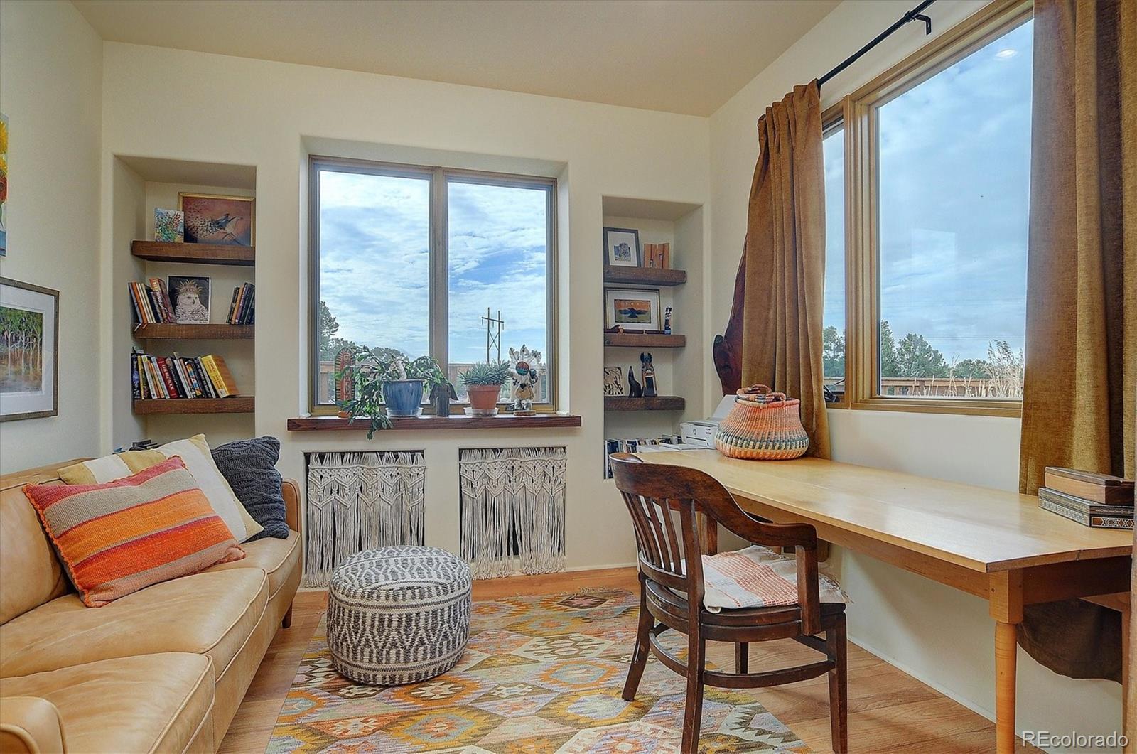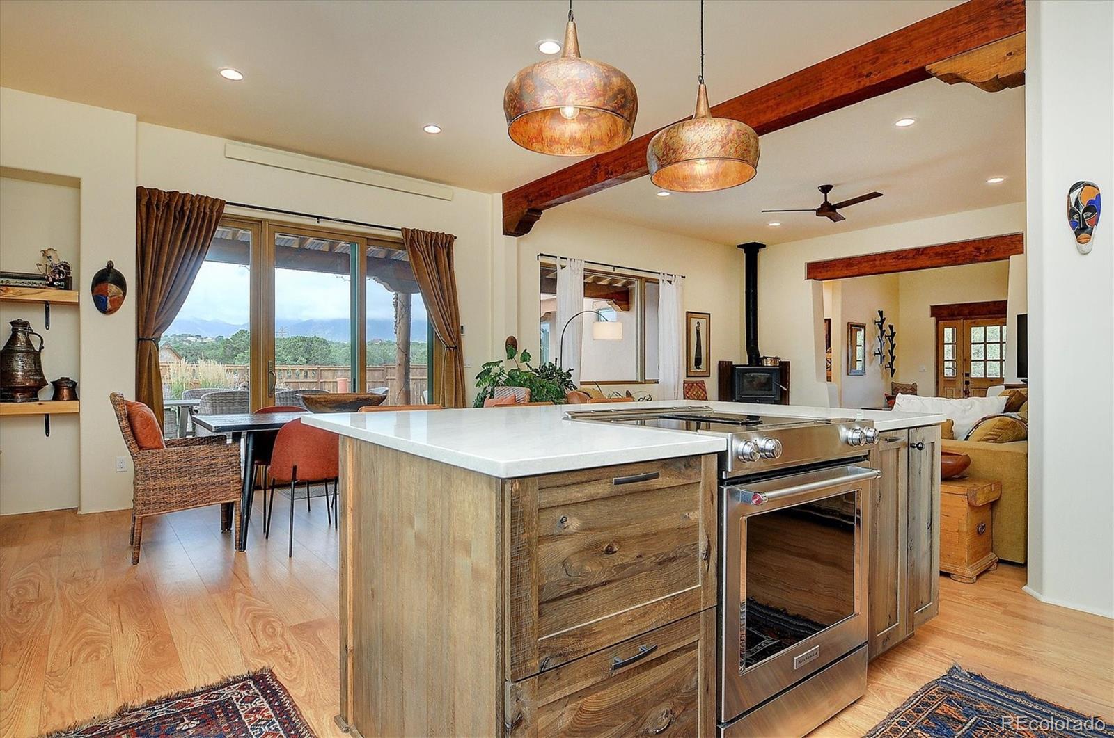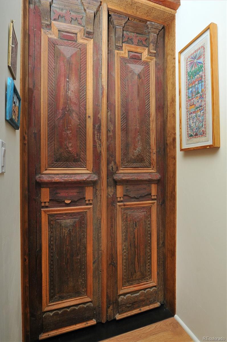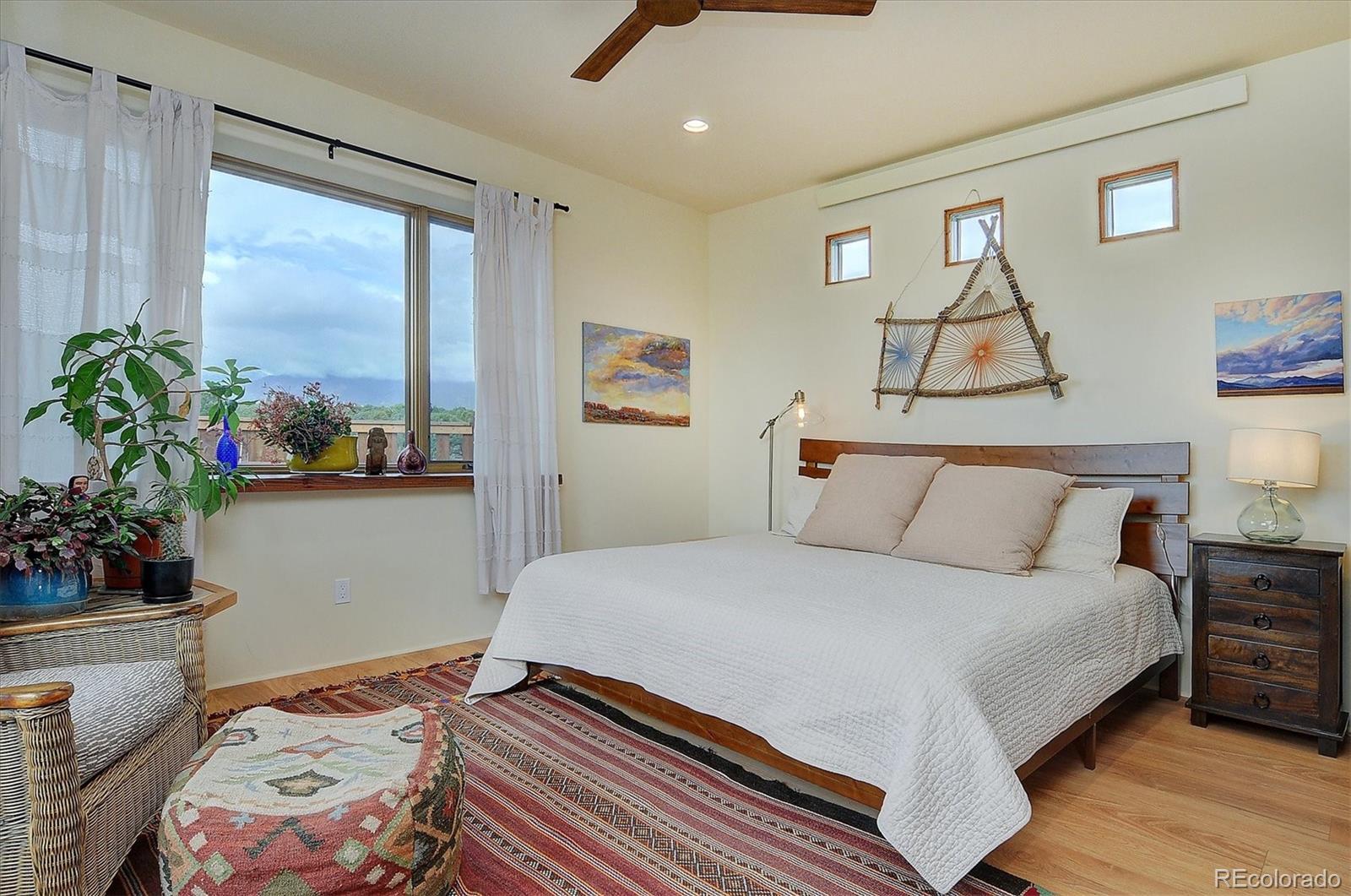 Experience elevated living in timeless Santa Fe style. Nestled in the heart of a storied mountain town rich with heritage and natural beauty, this custom-built residence is the pinnacle of elegance. Thoughtfully designed in the classic Santa Fe style, this home blends handcrafted detail with modern sophistication - all set against a backdrop of sweeping mountain vistas. From the moment you step inside, you're welcomed into a space where organic textures, warm hues, and clean contemporary lines coexist in harmony. Exposed vigas, intentionally curated doors and eclectic features reflect timeless character, while upscale appliances, energy efficient heating units and expansive glass windows bring comfort and innovation to every room. The open-concept great room flows effortlessly into a chef's kitchen and dining space - ideal for entertaining or quiet evenings by the free-standing wood burning stove. Two generously sized suites, spa-inspired bathrooms and private outdoor courtyard offer moments of serenity, while the stunning rooftop deck offers panoramic views that frame sunrises and sunsets over the mountains. Two versatile outbuildings, a large yurt and studio provide additional creative or office space. Augmented well allows for outside watering. Located minutes from historic downtown restaurants and shops, hiking trails, with the Arkansas River and ski slopes nearby, this is more than a home - it's a lifestyle immersed in nature and refined mountain living. See uploaded Special Features document for additional details.