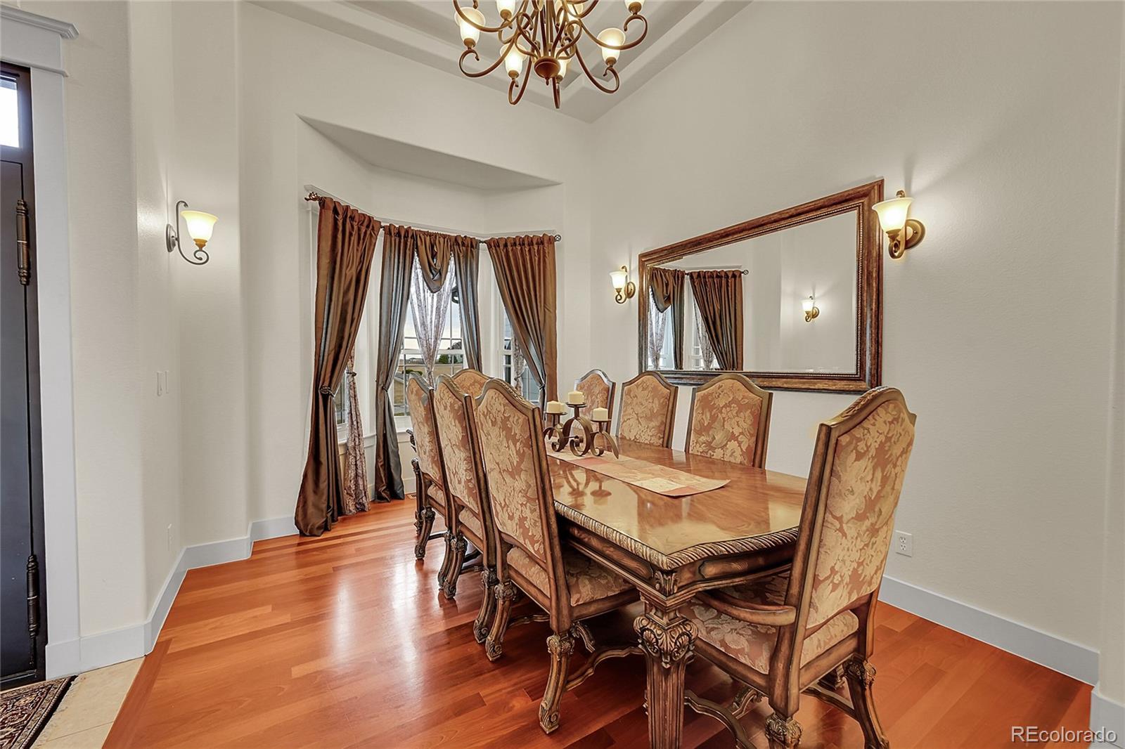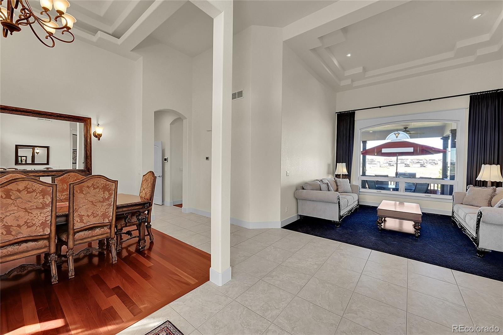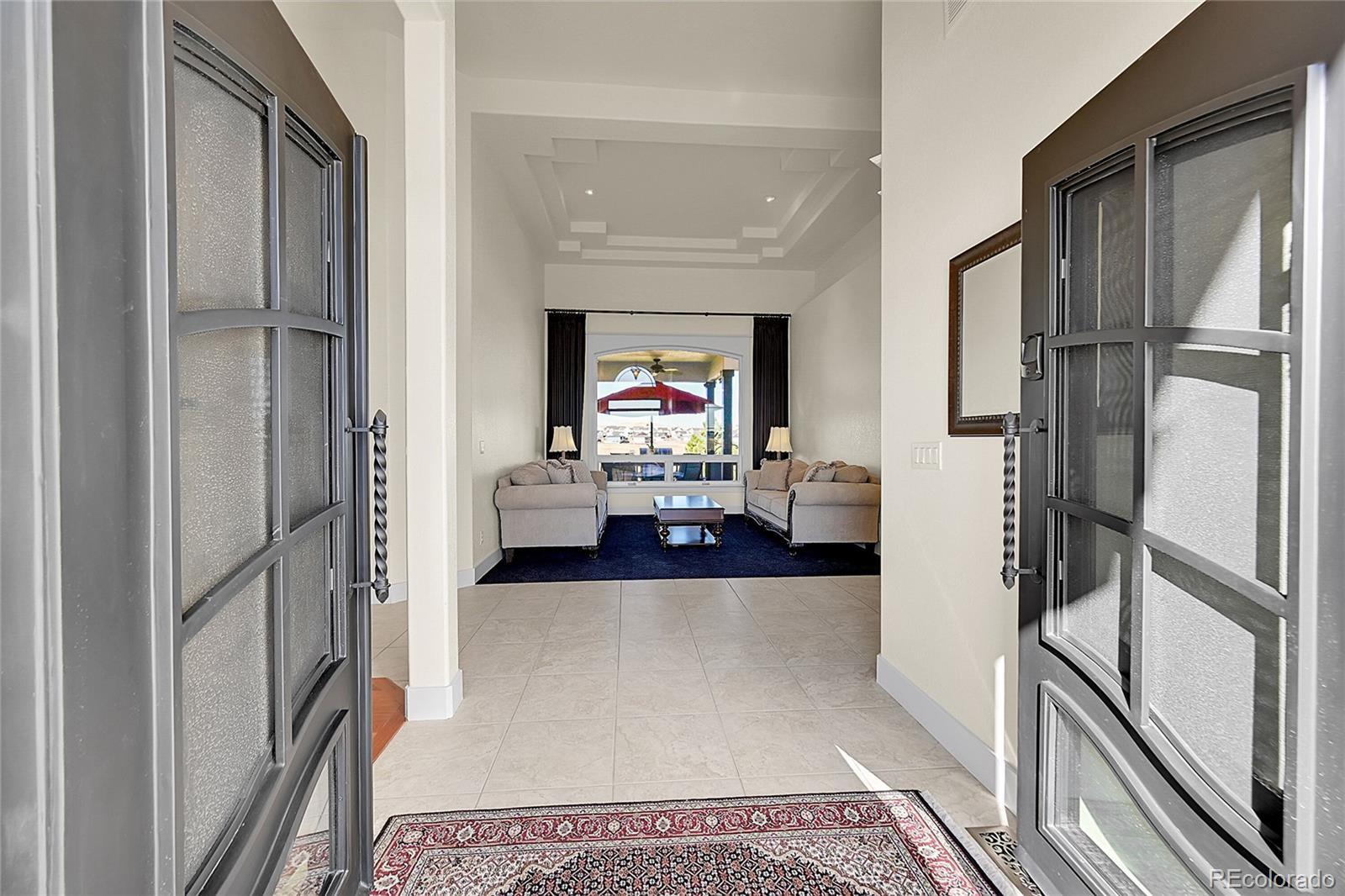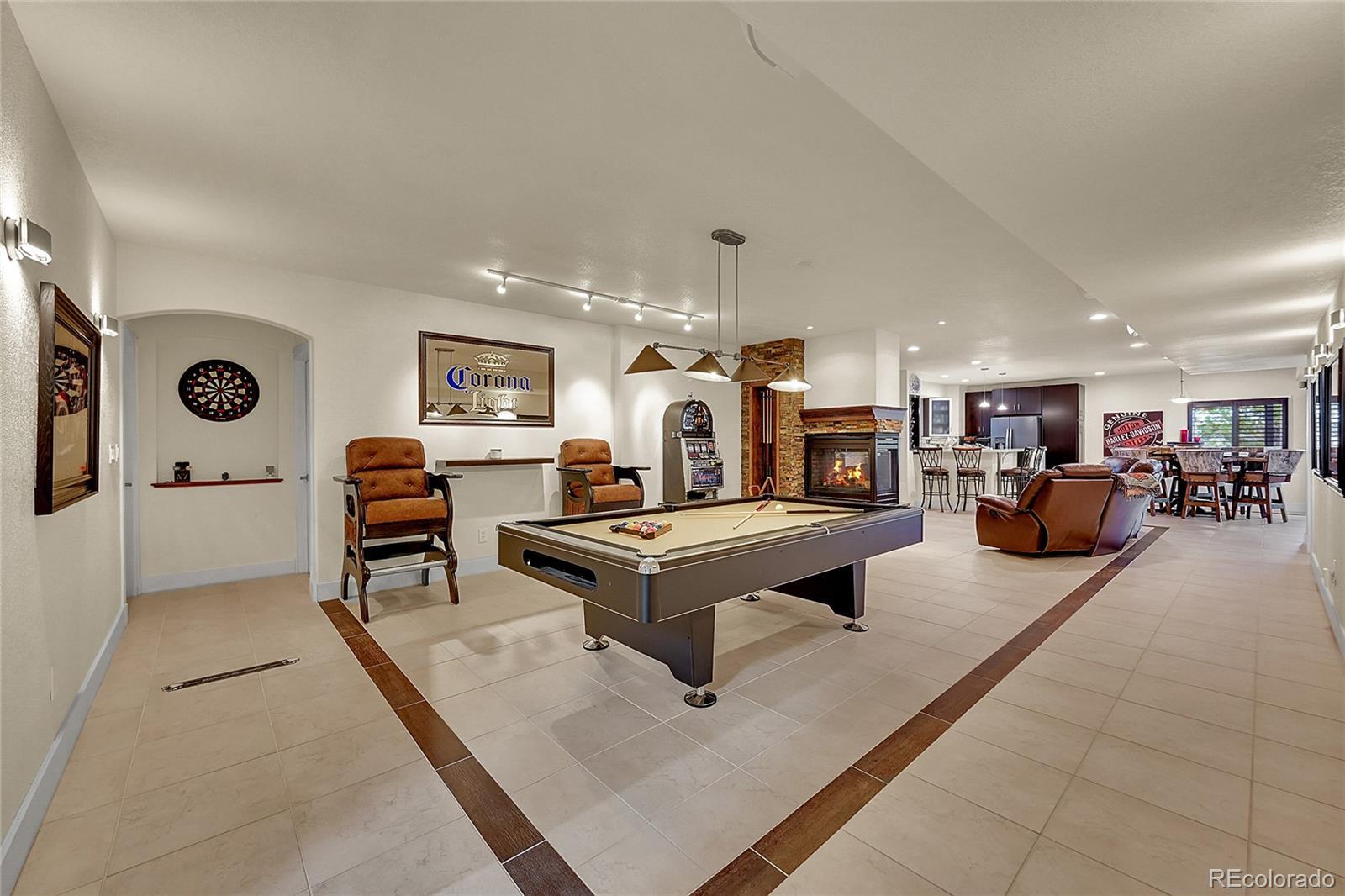 Set on five acres in the Coyote Hills community, this stunning 5 bedroom/ 5 bathroom ranch home with almost 6000 sq ft of finished living space offers high end custom upgrades throughout—complete with a full detached workshop with an additional garage, ideal for car enthusiasts, hobbyists, or business owners. Located only 15 minutes to either Parker or Elizabeth offering Colorado country charm with convenience of location. The home has been meticulously maintained, presenting like a true model home. Custom front door, Radiant heated floors throughout provide year round comfort. The grand entry is flanked by a formal dining room & an expansive living room. A richly appointed office offers a private, executive-level workspace. The gourmet kitchen, featuring cherry flooring & cabinets, is a chef's dream.The family room with fireplace & plantation shutters are perfectly sized for family and guest. The main-floor primary suite offers direct access to the back deck, two custom walk-in closets, dual vanities, a jetted soaking tub,—spa-inspired luxury at its finest. Two additional bedrooms share a beautifully designed Jack-and-Jill bath, while a versatile bonus room above the garage offers endless possibilities as an office, guest suite, or private in-law quarters. The finished basement elevates the lifestyle experience with a pool table area, media room, fireplace, full bar, game space, large guest bedroom, custom bath and a full gym area with room for all your equipment. All with a walkout to the private hot tub retreat area, creating the ultimate in-home entertainment. Outdoor living is equally impressive -landscaped, water feature, an oversized back deck perfectly positioned for entertaining against the backdrop of peaceful acreage. Must see as well, the oversized three car garage w/ EV charger, LED lighting, & epoxy flooring, plus detached garage & workshop, & additional shed. This rare offering blends sophistication, comfort, & lifestyle in one remarkable estate.