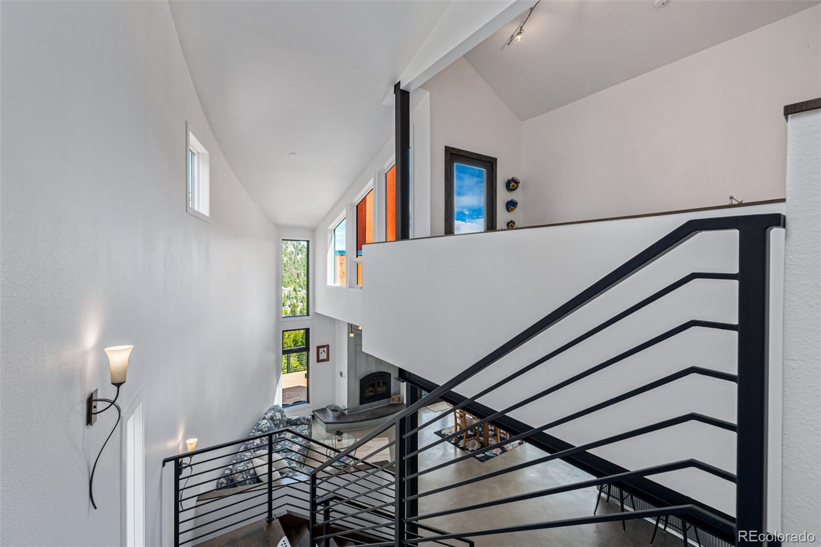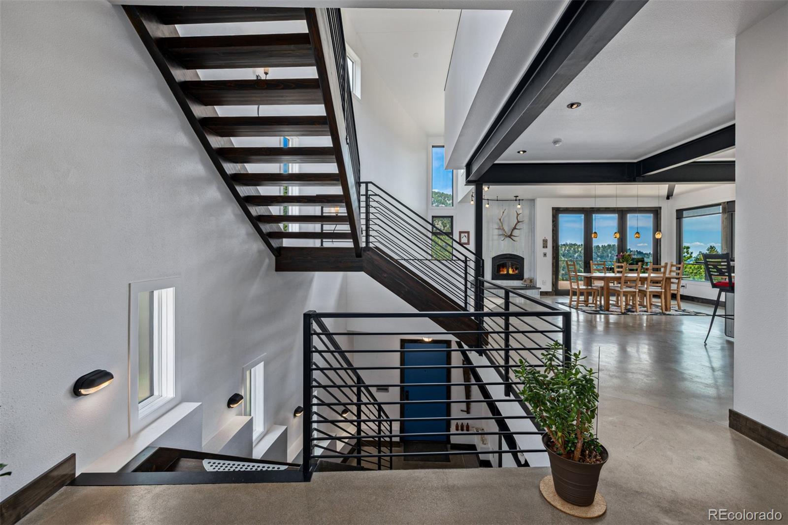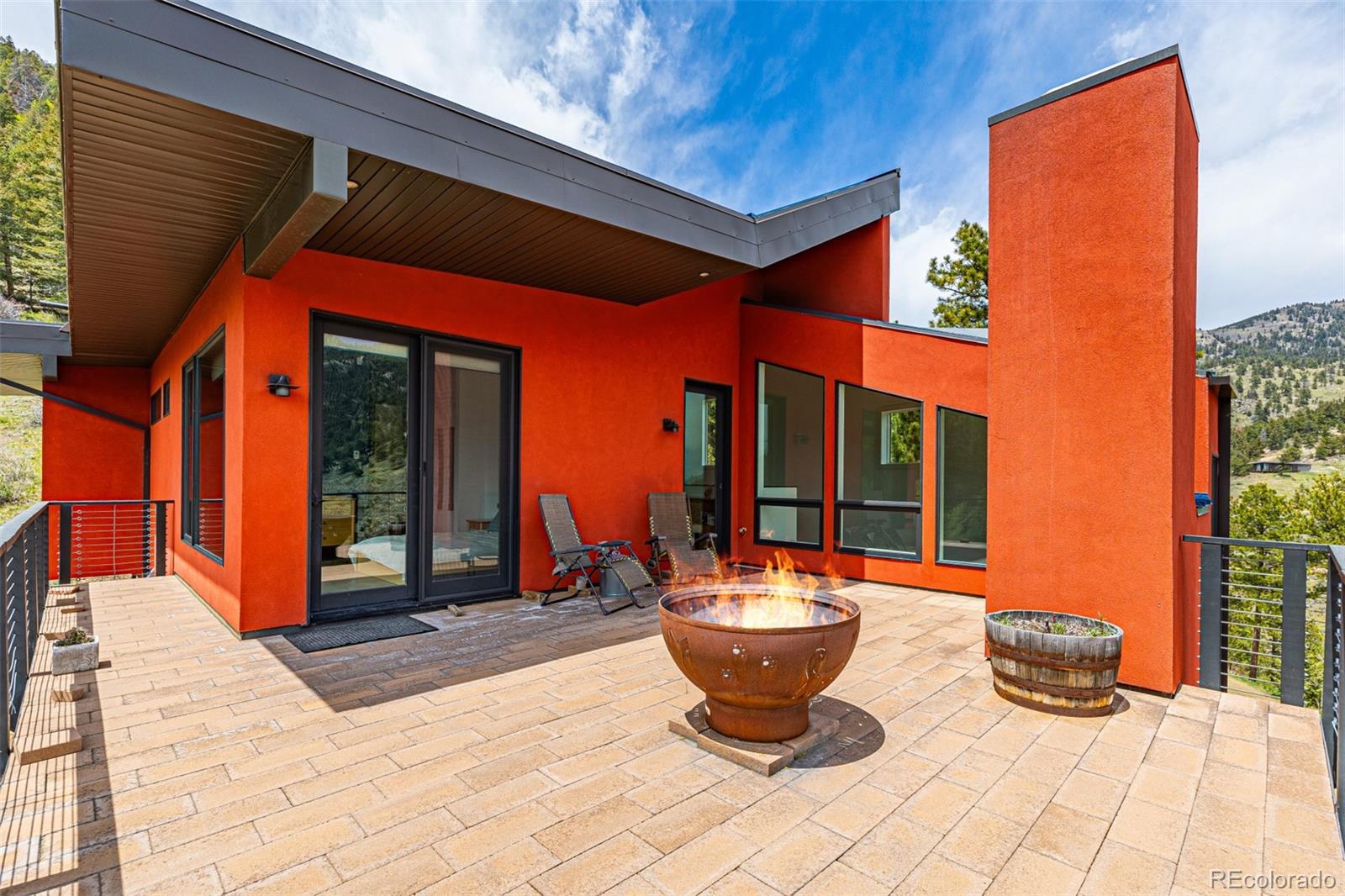 Now offering this beautiful, modern mountain home on 39 acres of pure privacy, with hundreds of acres of Jefferson County Open Space bordering two sides. From the home, you’ll see only forest, sky, and peaceful seclusion. The land has been thoughtfully maintained to preserve the native ecosystem, where wildlife and natural beauty are part of everyday life. Designed by Gettliffe Architecture in Boulder, this residence blends modern green design with mountain serenity. Fire conscious construction includes stucco siding, a steel north-facing wall, enclosed soffits, concrete deck pavers, and a standing seam metal roof angled for future solar and PV. Passive solar design, thick insulated walls, an Insulated Concrete Form foundation, and radiant concrete floors provide year-round comfort and efficiency. Recycled quartz and glass counters add an eco-friendly touch. Two expansive decks overlook evergreen forest, aspen, a meadow, rock outcroppings, and mountain views, creating a quiet and restorative setting. The layout offers two bedrooms plus an open media room that can be converted to a third bedroom. Enjoy a loft ideal for an office or creative studio, a heated garage, and space for a home gym. Elevator-ready, with space built in for future installation if desired. Just 20 minutes from Golden and close to excellent multi-use trails, fishing, cross-country skiing and more, with easy access to Golden Gate Canyon State Park, Centennial Cone Park, White Ranch Park, and I-70 for Denver dining, culture, and world-class ski resorts. The adjacent 35-acre vacant parcel is also available, which ensures a private driveway. Together, both parcels total 74+ acres and are offered as a separate combined listing for $1,995,000. MLS ID 6540596. Preserve the land as pristine forest, build an additional home, or hold the second parcel as an investment. A rare chance to secure full control of your surroundings and long-term privacy.