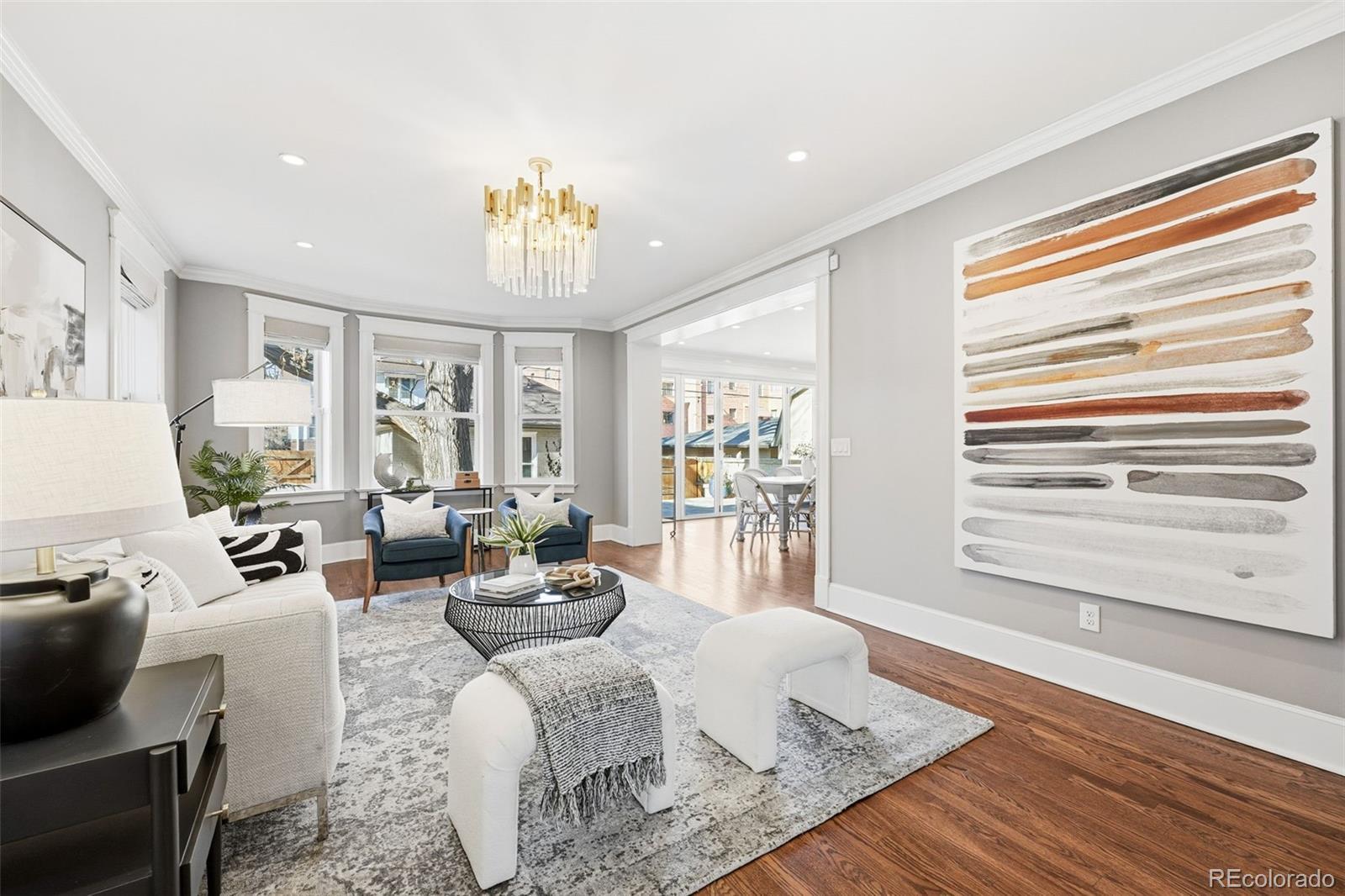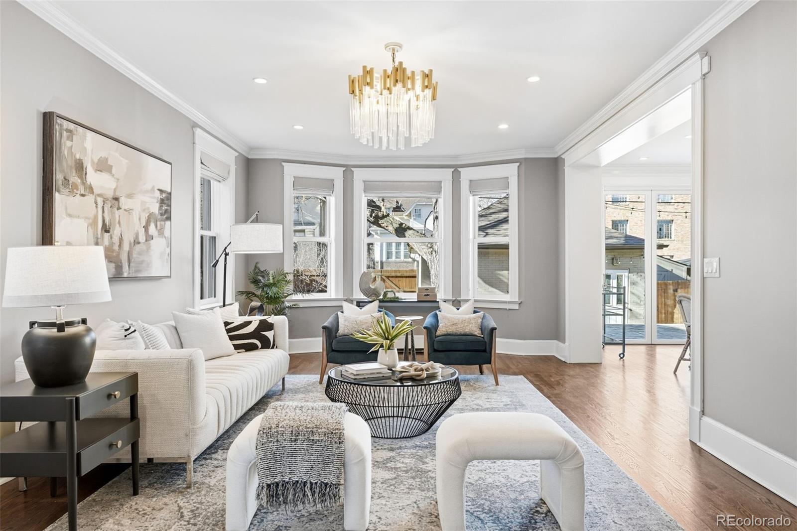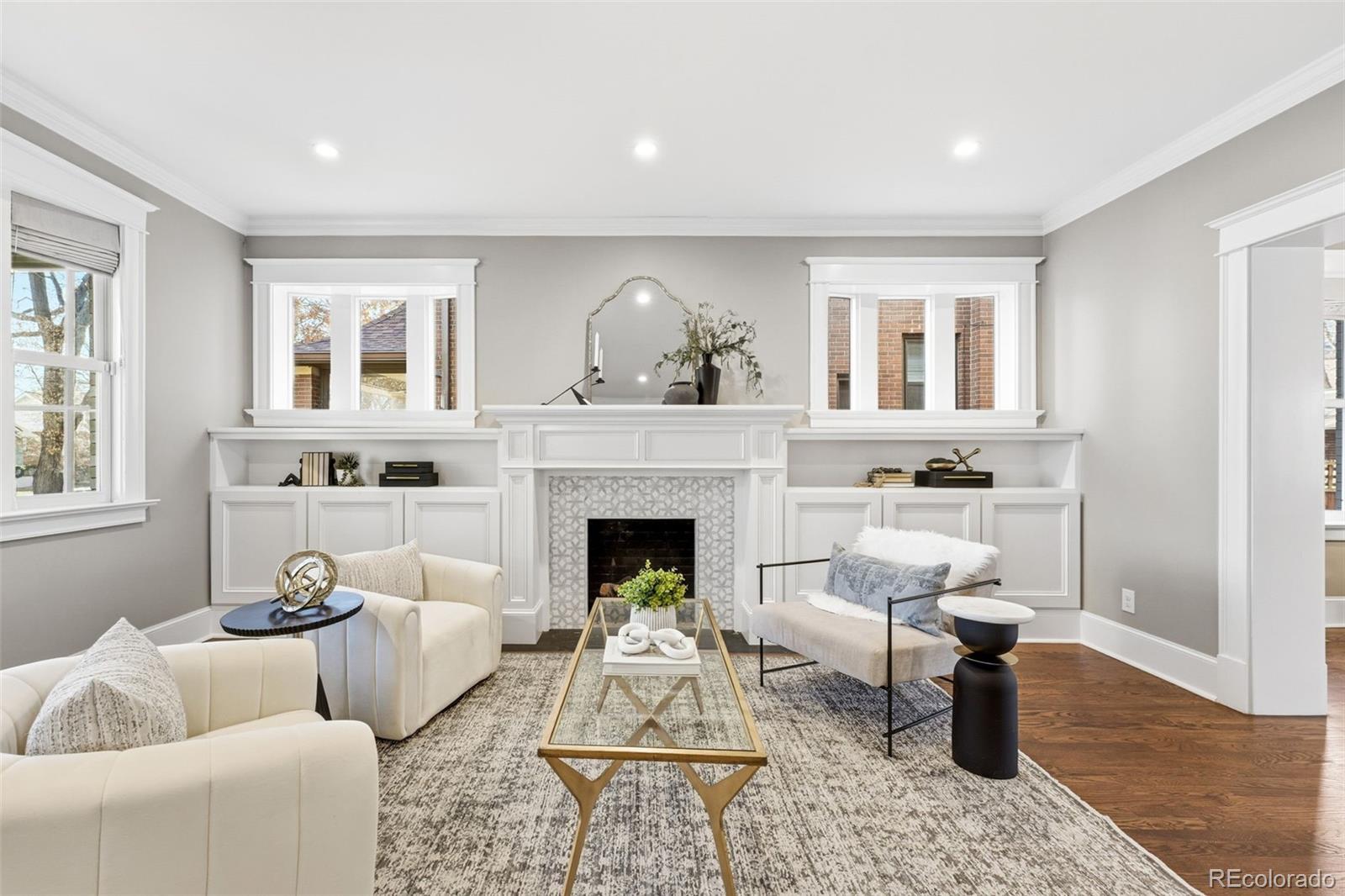 Luxury living in Congress Park is redefined at 1257 Fillmore Street. This stunning 3-story Denver Square has been meticulously renovated for modern living while preserving timeless character. Offering more than 3,700 above-grade square feet and over 5,000 total square feet, the home delivers exceptional scale, design, and functionality across every level. The thoughtfully designed floor plan includes 5 bedrooms, a 3rd-floor loft or bonus space, a dedicated workout room, and 4 beautifully remodeled bathrooms showcasing custom finishes throughout. A classic foyer opens to sun-filled living spaces highlighted by refined trim work, elegant wall coverings, and seamless flow between the formal spaces to the chef's kitchen. At the heart of the home is a show-stopping chef’s kitchen featuring an 8-burner Wolf range, Sub-Zero refrigeration, quartz island, custom mosaic backsplash, and a nano-door wall that opens completely to the flagstone patio—creating effortless indoor-outdoor living ideal for entertaining. The adjacent formal dining room is equally impressive w/custom lighting, wall coverings & ready to host. The second level hosts 4 bedrooms, including a expansive primary suite with hardwood floors, spa-inspired bath with oversized shower, and dual custom closets. 3 additional bedrooms share a designer bathroom with copper sink, penny tile floors, and custom tile work. The 3rd floor offers a versatile retreat—perfect as an office, loft, studio, or private escape among the treetops. The fully finished basement includes a family room w/exposed brick is ready for movies and game night with wet bar, guest suite w/egress, stylish bath w/heated floors, custom tile and wall coverings, laundry room, and additional room for home gym or bonus room. Outside, enjoy a private, fenced yard and patio with coveted southwest exposure, plus a two-car garage and additional storage. A rare blend of historic charm and modern luxury in one of Denver’s most sought-after neighborhoods.