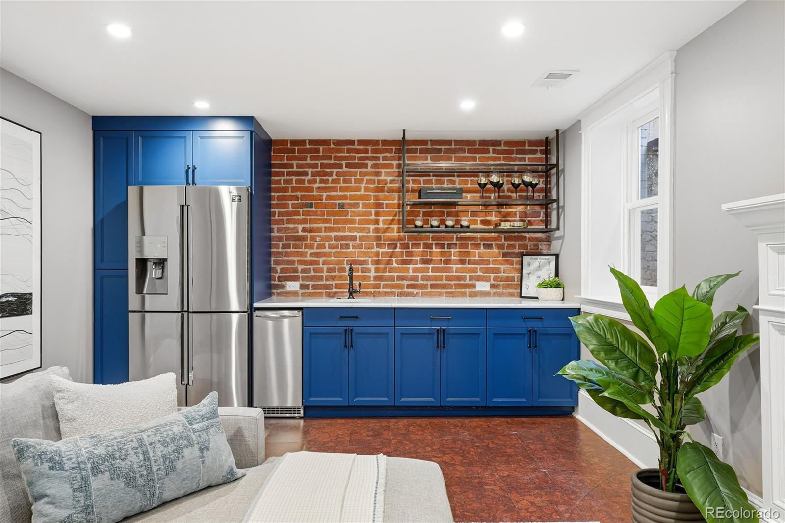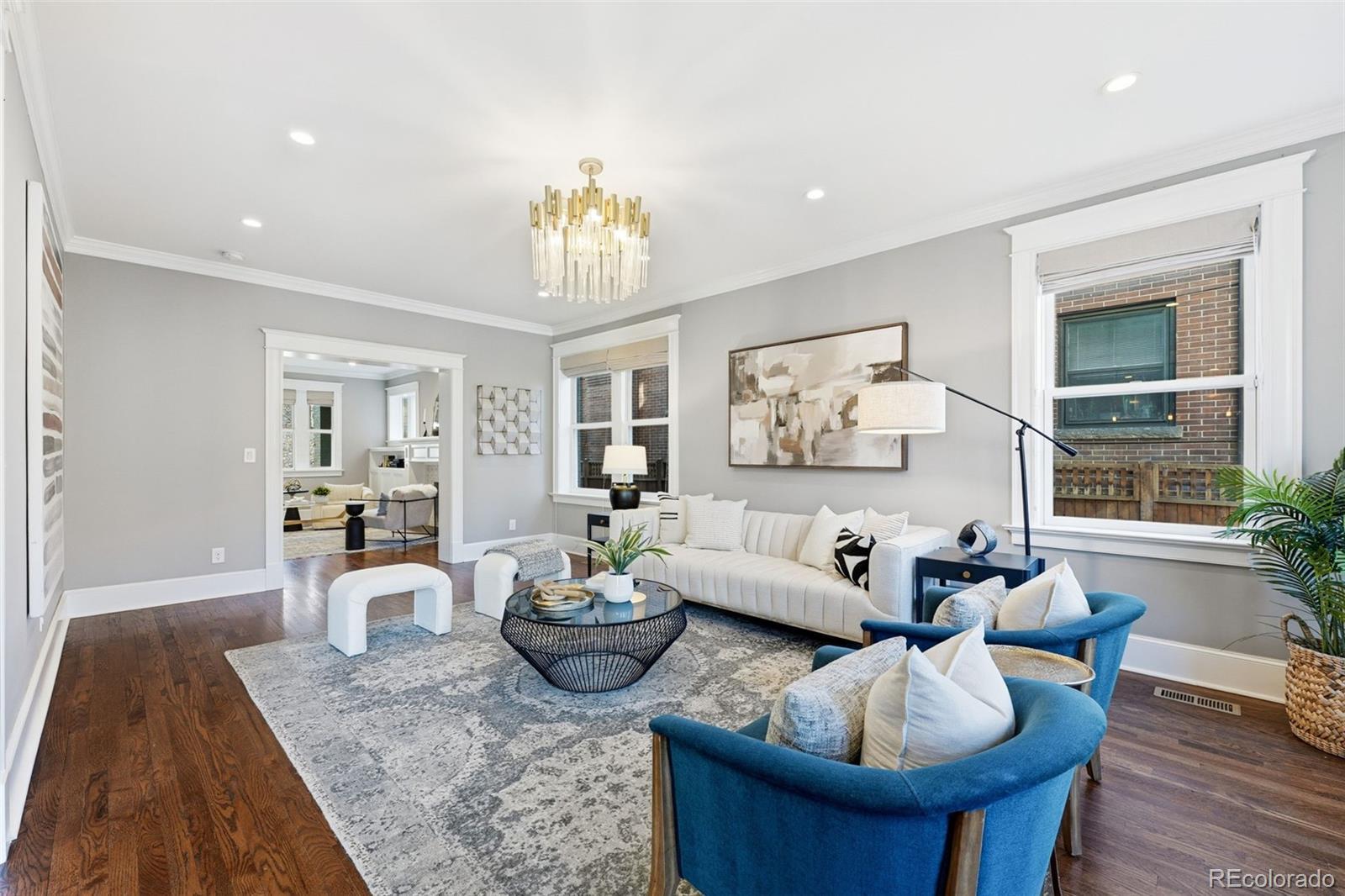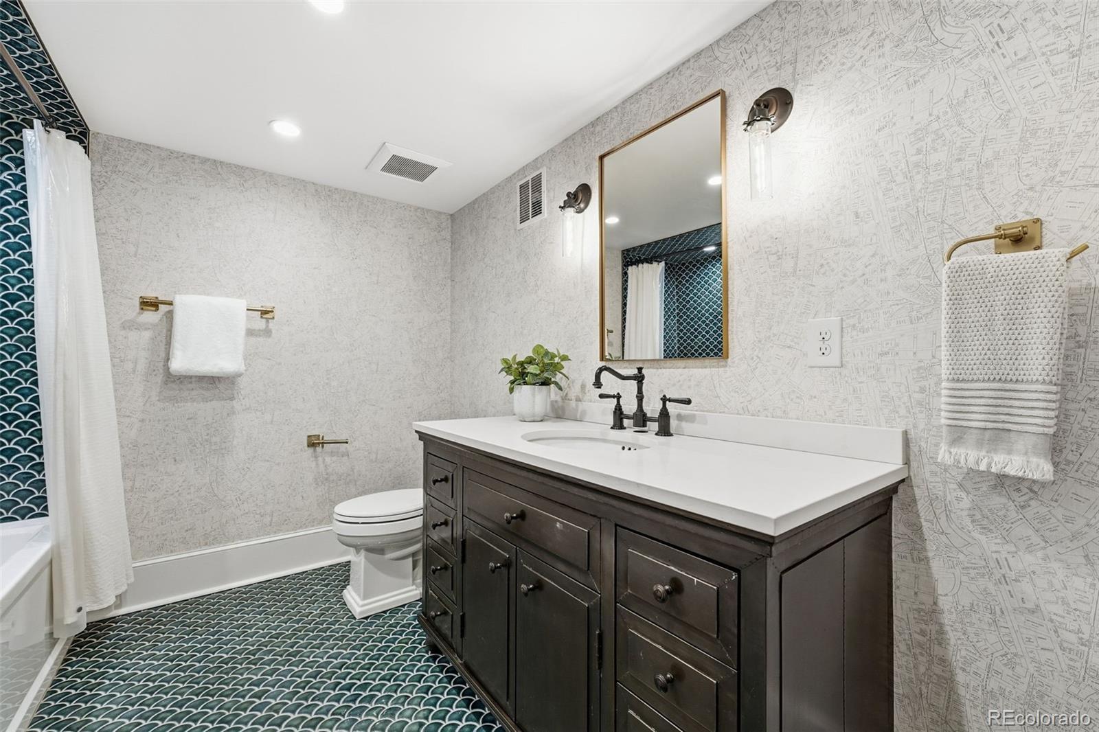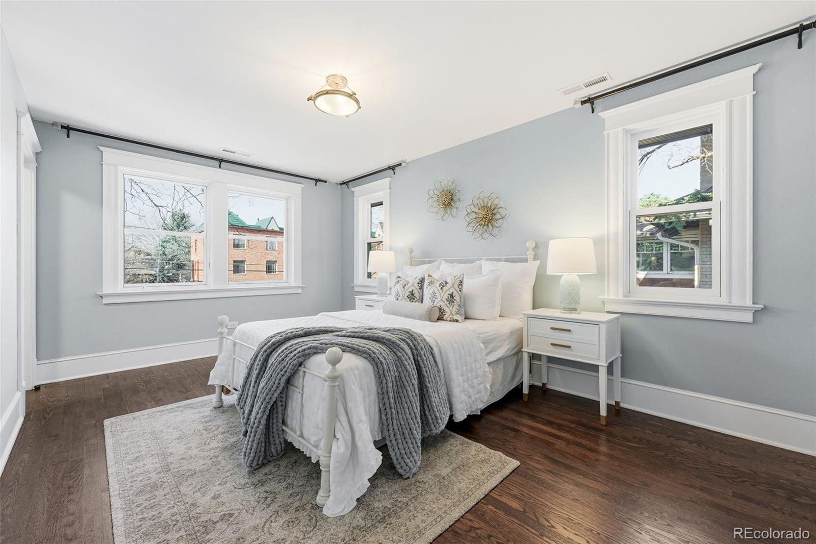 Luxury living in Congress Park is redefined at 1257 Fillmore Street. This stunning 3-story Denver Square has been meticulously renovated for modern living while preserving timeless character. Offering more than 3,700 above-grade square feet and over 5,000 total square feet, the home delivers exceptional scale, design, and functionality across every level. The thoughtfully designed floor plan includes 5 bedrooms, a 3rd-floor loft or bonus space, a dedicated workout room, and 4 beautifully remodeled bathrooms showcasing custom finishes throughout. A classic foyer opens to sun-filled living spaces highlighted by refined trim work, elegant wall coverings, and seamless flow between the formal spaces to the chef's kitchen. At the heart of the home is a show-stopping chef’s kitchen featuring an 8-burner Wolf range, Sub-Zero refrigeration, quartz island, custom mosaic backsplash, and a nano-door wall that opens completely to the flagstone patio—creating effortless indoor-outdoor living ideal for entertaining. The adjacent formal dining room is equally impressive w/custom lighting, wall coverings & ready to host. The second level hosts 4 bedrooms, including a expansive primary suite with hardwood floors, spa-inspired bath with oversized shower, and dual custom closets. 3 additional bedrooms share a designer bathroom with copper sink, penny tile floors, and custom tile work. The 3rd floor offers a versatile retreat—perfect as an office, loft, studio, or private escape among the treetops. The fully finished basement includes a family room w/exposed brick is ready for movies and game night with wet bar, guest suite w/egress, stylish bath w/heated floors, custom tile and wall coverings, laundry room, and additional room for home gym or bonus room. Outside, enjoy a private, fenced yard and patio with coveted southwest exposure, plus a two-car garage and additional storage. A rare blend of historic charm and modern luxury in one of Denver’s most sought-after neighborhoods.