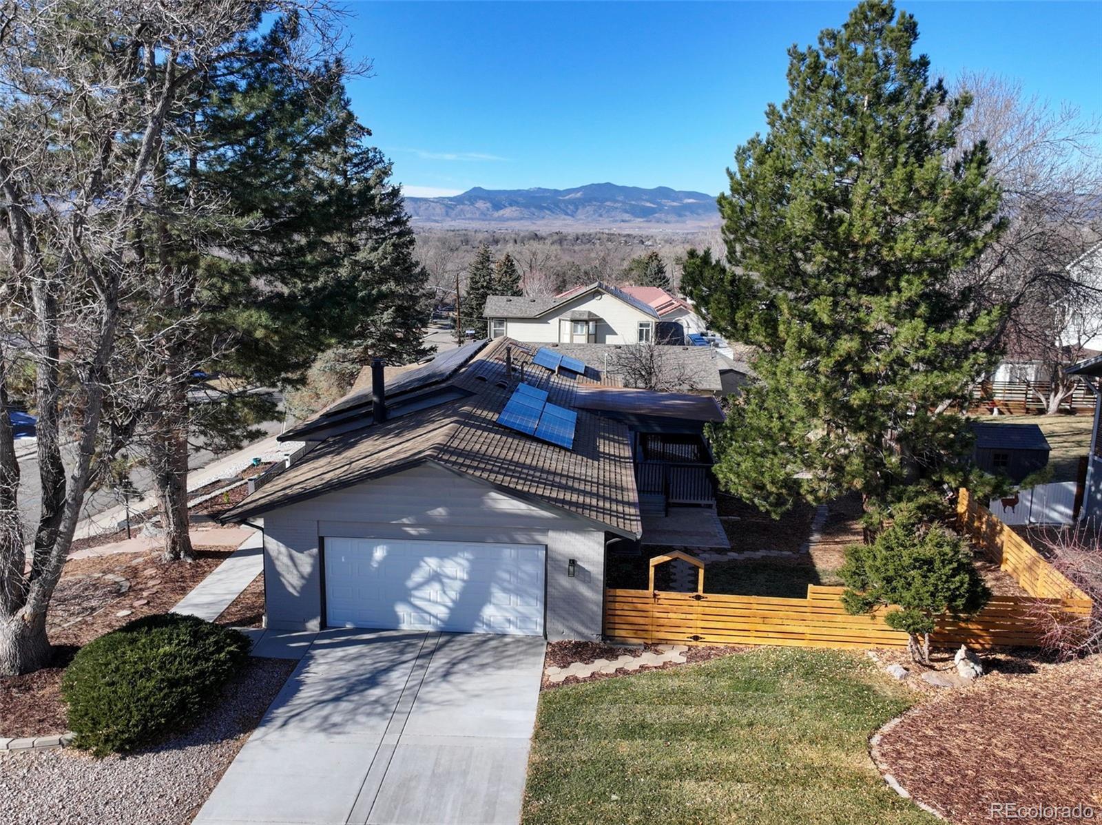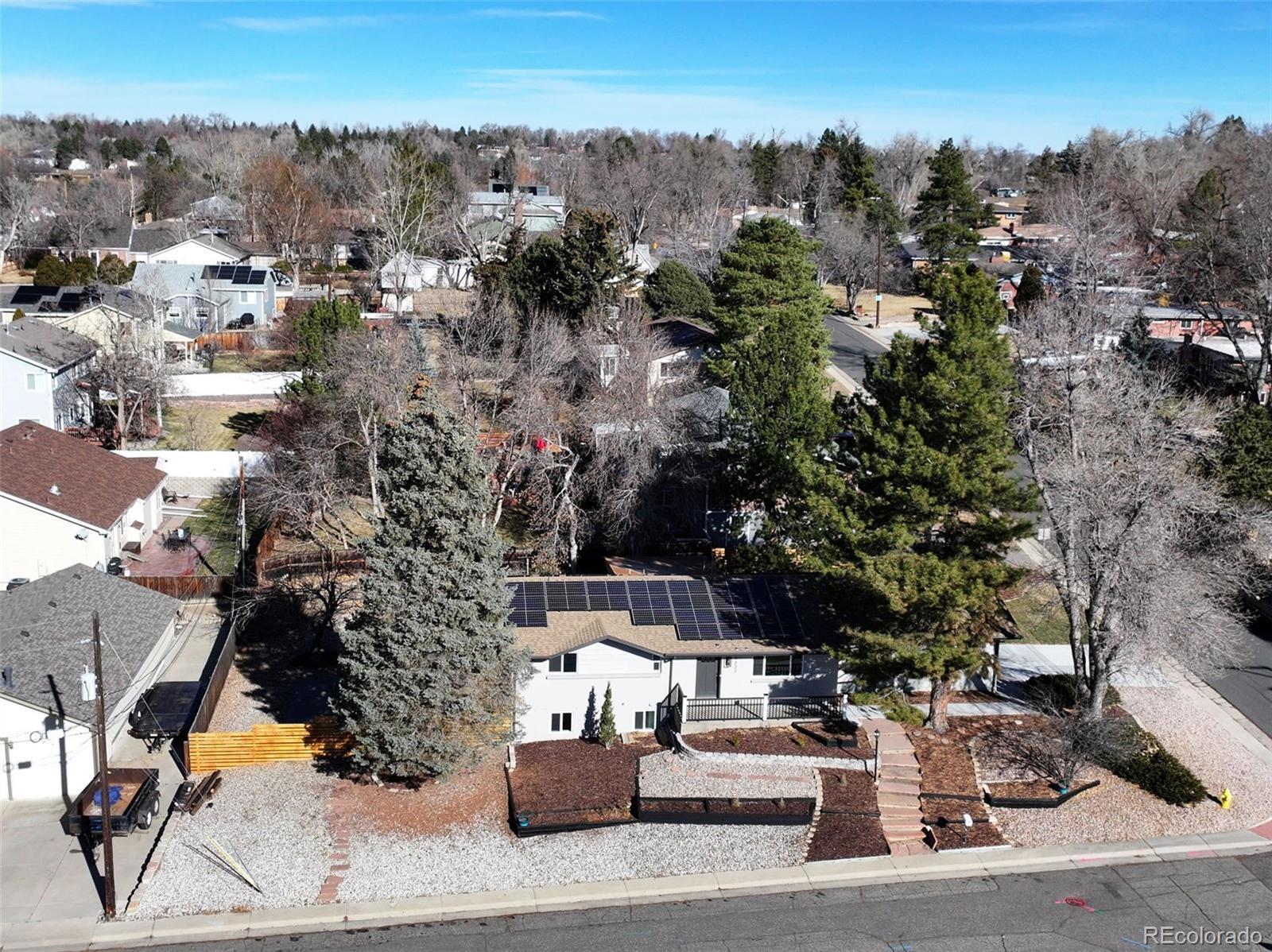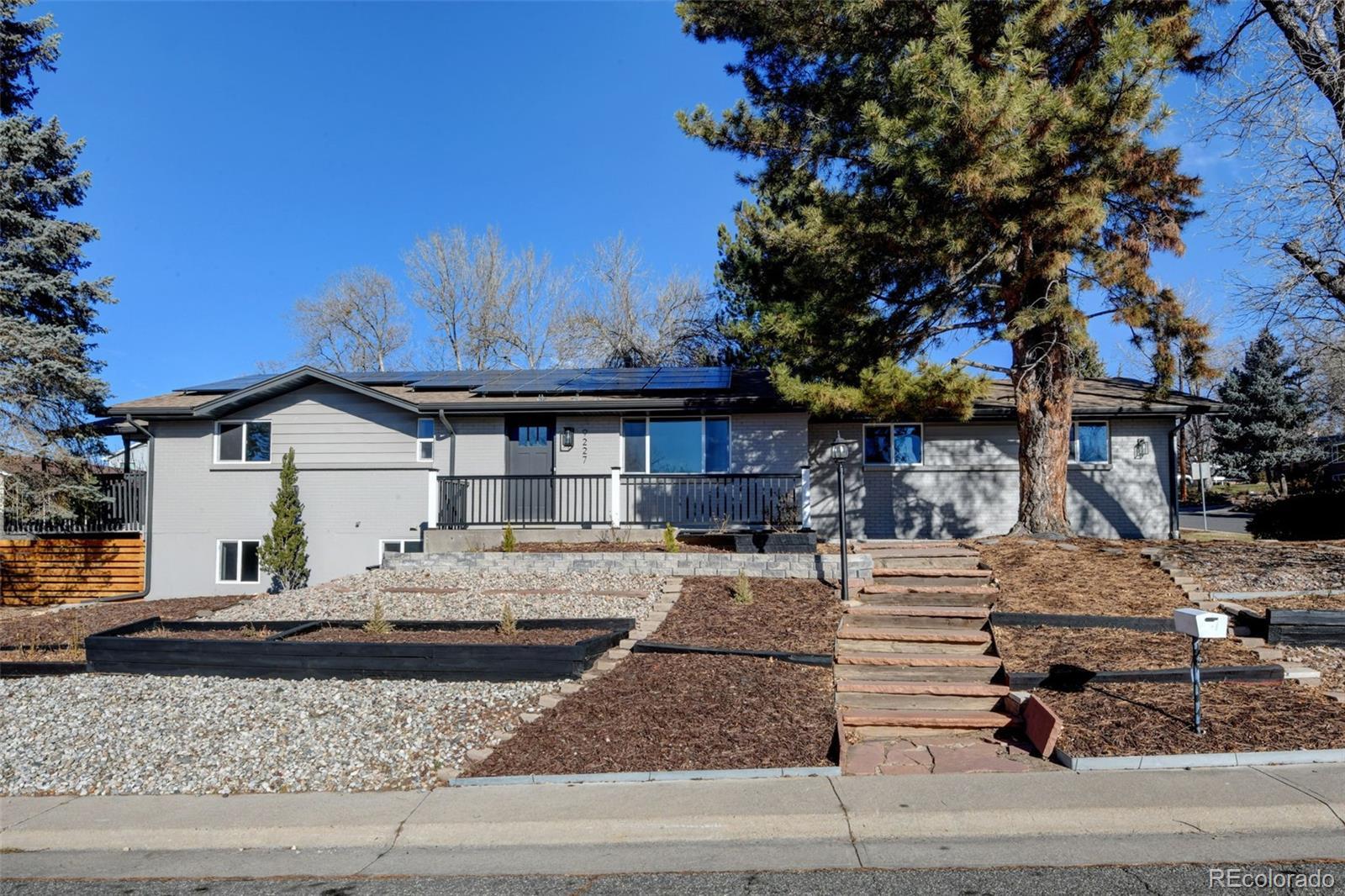 Fully remodeled and truly move-in ready, this 4-bedroom, 4-bath home offers mountain views, flexible multi-generational living spaces, & an exceptional Arvada location close to everything the area has to offer, including just 2 blocks from Majestic View Park & Nature Center! Thoughtfully updated from top to bottom, this home blends modern style with everyday comfort. The open main level features new luxury vinyl flooring, fresh interior finishes, & a spacious great room with a wood burning fireplace, perfect for both daily living and entertaining. The fully renovated kitchen showcases quartz countertops, modern cabinetry, & stainless steel appliances, seamlessly connecting to the main living space. Enjoy breathtaking mountain views from the wraparound covered deck, ideal for morning coffee, evening sunsets, & year-round enjoyment. The main-level primary suite provides easy one-level living with an all new spa-inspired bathroom & generous closet space. The finished walkout basement is perfectly suited for multi-gen living or extended guest space, featuring a large secondary living area, kitchenette space, a private suite with its own new bath, additional bedroom & bath, & direct access to a covered patio & the fully fenced backyard, offering privacy & independence while remaining connected to the home. Recent updates include new windows, flooring, new texture, new interior & exterior paint, new doors & trim, new everything in all 4 bathrooms, updated plumbing, new electrical outlets & light fixtures, a new water heater, newer furnace, new AC, new garage door, new concrete driveway & garage floor, new landscaping, and new fencing. Roof in 2018-Owned solar panels (no lease!) provide energy efficiency & low utility costs. All in a great location close to trails & open space, just minutes from Olde Town Arvada, parks, dining, shopping, commuter routes, this home offers the perfect blend of lifestyle, convenience, and versatility. NO HOA or Metro Tax* Did I mention Views!