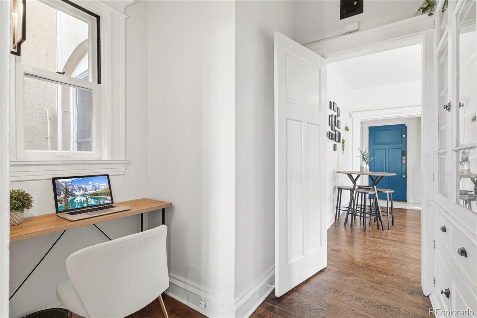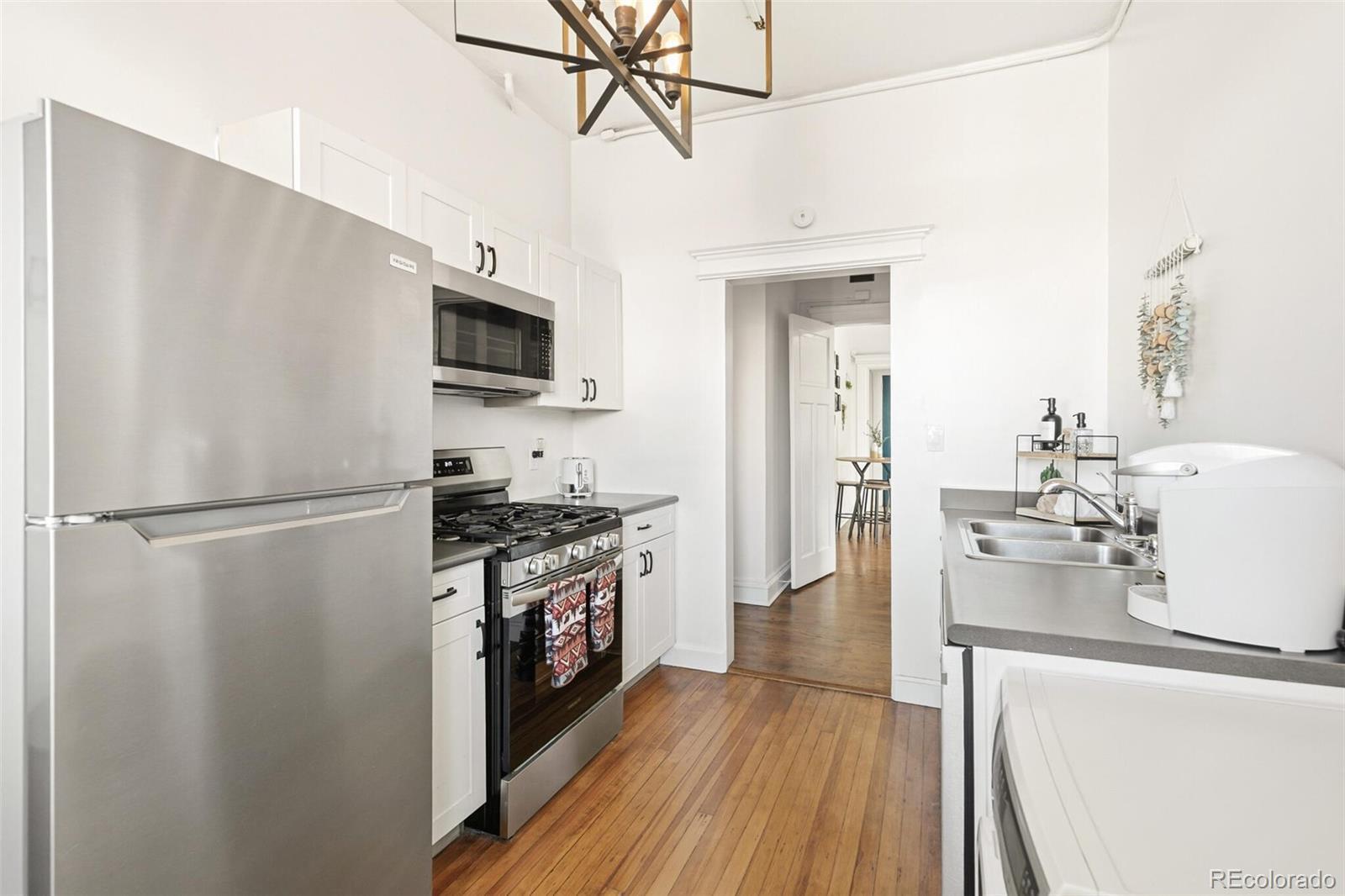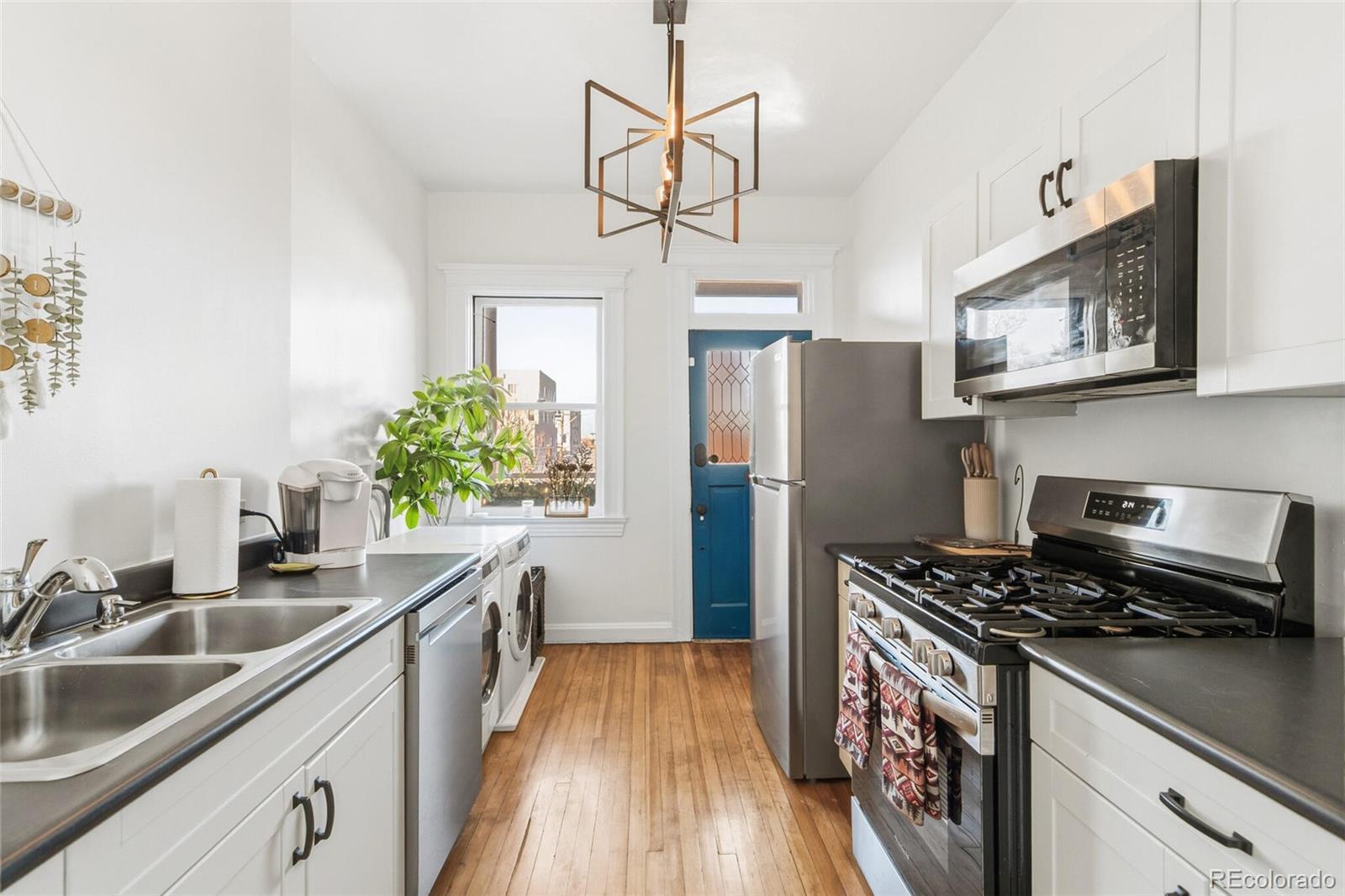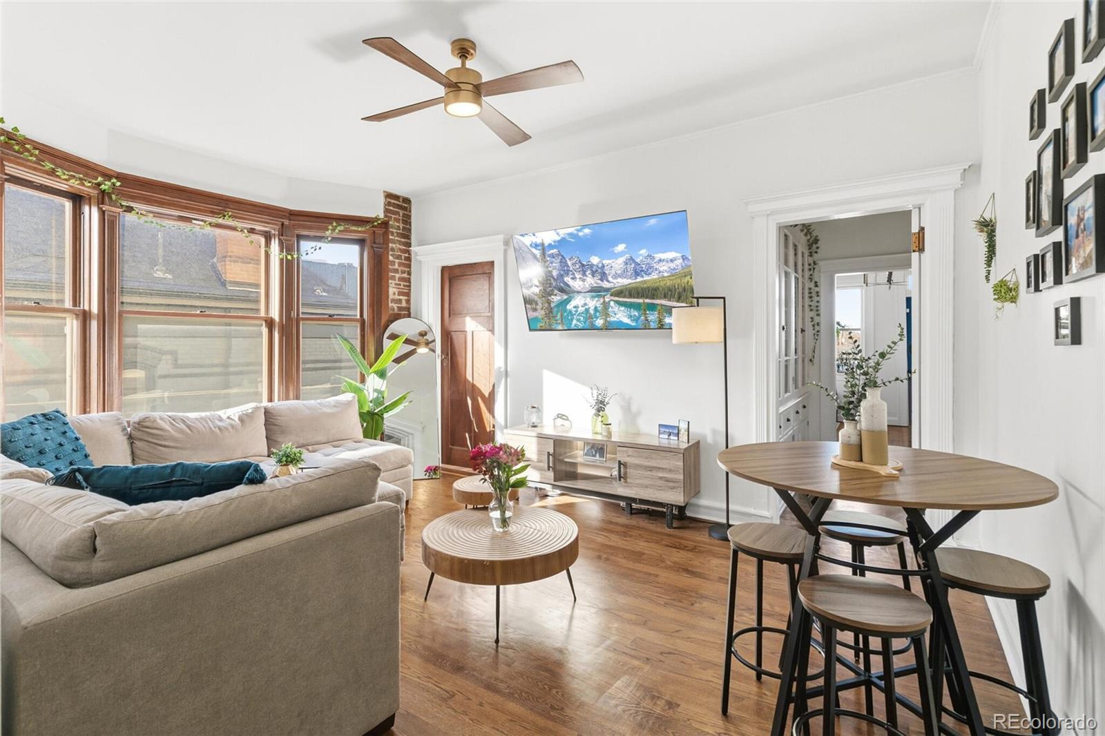 Welcome to a charming blend of historic character and modern convenience in this adorable Cap Hill condo. This delightful residence offers a stylish and functional 1-bedroom, 1-bathroom layout—an inviting retreat in the heart of the city. Step inside to discover exposed brick walls, stunning hardwood floors, and soaring high ceilings. The light-filled living area, framed by a beautiful bay window, creates a warm and welcoming atmosphere. A thoughtfully updated kitchen—connected through a classic butler’s pantry—features new and modern appliances and opens to a cozy balcony, perfect for morning coffee or an evening glass of wine. The spacious bedroom includes a generous closet for plenty of storage. The fully remodeled bathroom delivers a spa-like experience with sleek, modern finishes. Additional perks include in-unit laundry with the included washer and dryer and a flexible nook ideal for a small home office or stylish bar area. Building amenities elevate your everyday living with common storage, a barbecue area, and a rooftop deck showcasing breathtaking city views. Assigned parking and essential utilities—including electricity, gas, and cable—are conveniently included. Situated in Denver’s desirable Capitol Hill neighborhood, this home places you just moments from some of the city’s best destinations. Enjoy easy access to Cheesman Park, City Park, and the Denver Botanic Gardens. The area is also filled with local favorites—grab coffee from Thump Coffee, enjoy brunch at Jelly Café, savor farm-to-table dining at Potager, or unwind with drinks at Vesper Lounge. Charming boutiques, grocery options, gyms, and everyday conveniences are all just steps away. Whether you’re hosting friends or savoring peaceful mornings, Unit 3B is more than just a home—it’s your gateway to effortless and inspired Denver living.