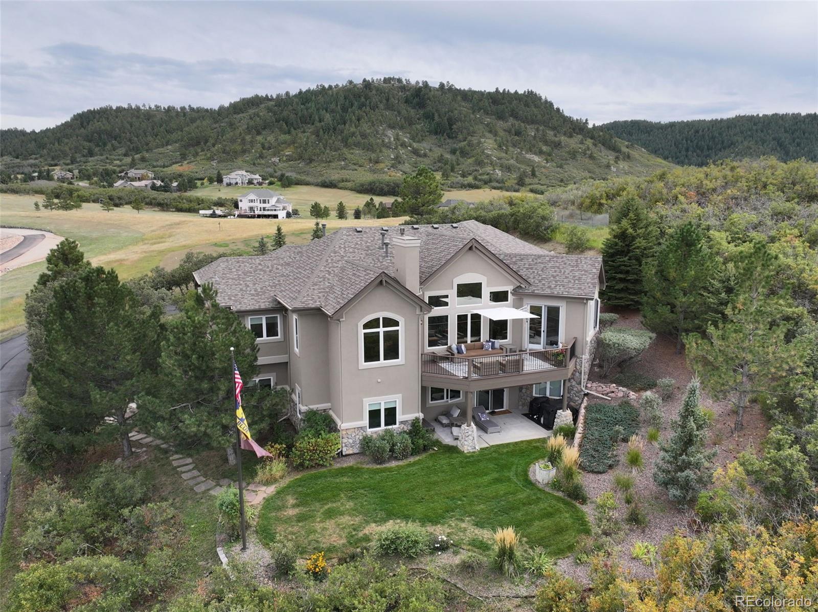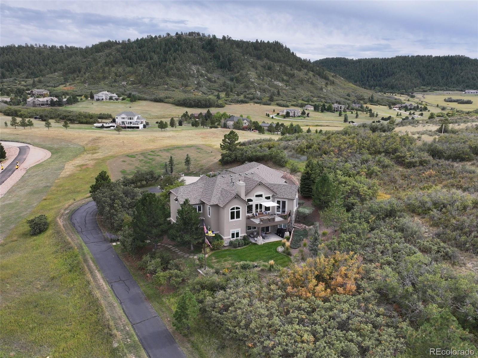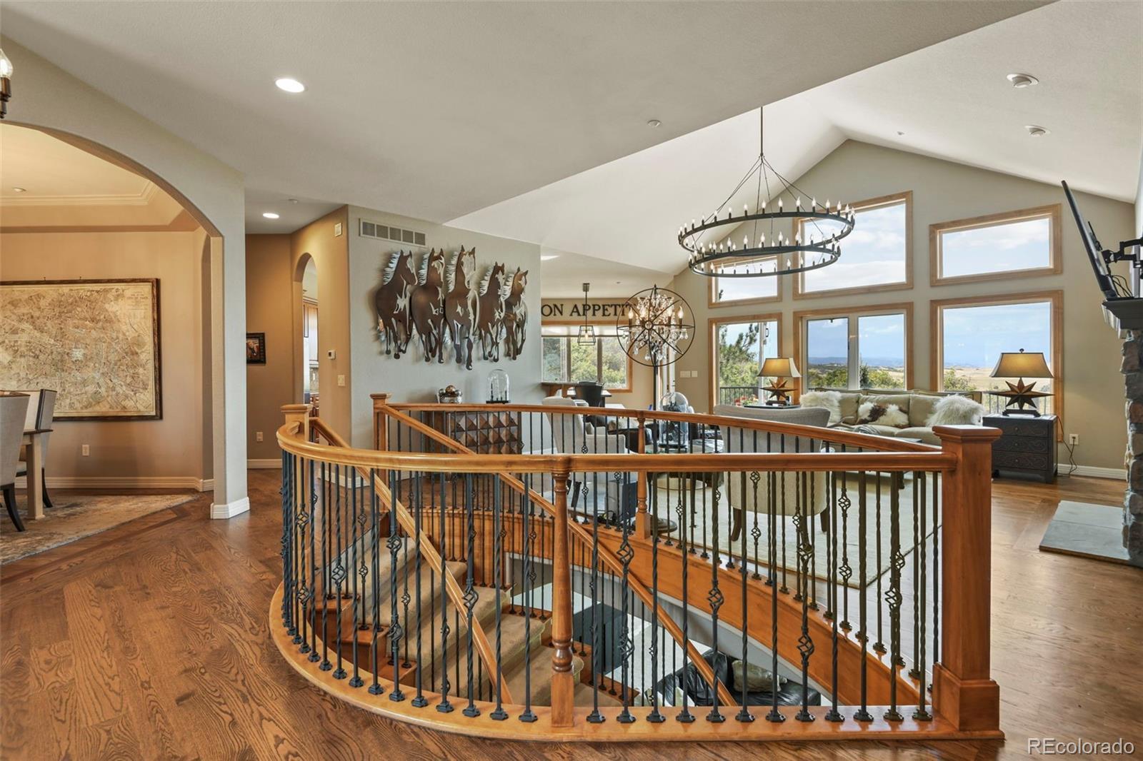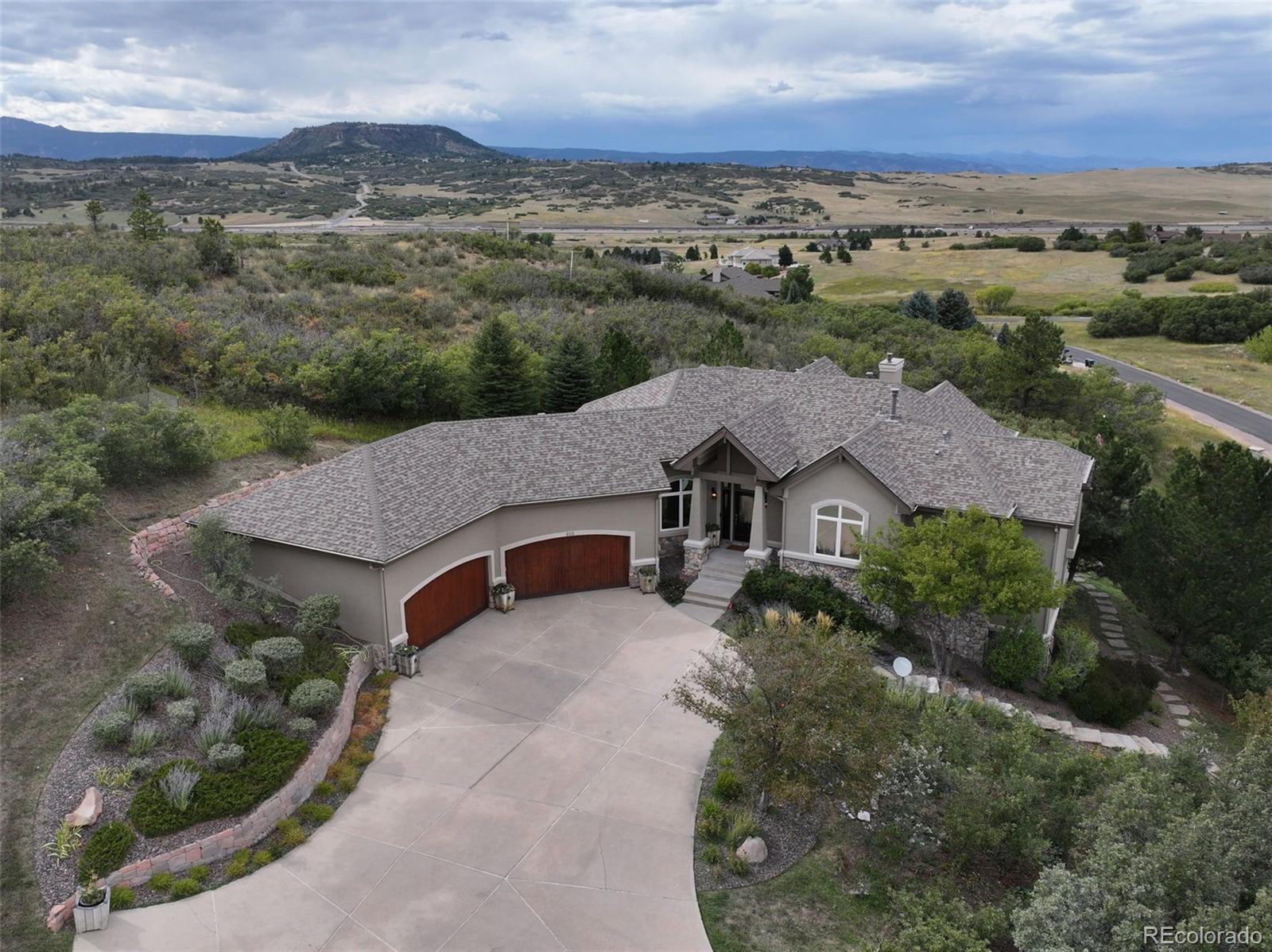 Experience true Colorado living in this custom Bell Mountain Ranch estate designed to blend timeless elegance with modern mountain updates. This thoughtfully designed floorplan offers 4 bedrooms, 4 bathrooms, 2 living spaces, a formal dining, and 2 flex spaces set on a scenic 6.4 acre lot with expansive mountain views. The striking spiral wrought-iron staircase anchors the entry, leading to open living spaces enhanced by three gas fireplaces and custom built-ins throughout. The main level showcases updated 5-inch plank hardwood floors, seamlessly connecting the formal and casual living areas. Indulge in the newly remodeled bathrooms, including a luxurious primary suite with heated floors. Every detail has been thoughtfully customized, from the designer lighting, paint, wood finishes, to the stucco and stone exterior and the oversized 4-car garage not to mention the practical updates such as a new roof, newer HVAC, and AC. Step outside to a large Trex deck and covered patio, perfect for entertaining or enjoying serene sunsets. With trails and open space nearby, plus easy access to I-25, this home balances privacy, recreation, and convenience. This is more than a home — it’s a private retreat where custom craftsmanship meets Colorado beauty.