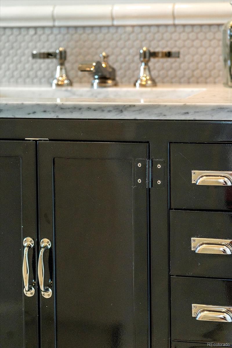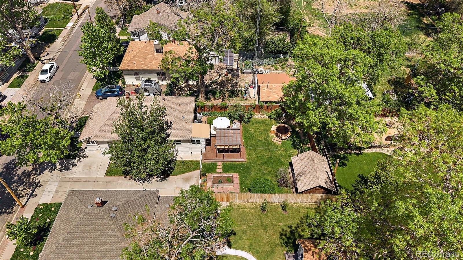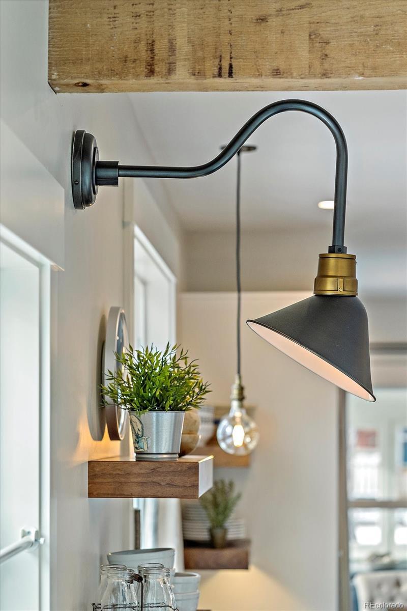 OPEN 3/14 1:30-3:30 This stunning Olde Town Arvada bungalow has been fully renovated from top to bottom, blending historic character with thoughtful modern updates. With nine-foot ceilings, gorgeous pre-finished wood plank floors, and intricate trim throughout, every detail celebrates the home’s original charm. Natural light floods the interior through newer double-pane windows and transom windows above doorways, while an exposed brick column adds warmth and character. The designer-inspired kitchen is a showstopper, featuring ample cabinetry with pull-outs, open shelving, farm sink, under-mount and interior cabinet lighting, quartz counters extending into the laundry/mud area, a butcher block island, and high-end appliances including a Fisher & Paykel dishwasher, Dacor drawer microwave, and gas range. Light fixtures, hardware, and bath finishes are largely Restoration Hardware and were thoughtfully selected with nods to the home’s historic roots. The inviting living space boasts a gas fireplace flanked by custom built-ins with hidden outlets, perfect for media or display. The main bath offers a luxurious subway-tiled shower and custom storage including an inset medicine cabinet. A large, stand-up crawl space with a custom pulley system provides abundant storage. Step outside to a private backyard oasis with a fully sodded and sprinklered lawn, a spacious Trex deck with gazebo, cedar hot tub, garden box, and storage shed. A concrete double driveway accommodates three vehicles. Modern comforts include a high-efficiency furnace, central air, and on-demand tankless water heater. Located in a quiet, well-kept neighborhood just a block to downtown Arvada, Light Rail station, dining, shopping, wineries, and loads of local events. Proximity to Downtown Denver, Boulder, and I-70 makes this home ideal for city access or mountain getaways. Perfect as a primary residence or even as an STR, this home combines historic charm, luxury finishes, and unmatched location.