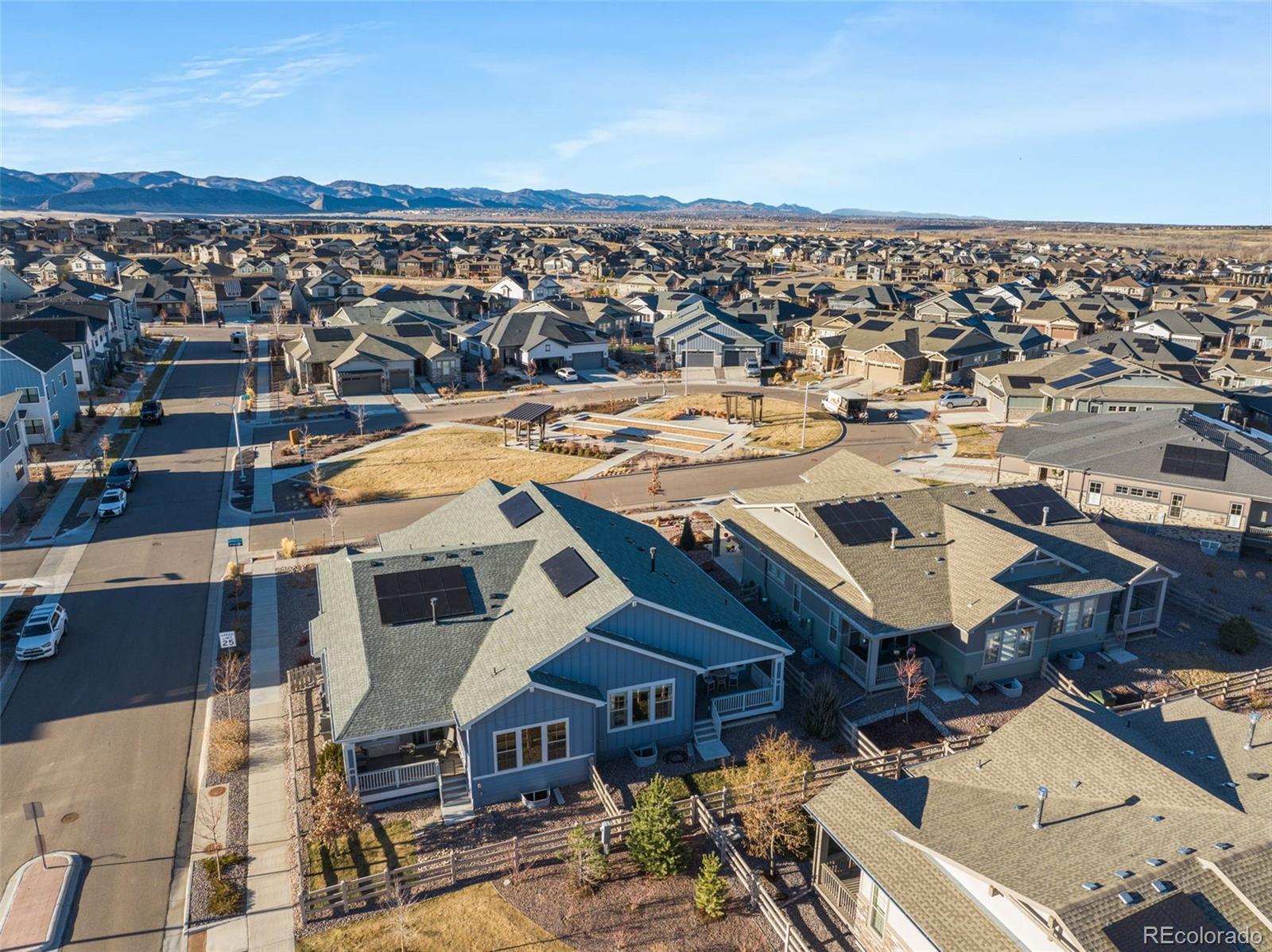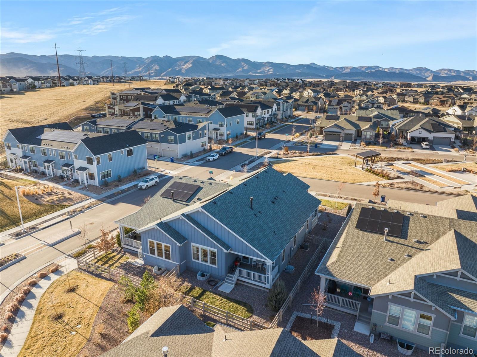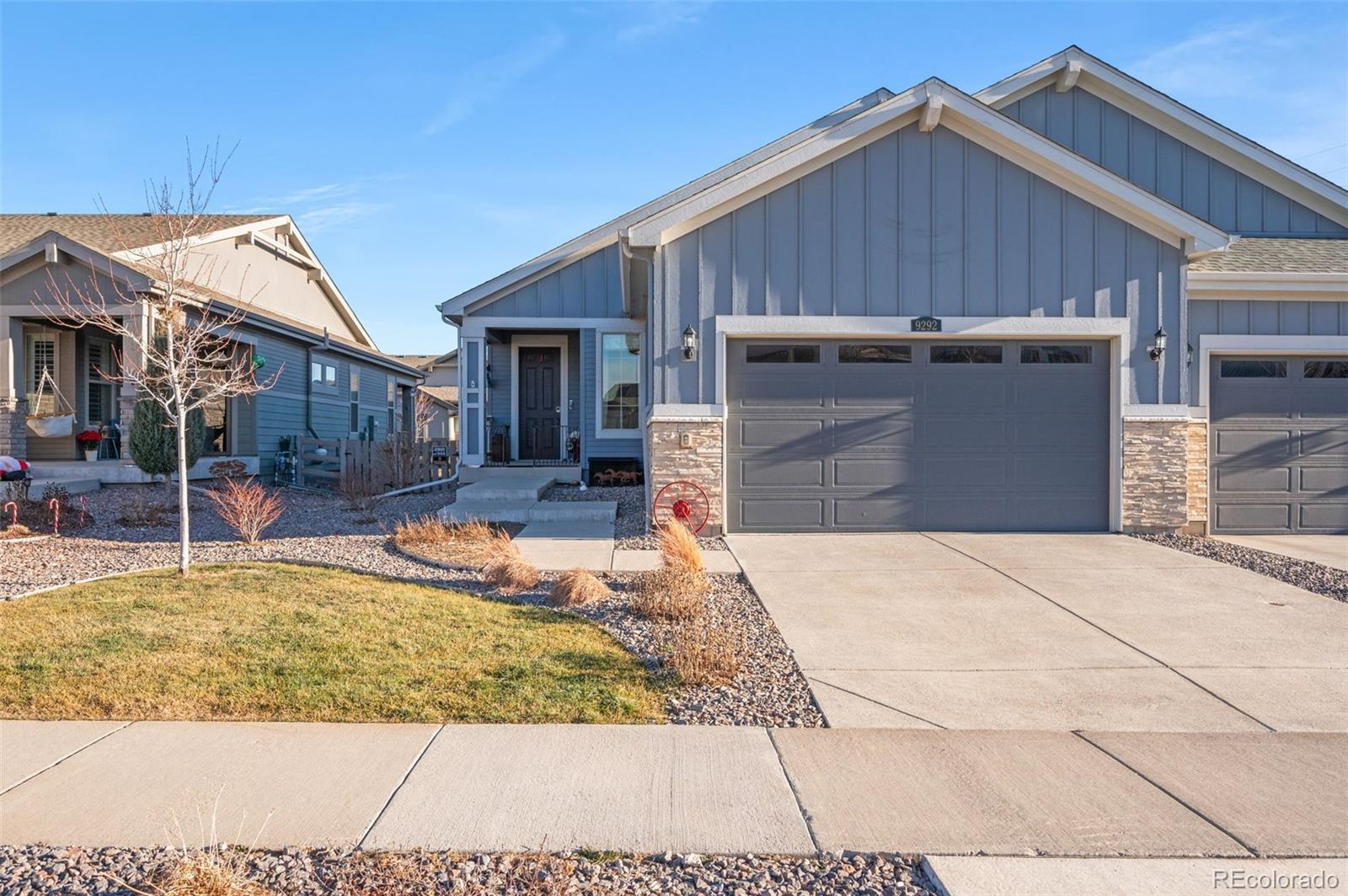 Enjoy effortless main-floor living in this beautifully customized, better-than-new, move-in-ready patio-style home located in Sterling Ranch—one of Douglas County’s most sought-after and fastest-growing communities. Thoughtfully designed with an open floor plan, this home offers 2 bedrooms and 2 bathrooms and is loaded with high-end upgrades and stylish custom finishes throughout. The heart of the home features stainless steel GE appliances, Silestone countertops, designer lighting, chic black hardware on doors and fixtures, and luxury vinyl plank flooring that flows seamlessly through the space. 9-foot ceilings and 8-foot doors enhance the sense of openness while adding a modern, sophisticated touch. The spacious owner’s suite is a true retreat, filled with natural light and complete with a beautifully appointed bathroom and a huge walk-in closet with direct access to the laundry room for everyday convenience. A generous mudroom off the garage provides the perfect drop zone for outdoor gear and Colorado adventures. Step outside to a covered back porch ideal for grilling and enjoy a manageable yard perfect for your four-legged family members. Sterling Ranch offers an unmatched lifestyle with resort-style amenities, including a fitness center, outdoor pool, community center, parks, clubhouse, over 30 miles of walking trails, and 1,300 acres of preserved open space—all with HOA dues conveniently included in your property taxes. Sterling Ranch is the first all gigabit community in Colorado, with a fiber-optic network that delivers upload and download data at symmetrical Gig speeds for all homes.