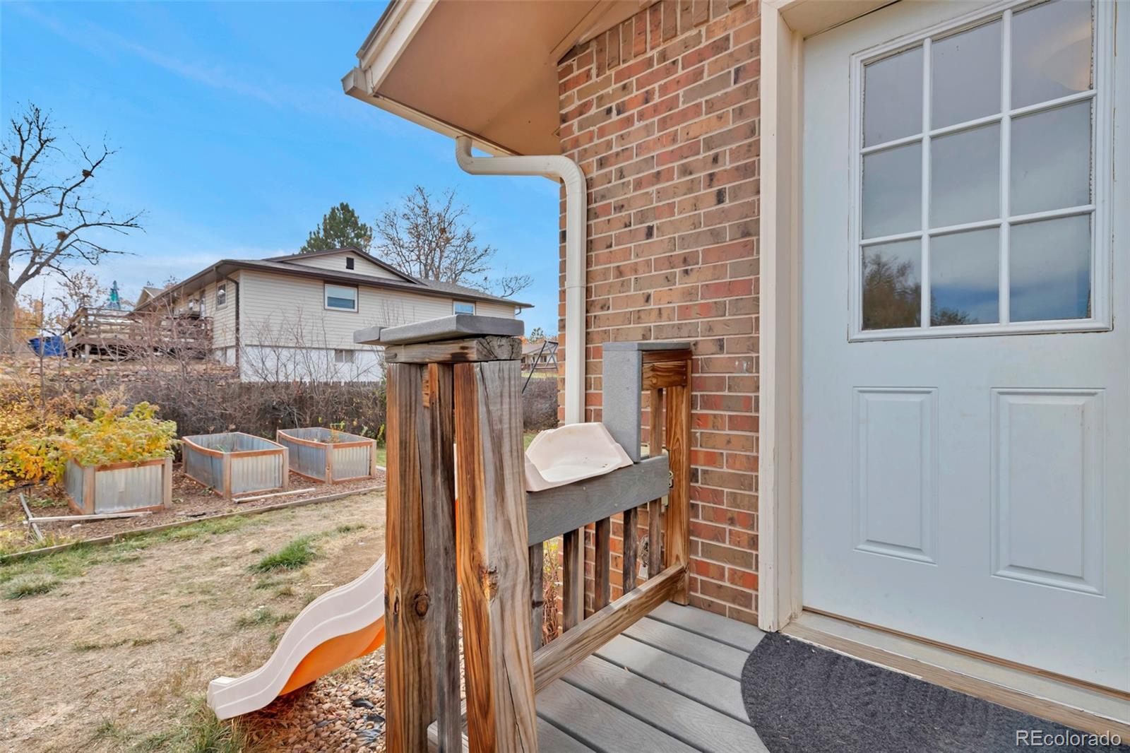 Fantastic home on a large corner lot in Columbine Hills is a great opportunity for Buyers. The massive lot has many great features such as a covered back patio, playground, raised garden beds, and two sheds for extra storage. The front yard has a covered porch with room for a small seating area. As you enter this remarkable home you will be impressed the artistic touches, and the large sun splashed rooms. The kitchen has an eat in area and open ups to the family room. The inviting family room has a large fireplace making the room cozy and opens up the to the covered patio which is perfect for entertaining. The basement is finished with two bonus rooms, perfect for an office, exercise area and many other options. The private top floor includes two additional bedroom, a full bath, primary bedroom with en suite bath. This home is delightful and easy to show.