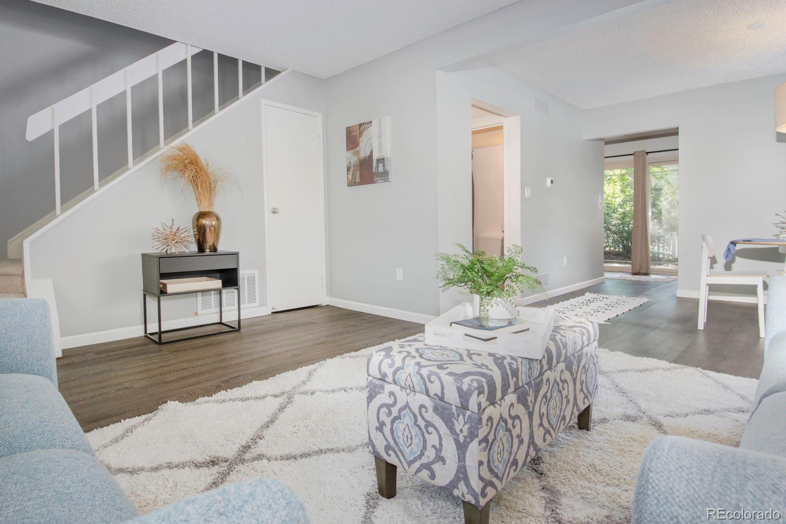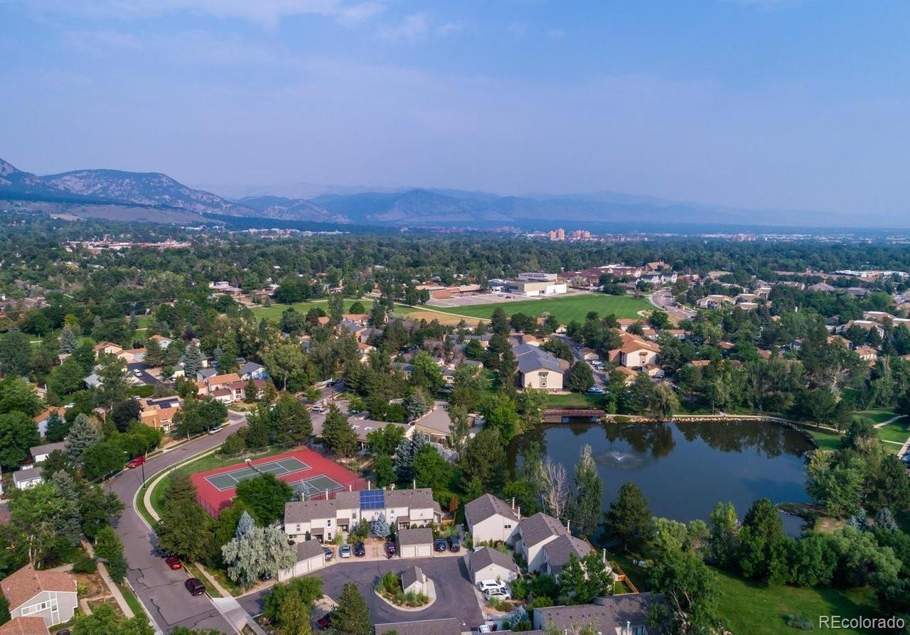 CLOSING COST CREDIT or LENDER BUYDOWN available to help new owner. Please inquire with listing agent. SOUTH BOULDER LIVING! Flatiron views from this 3br, 1 1/2 bath home offering a fantastic location to live your Boulder dreams! Steps from hiking/biking trails, close to shopping, coffee, restaurants and only 2.4 miles to CU campus! PET FRIENDLY COMMUNITY with parks and trails close by. The home has been remodeled and features a brand-NEW furnace, stainless steel appliances 6 years old, engineered hardwood throughout main floor, new carpet upstairs. The backyard is a peaceful oasis with a fenced area that borders neighborhood greenbelt. The primary suite has its own private "treehouse" balcony with Flatiron views. Two assigned parking spaces very close to the front door. Come visit this fabulous community with HOA tennis, basketball, fitness center, clubhouse and more!