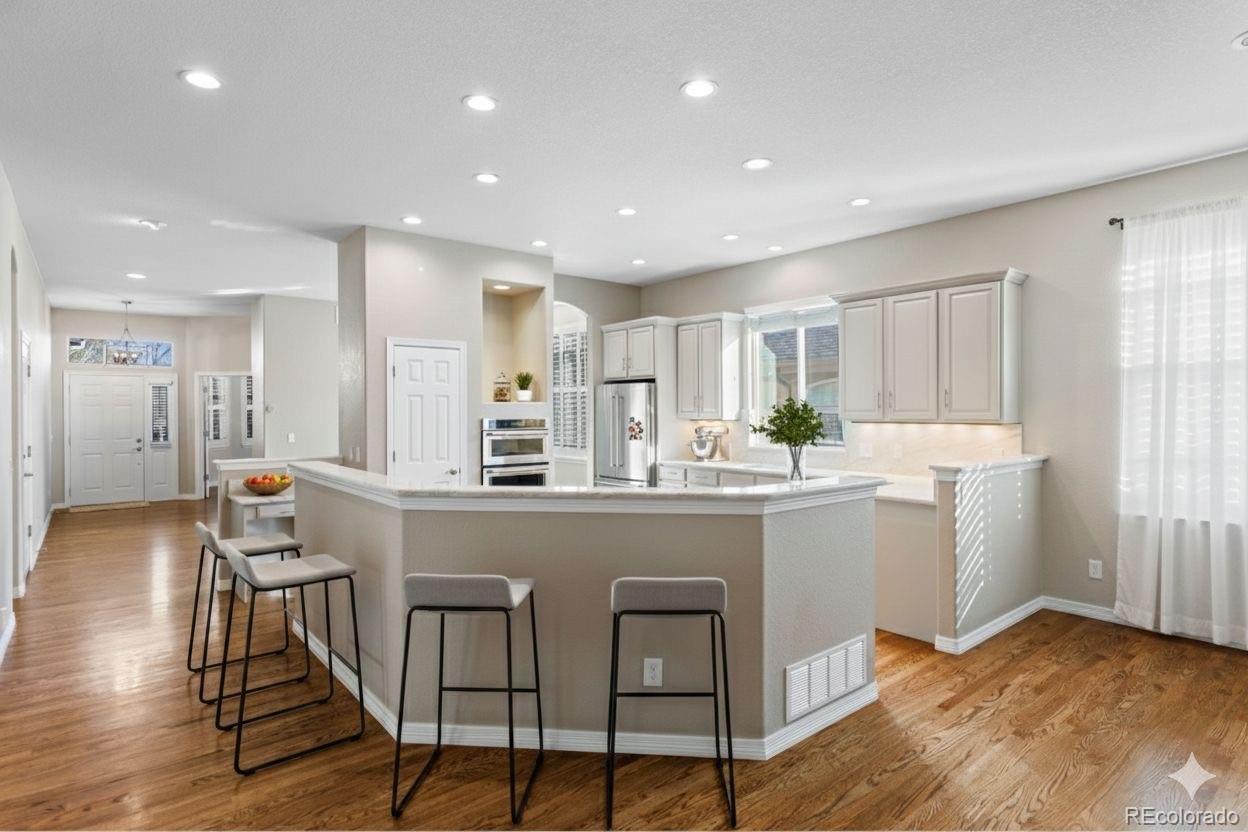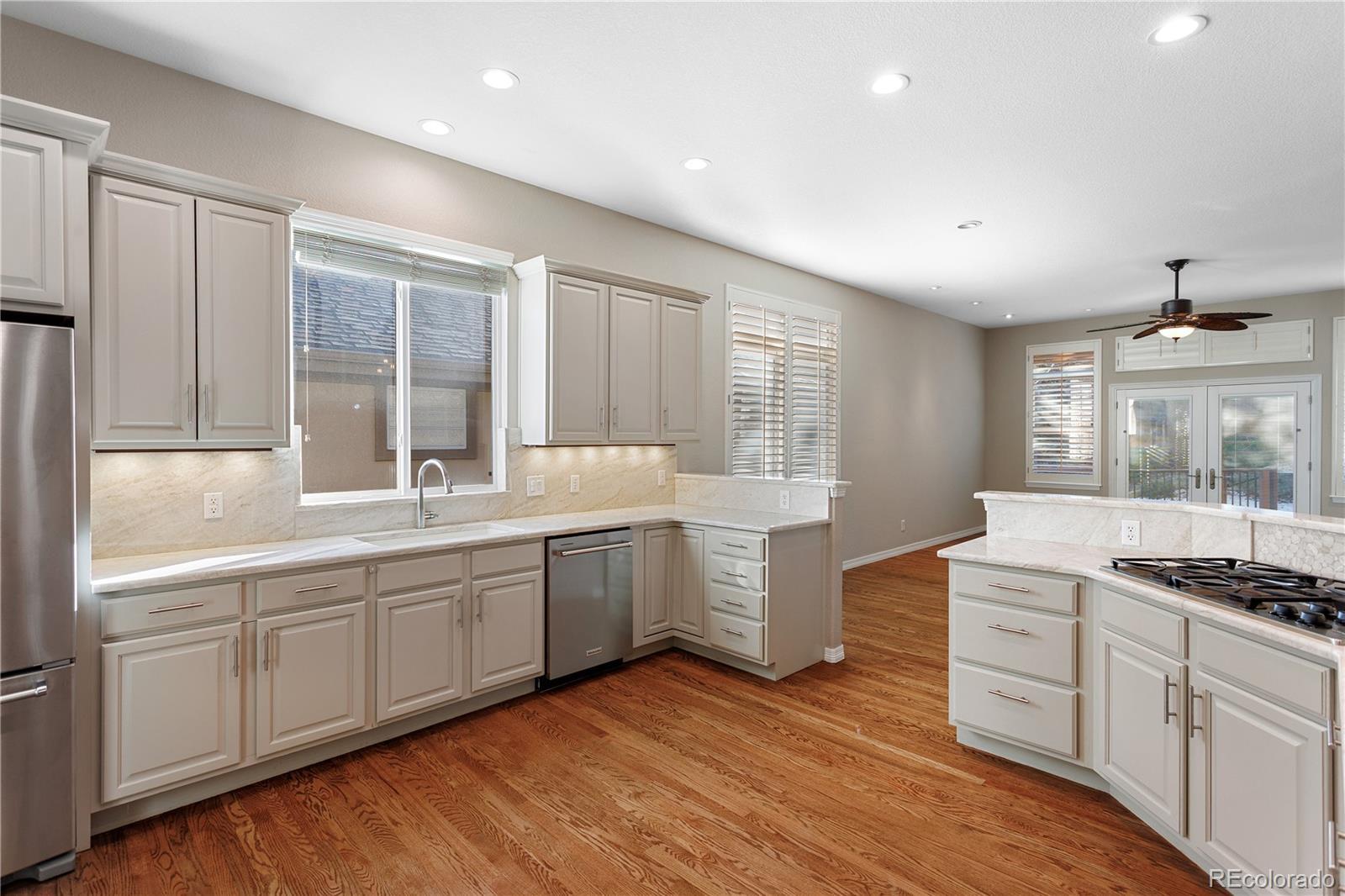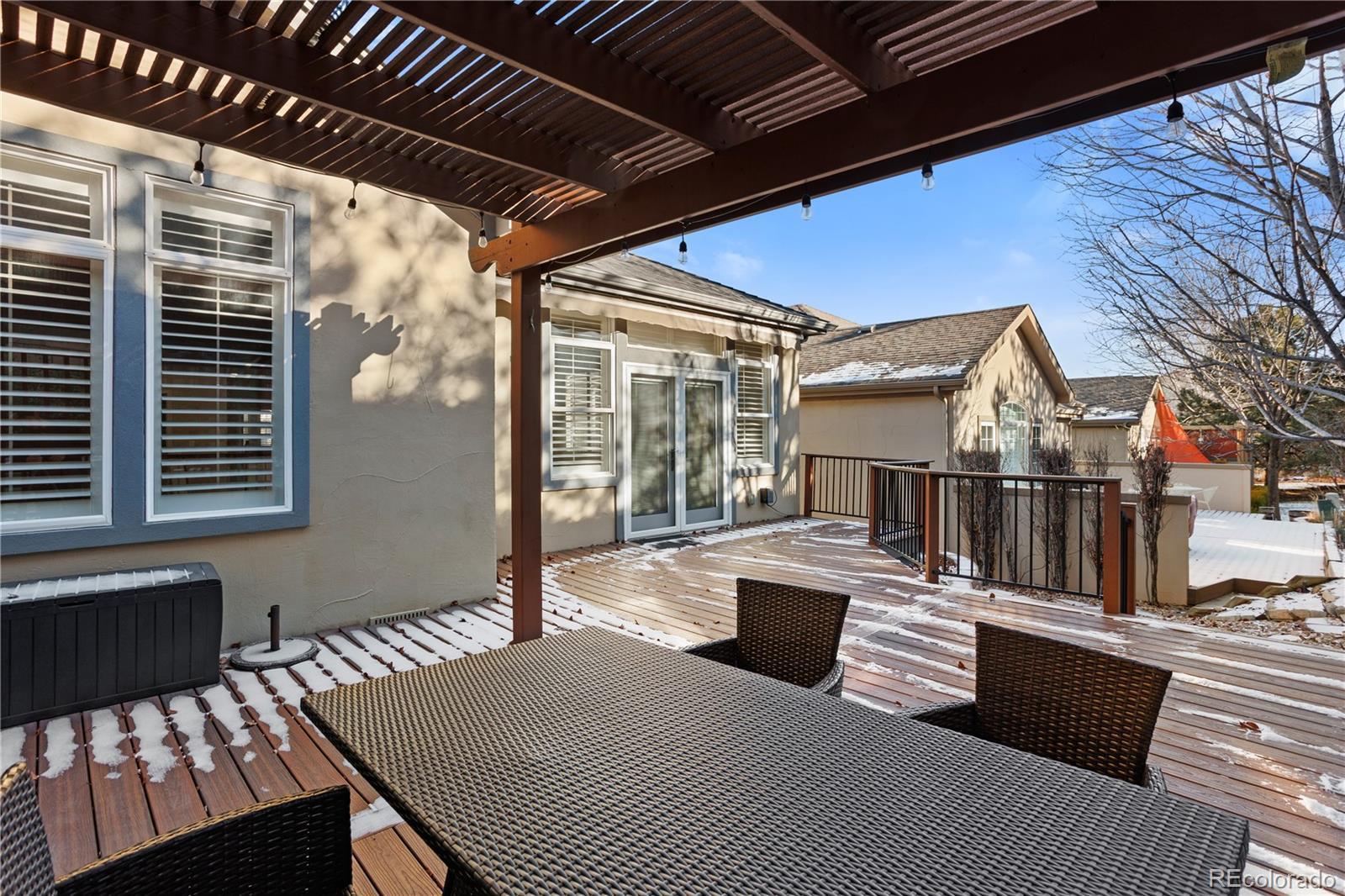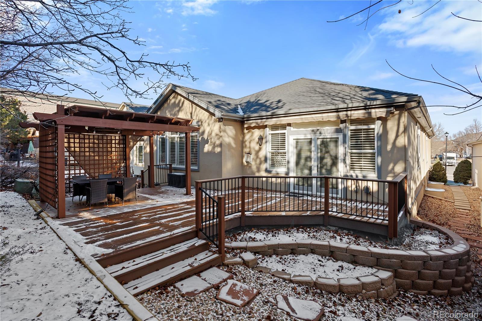 Located in the Fairways at South Suburban, this ranch-style home with main-level living offers a rare opportunity to enjoy a quiet residential setting near the South Suburban Golf Course, parks, and trails. Set on a peaceful, sidewalk-lined street, the home features an oversized attached garage and mature landscaping in a well-established community. This home offers true main level living with a thoughtfully designed layout and primary suite on the main floor, features modern updates throughout for easy move in living, and includes a private backyard deck with a retractable awning that creates a perfect outdoor retreat for enjoying the Colorado sun. Residents enjoy a low HOA with access to community amenities including a pool, tennis courts, and pickleball, along with a true lock and leave lifestyle where snow removal and landscaping are handled for you, all conveniently located near South Suburban Park and Golf Course with easy access to walking paths and open green space. Coffee shops, dining, grocery stores, and retail are just minutes away, while proximity to downtown Littleton, DTC, and major commuter routes makes this Centennial location ideal for buyers searching for ranch-style homes, main-level living, updated properties, and community amenities near golf courses, parks, and trails. Some photos have been virtually altered.