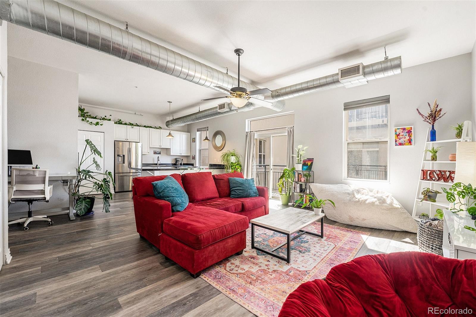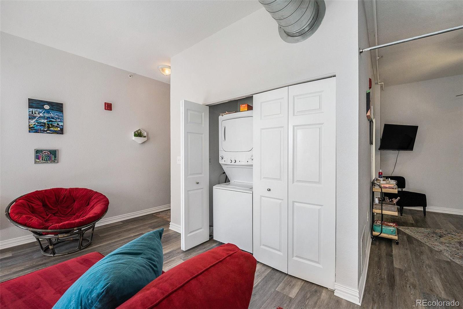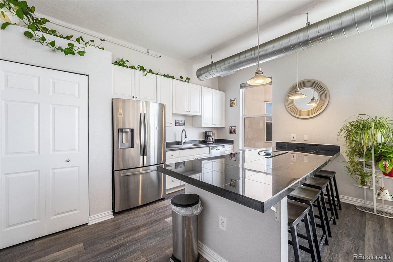 Welcome to urban living at its best! This stylish condo blends modern comfort with unbeatable walkability in the heart of Denver. Inside, you’ll find luxury vinyl plank flooring, tall ceilings, and oversized baseboards creating a fresh, open feel. The spacious bedroom includes a walk-in closet with extra storage above, while the updated bathroom offers a tiled tub/shower, framed mirror, and modern shelving. The kitchen shines with stainless steel appliances (including a brand-new refrigerator and electric range), tile counters, pantry, pendant lighting, and a dishwasher for convenience. The living room opens to a private balcony with incredible mountain views, perfect for morning coffee or evening sunsets. This unit also features central A/C, a gas furnace, an electronic door lock, and the rare bonus of in-unit laundry with washer/dryer included. Even better, you’ll love the dedicated storage room for all your gear – a huge perk in condo living! Step outside and enjoy everything this vibrant neighborhood offers – from award-winning restaurants and coffee shops to boutiques, nightlife, and easy access to parks, downtown, and Cherry Creek. The HOA even covers bulk internet and cable TV service for the building if you want it! Don’t miss your chance to own a move-in ready home with mountain views, storage, and walkability in one of Denver’s most dynamic locations!
