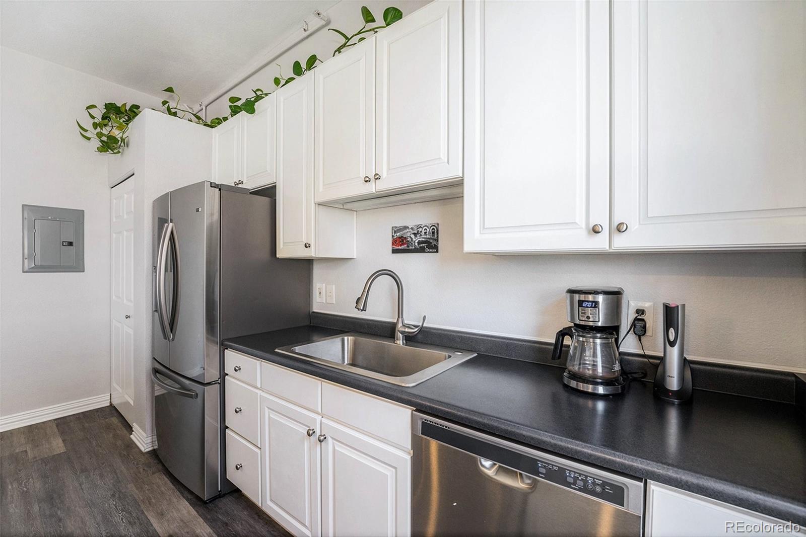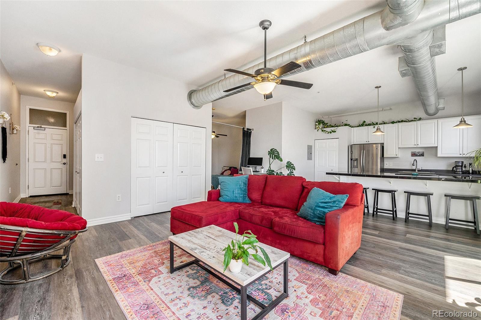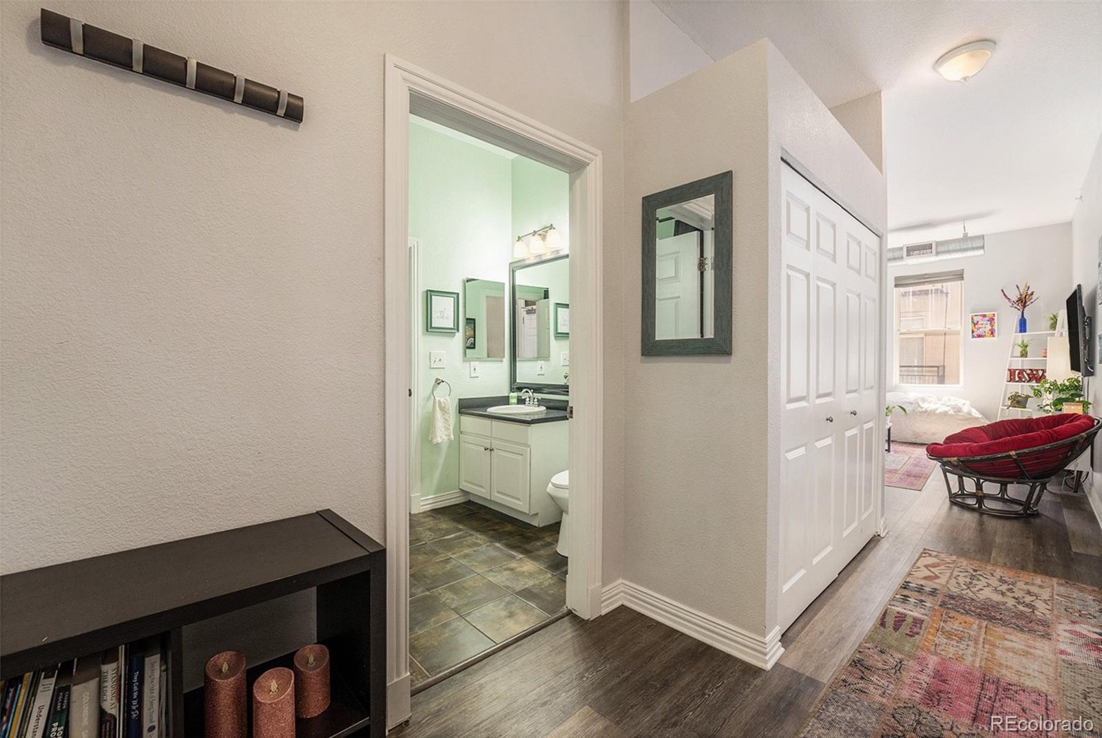 Welcome to urban living at its best! This stylish condo blends modern comfort with unbeatable walkability in the heart of Denver. Inside, you’ll find luxury vinyl plank flooring, tall ceilings, and oversized baseboards creating a fresh, open feel. The spacious bedroom includes a walk-in closet with extra storage above, while the updated bathroom offers a tiled tub/shower, framed mirror, and modern shelving. The kitchen shines with stainless steel appliances (including a brand-new refrigerator and electric range), tile counters, pantry, pendant lighting, and a dishwasher for convenience. The living room opens to a private balcony with incredible mountain views, perfect for morning coffee or evening sunsets. This unit also features central A/C, a gas furnace, an electronic door lock, and the rare bonus of in-unit laundry with washer/dryer included. Even better, you’ll love the dedicated storage room for all your gear – a huge perk in condo living! Step outside and enjoy everything this vibrant neighborhood offers – from award-winning restaurants and coffee shops to boutiques, nightlife, and easy access to parks, downtown, and Cherry Creek. The HOA even covers bulk internet and cable TV service for the building if you want it! Don’t miss your chance to own a move-in ready home with mountain views, storage, and walkability in one of Denver’s most dynamic locations!