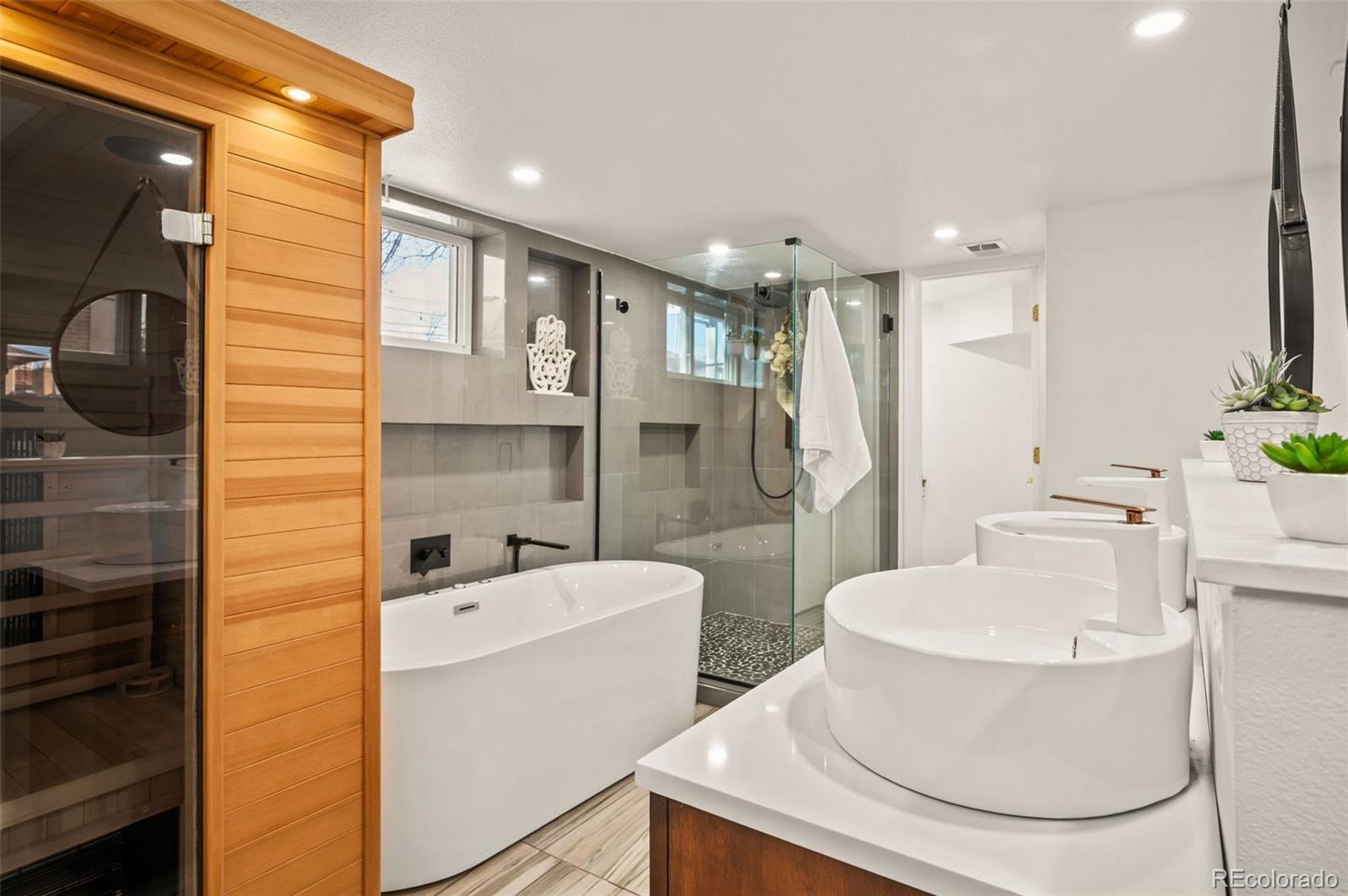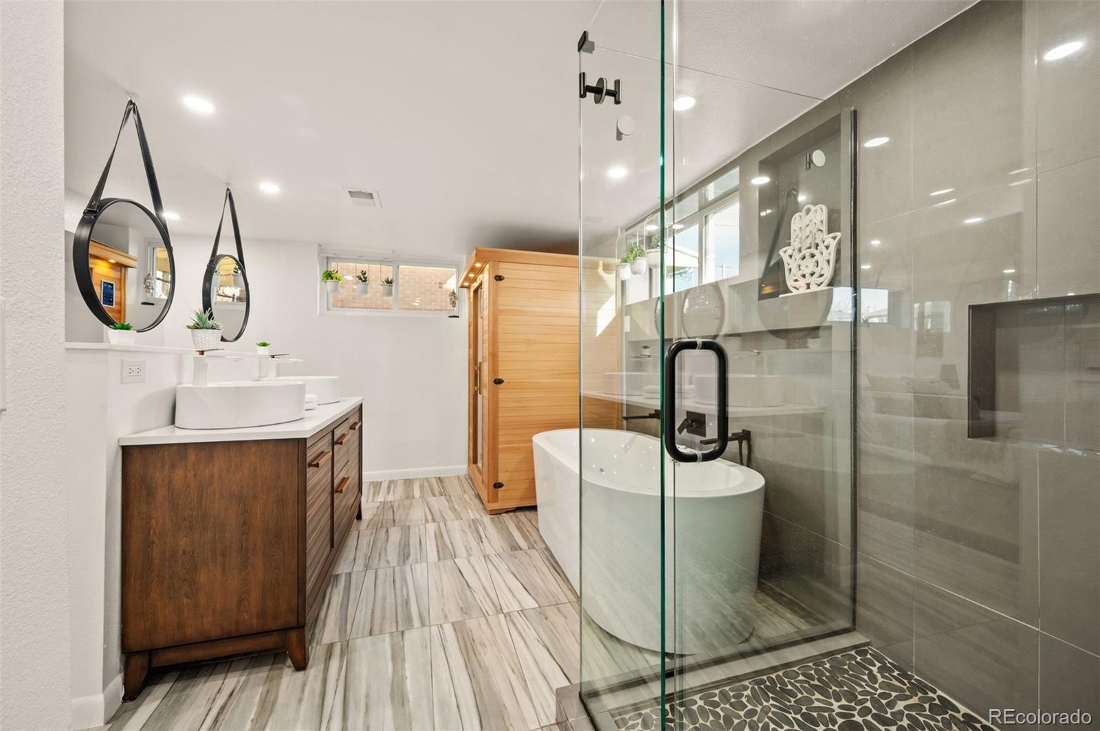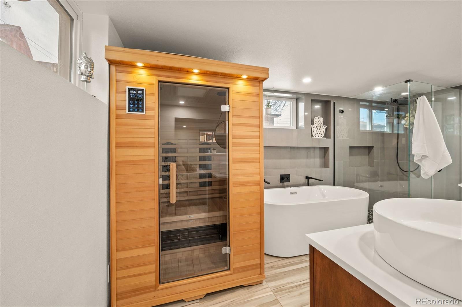 Welcome to 2210 Marshall Street, where a home becomes a feeling long before it becomes an address. Discover a rare blend of comfort, style, and wellness-living in this beautifully updated home just steps from all the best that Edgewater has to offer. With an open-concept layout and thoughtful upgrades throughout, this home strikes the perfect balance of modern convenience and inviting charm. At the heart of the home is a fully remodeled contemporary kitchen, complete with sleek finishes, abundant cabinet storage, and a built-in toe-kick vacuum...a small but brilliant detail that makes everyday life easier. Retreat to the lower level and experience the true standout of the home: a luxurious “Zen Den” primary suite featuring a free-standing jetted soaking tub, an infrared sauna, and warm, tranquil finishes that create a spa-like escape. It’s the perfect place to reset, restore, and rise ready for a new day. Step outside to a spacious backyard designed for hosting, gardening, or simply soaking up Colorado’s blue-sky days. The oversized detached 2-car garage provides exceptional storage and room for gear, hobbies, or workshop space. Located on a quiet tree-lined block just minutes from Edgewater Public Market, Joyride Brewing, and the lakefront, this home delivers not only comfort but a lifestyle. With easy access to downtown, the mountains, and major commuter routes, the location can’t be beat. Thoughtfully enhanced and move-in ready, 2210 Marshall Street is a true gem in the heart of Edgewater. Here, life feels intentional…Here, wellness and comfort meet…Here, you can exhale. Welcome home.