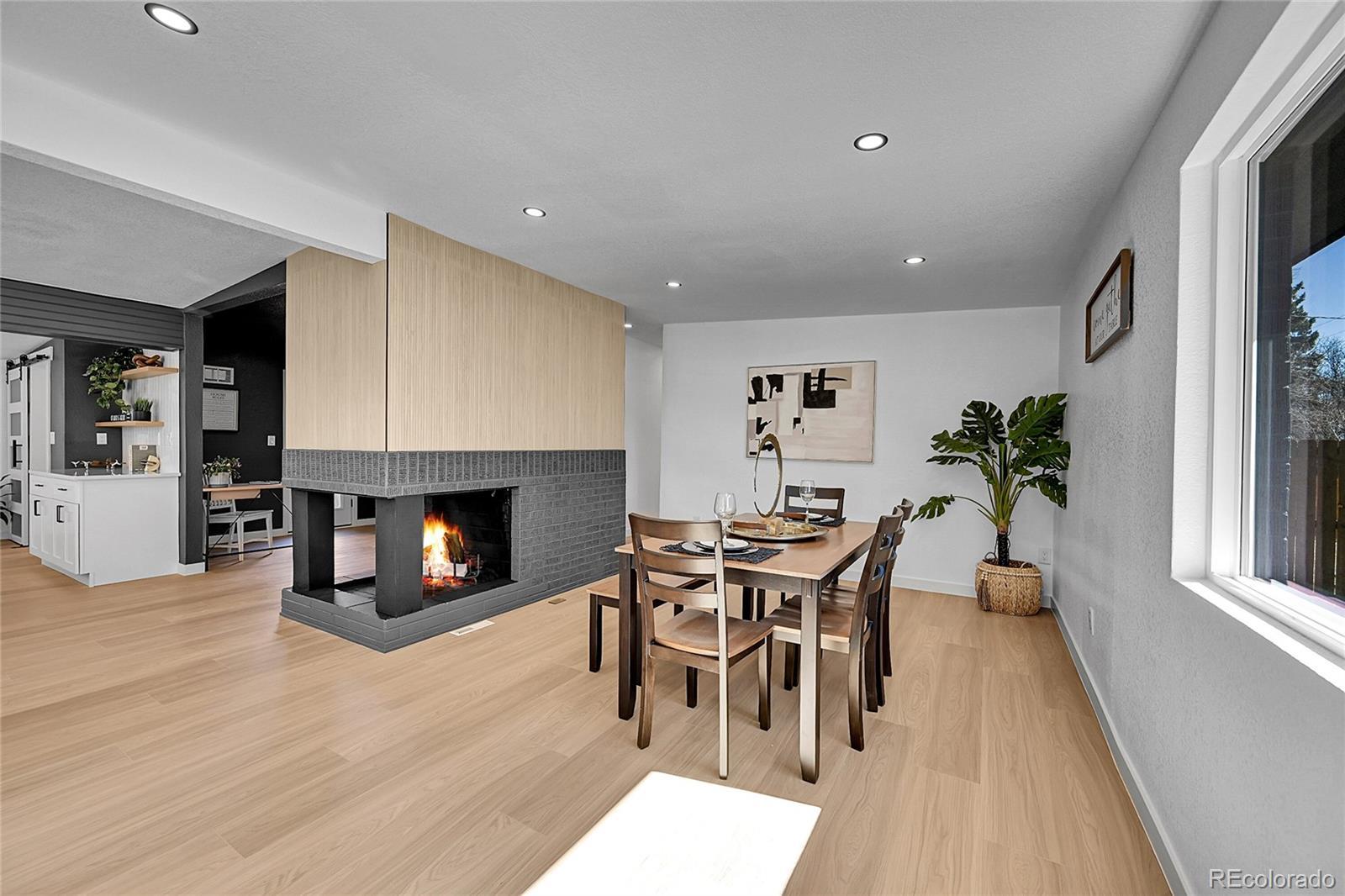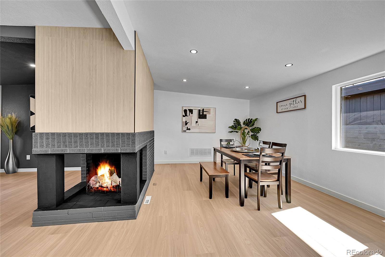 Completely reimagined inside and designed to impress, this stunning mid-century modern ranch blends iconic style with today’s luxury finishes — all situated on a spacious corner lot in the heart of Arvada. The moment you walk through the front door, you’re greeted by the original three-sided fireplace — a striking architectural focal point that instantly sets the tone and honors the home’s mid-century roots. From there, the space opens into a vaulted great room filled with natural light and enhanced by recessed lighting throughout. The gourmet kitchen was designed for entertaining and everyday living, featuring quartz countertops, custom soft-close cabinetry, Smart Samsung stainless steel appliances, and a side-by-side refrigerator with in-door ice maker. Clean lines, modern finishes, and seamless flow make this home feel both sophisticated and welcoming. Major upgrades include new windows, new roof, oversized new one-car garage, newer furnace and water heater, and high-end waterproof laminate flooring throughout. The custom tile work elevates both bathrooms, including a beautiful primary en-suite with waterfall faucets and a luxurious rainfall showerhead. Outside, enjoy a newly fenced, private backyard on a generous corner lot — ideal for relaxing evenings, pets, or hosting friends. Located just minutes from light rail, parks, trails, Indian Tree Golf Club, shopping, the mountains, and the charm of Olde Town Arvada, this home delivers style, substance, and convenience. Mid-century character. Modern luxury. All situated on a spacious corner lot in the heart of Arvada within the highly sought after Alta Vista Neighborhood. This one isn’t just remodeled — it’s reborn.