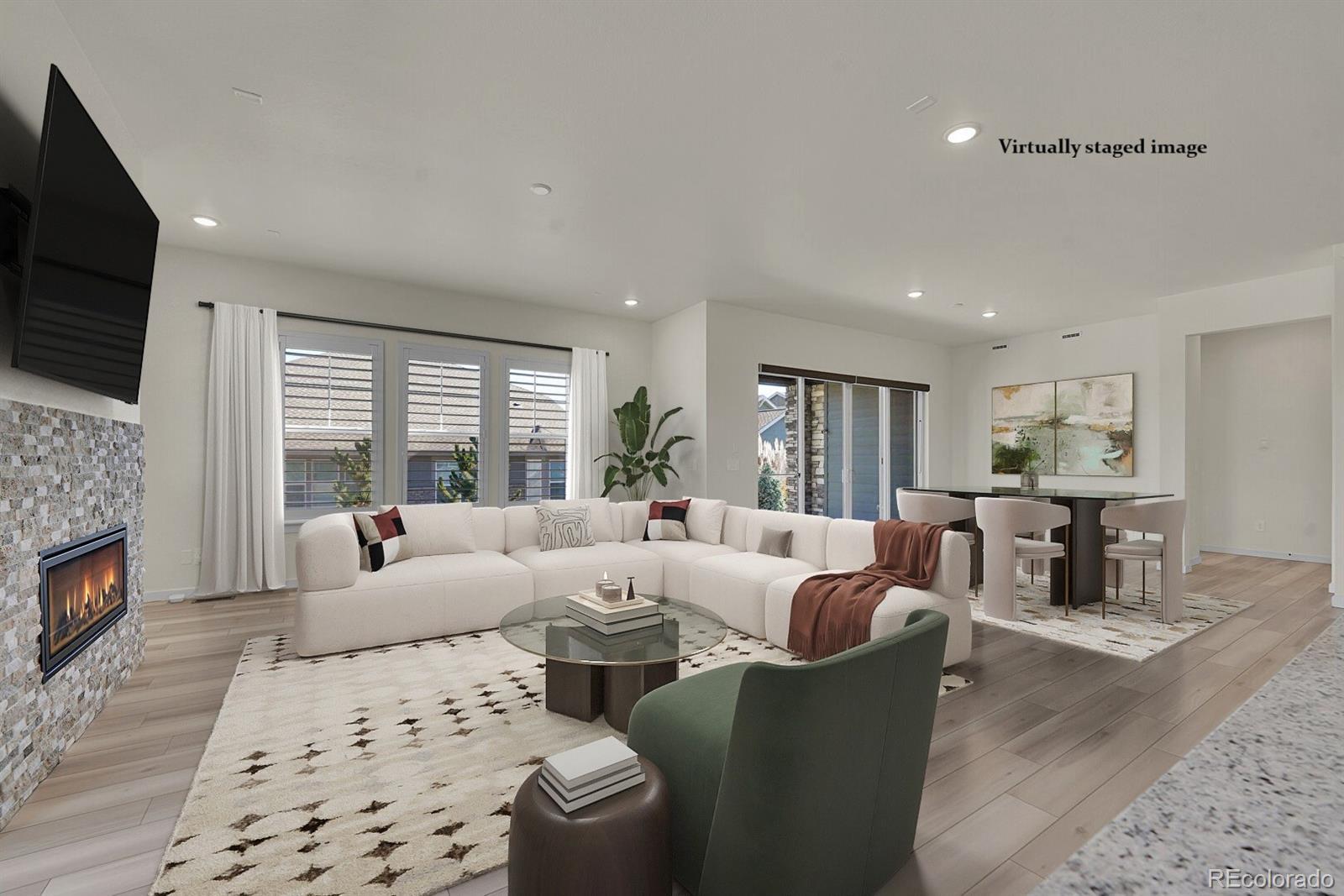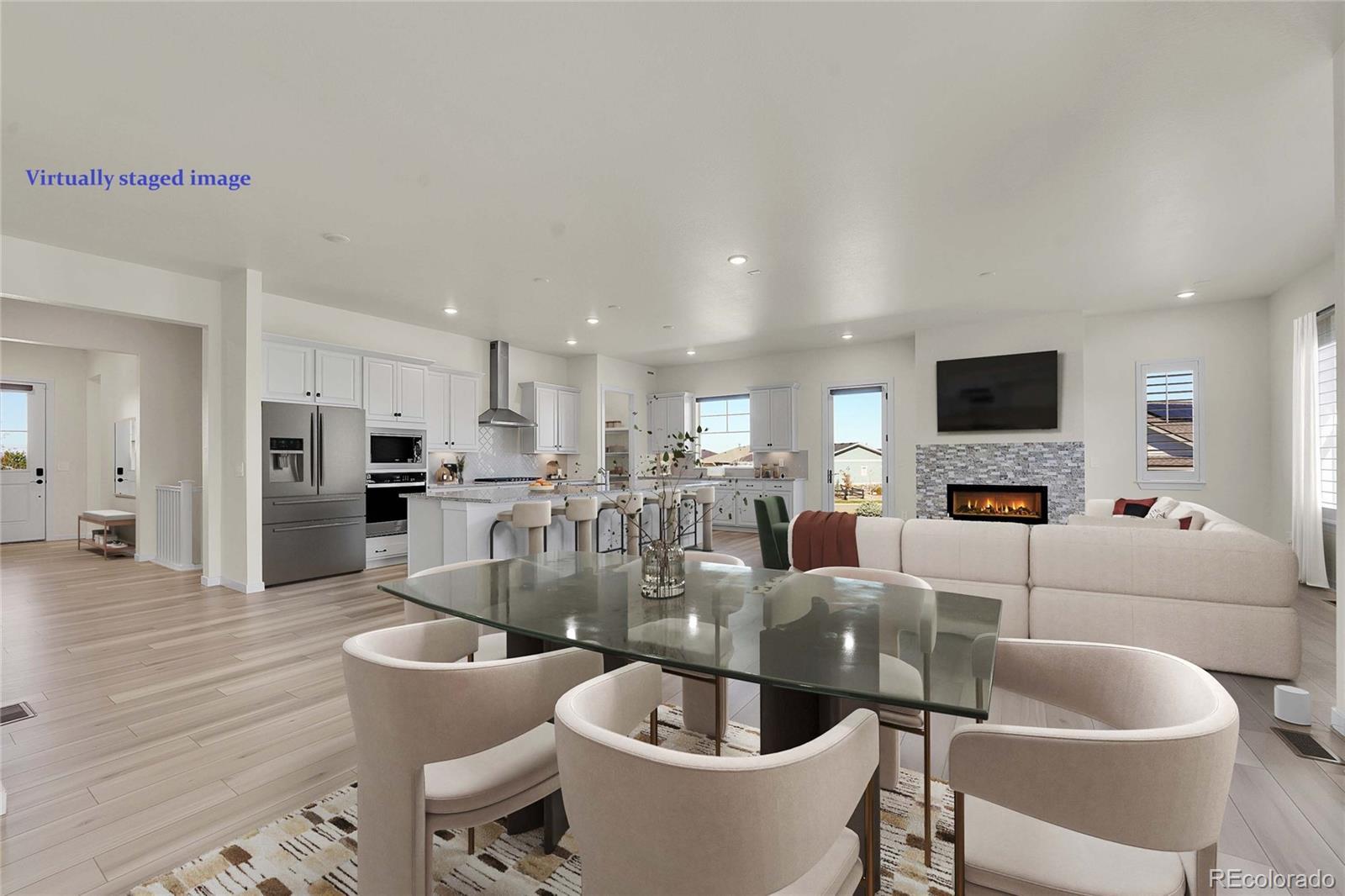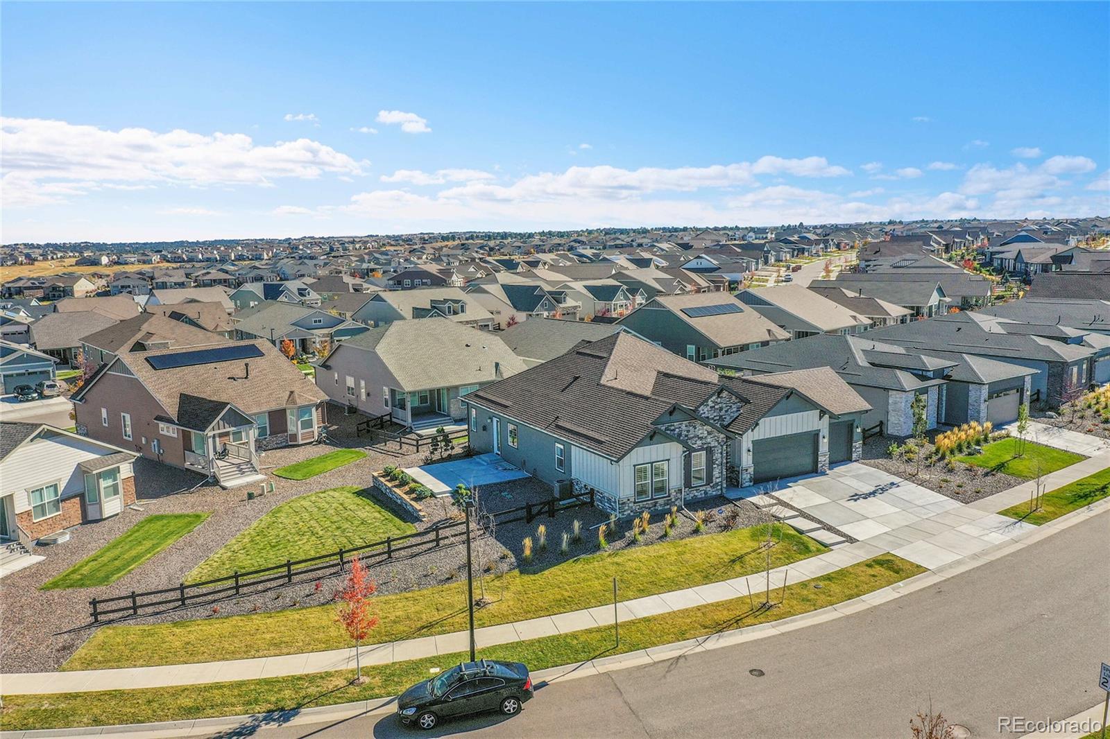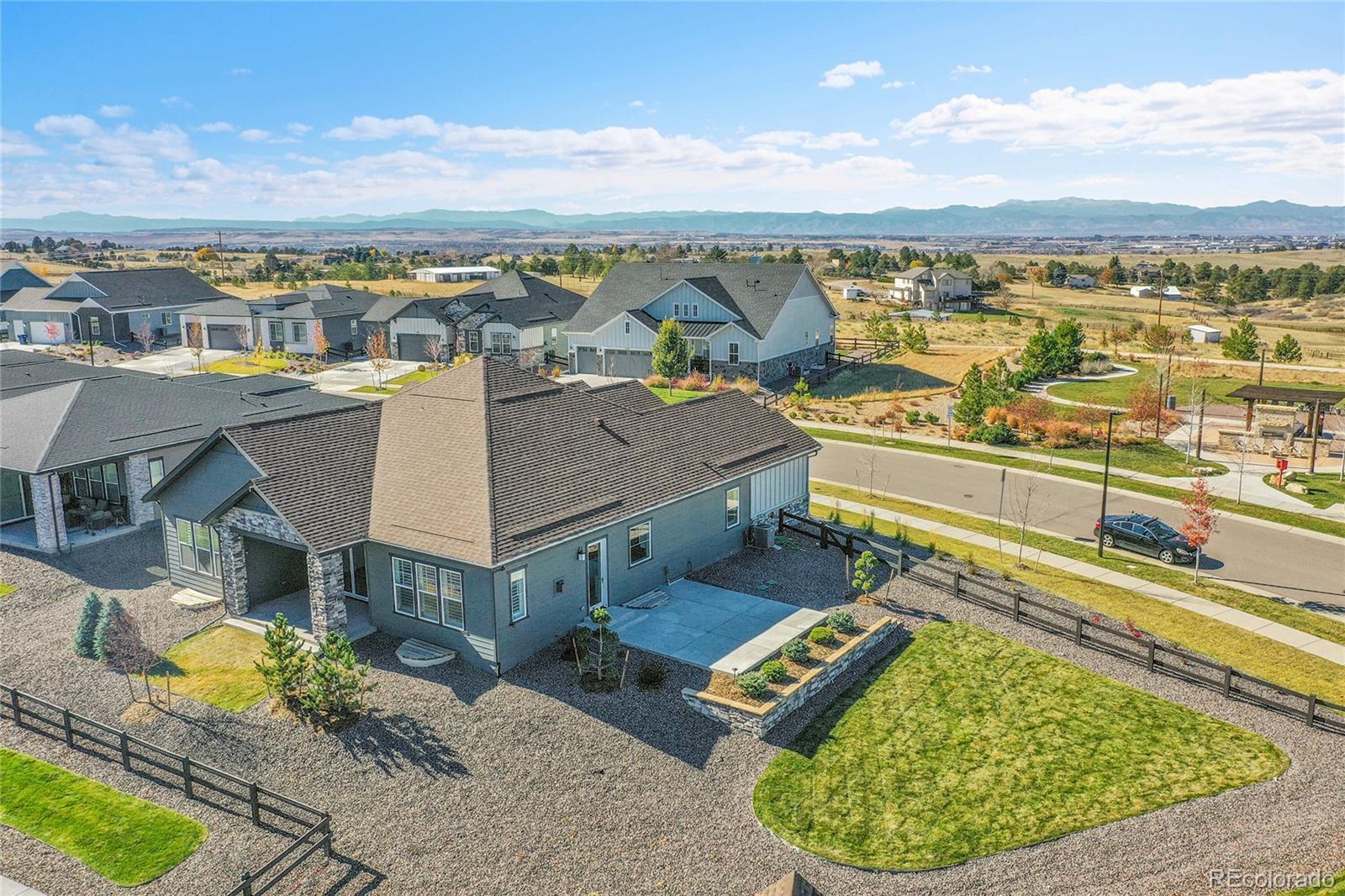Open House this Saturday, Jan 24, from 10:00 am - Noon! This modern 3-bedroom, 3-bathroom, ranch-style home boasts a 3-car garage and is situated on an extra-large, .31-acre lot. Located just across the street from Sunset Park, you’ll enjoy entertaining guests on the expansive, custom-side-patio where you’ll see stunning views of the majestic Rocky Mountains. The spacious living area features a cozy fireplace that radiates warmth, inviting you to unwind after a day of exploring the vast walking/biking trail system throughout this vibrant community. The heart of the home boasts a gourmet kitchen equipped with stainless steel appliances, gleaming granite countertops, and pristine white cabinets. The extra-large island offers ample prep space and seating for four – perfect for intimate gatherings or casual breakfasts with friends. Relax and rejuvenate! Experience the comfort of three well-appointed bedrooms, each a tranquil retreat designed for rest and rejuvenation. The additional office space offers the ideal setting for creative pursuits or remote work, ensuring you have a dedicated area to focus and inspire. Step outside to discover your personal slice of paradise. With two patios, one in back and one on the side, you will enjoy delightful afternoons hosting summer barbecues or enjoying peaceful evenings under the stars in your spacious outdoor oasis. Community Living at Its Best. Located in an award-winning “Inspiration” an Active Adult 55+ community, where you will find a vibrant neighborhood with like-minded individuals who share your zest for life. Engage with neighbors at community events, or take advantage of the myriad amenities available, from walking trails and parks to recreational facilities that promote an active, fulfilling lifestyle. Do not miss this incredible opportunity to make this dream home your reality. Schedule your private showing today!