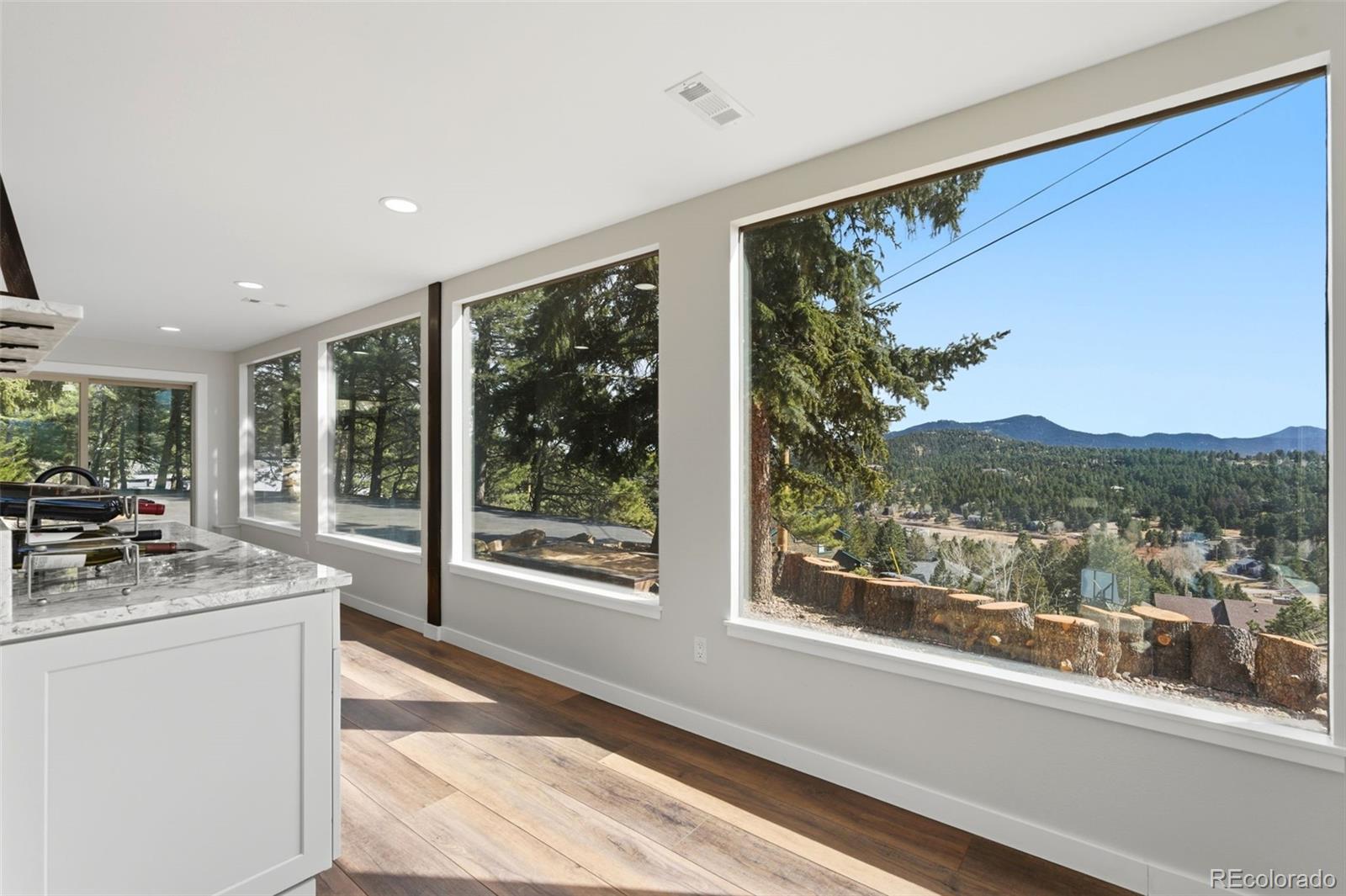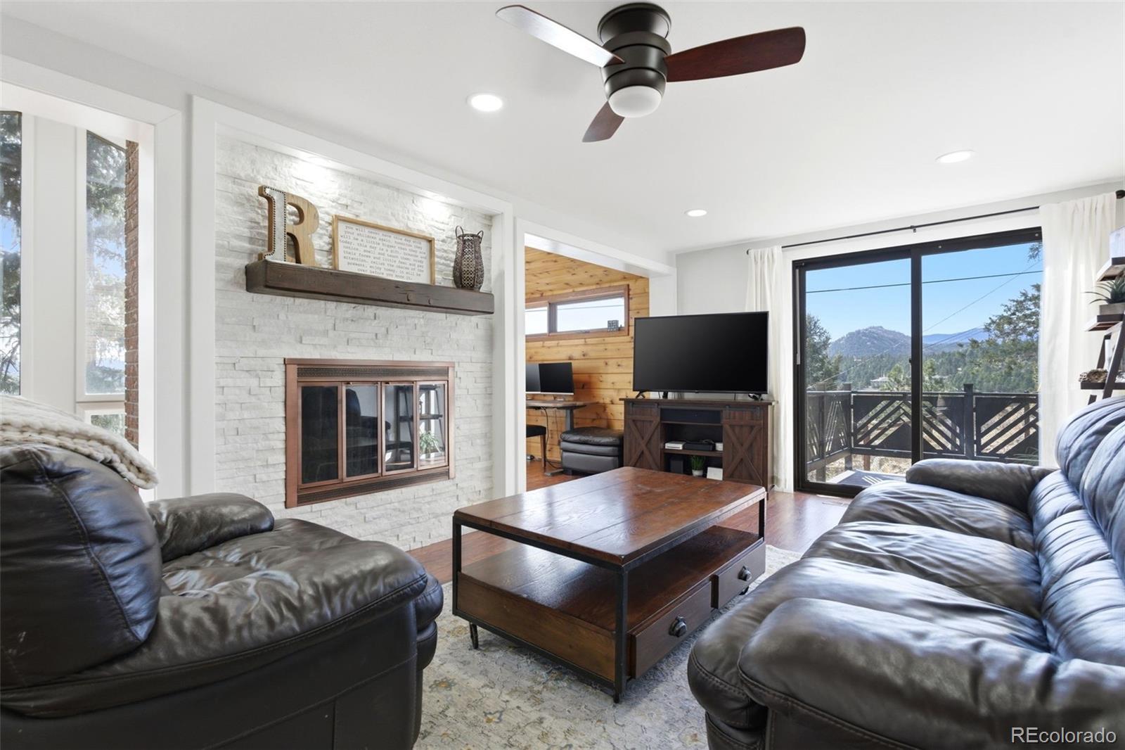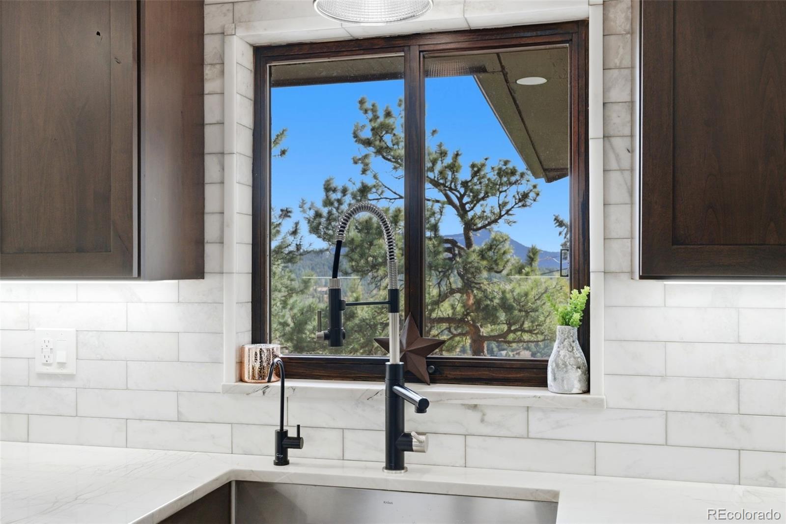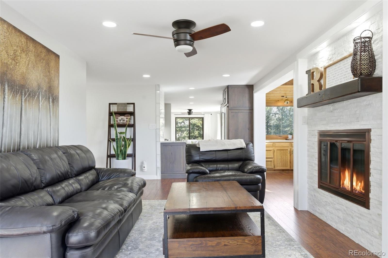 Experience refined mountain living in this beautifully updated walkout ranch that offers highly desirable main-level living. Bathed in natural light and framed by captivating views, this home blends timeless style with modern comfort. The main level offers 3 beds, 2 baths, multiple living and dining space options, wood-burning fireplace, and laundry closet. A rare and standout feature, the fully appointed basement “apartment” includes its own kitchen, living, dining, and separate laundry access - ideal for guests, multigenerational living, or income potential. There’s also a fully finished sunroom with wet bar. Outdoor living is nothing short of exceptional. Entertain beneath the large, covered patio complete with bar-top seating and dedicated dining space, gather around the stone natural gas fire pit, or relax on the TREX deck with custom-designed metal railing. Raised planter beds add functionality, creating a true haven designed for year-round enjoyment. Newer roof, gutters, and exterior paint, plus the bonus of central AC and public water/sewer. Perfectly positioned close to all that Evergreen has to offer - dining, shopping, trails, and recreation. Positioned on a quiet cul-de-sac, this home provides both privacy and convenience that’s sure to impress.