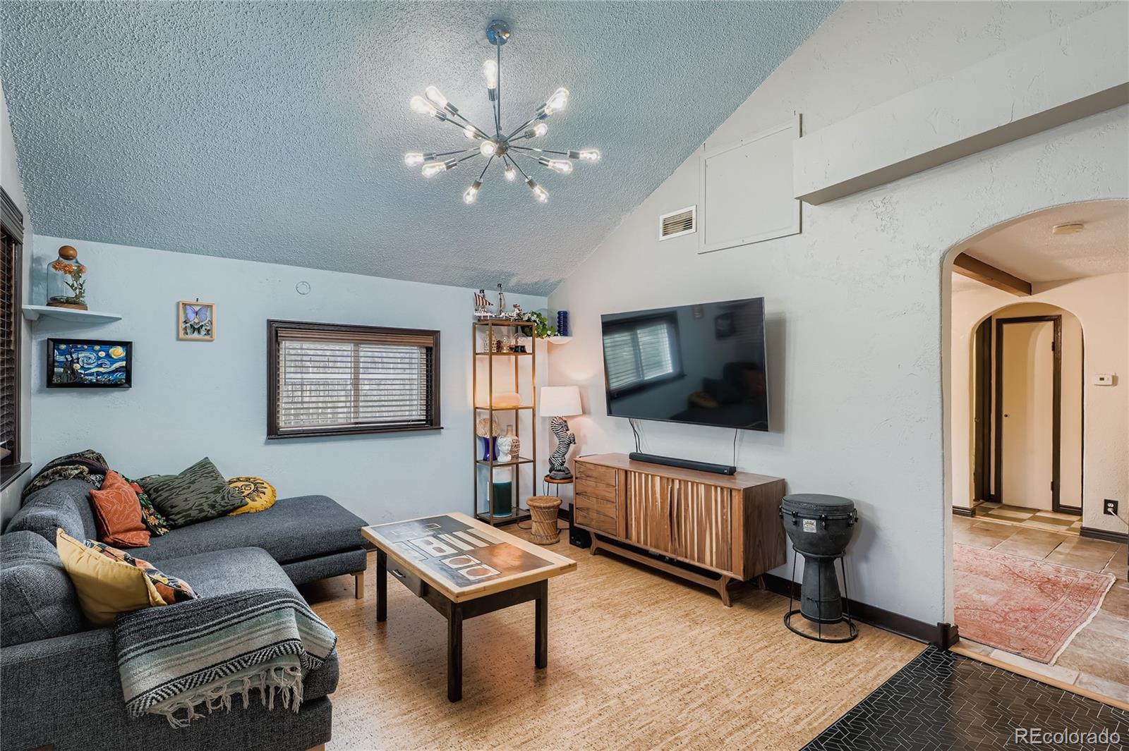 If you are looking for a charming recent thoughtfully updated move in ready Westwood bungalow on a large lot with lots of potential (Zoned for ADU "Accessory Dwelling Unit" and Driveway...verified by Permit Office in 2024) then you've come to the right place. Notice the ample off street parking (enough for three cars). The 6,650 SqFt lot includes two sheds that have electricity and multiple garden beds. Your covered front porch is the perfect place to sit and enjoy your large lot. The first thing you notice when you enter the home is the 14 ft. vaulted ceilings that make the already large living room feel even larger. Check out the Mid-Century Modern Chandelier! The Cork and Basalt tile floors were installed in 2021. The living room and the first of the three bedrooms (located off the living room) include custom wooden blinds. The dining room and it's exposed beams lead to the 2024 completely renovated kitchen that includes Quartz Caesarstone countertops, handmade Zia Encaustic Cement Tile flooring, custom soft close Conestoga Wood Cabinets, a single basin composite stone 36" sink complete with Kohler faucet, KitchenAid fridge...range...microwave hood, GE dishwasher, under cabinet lighting, built-in pantry and pull out spice cabinet. The full bath has a new vanity (installed 2025). The primary bedroom has new (2025) LVP flooring. The third bedroom/laundry room contains the Whirlpool washer and dryer that convey with the property. Other updates include double pane windows (2022), a 2021 installed roof on main house and both sheds, new back fence (2025), A/C window units and ceiling fans. The city of Denver is heavily invested in Westwood and has approved plans for many improvements. This home, with its smart updates, is only minutes away from some of the best restaurants, markets, neighborhood festivals, parks, lakes, and all that downtown Denver has to offer! IF BUYER USES SELLER’S PREFERRED LENDER THE LENDER WILL PAY FOR A 1-1 BUY DOWN ON THE INTEREST RATE!!