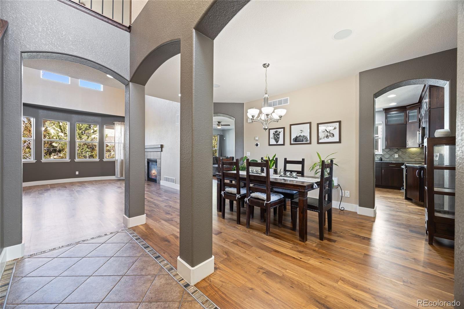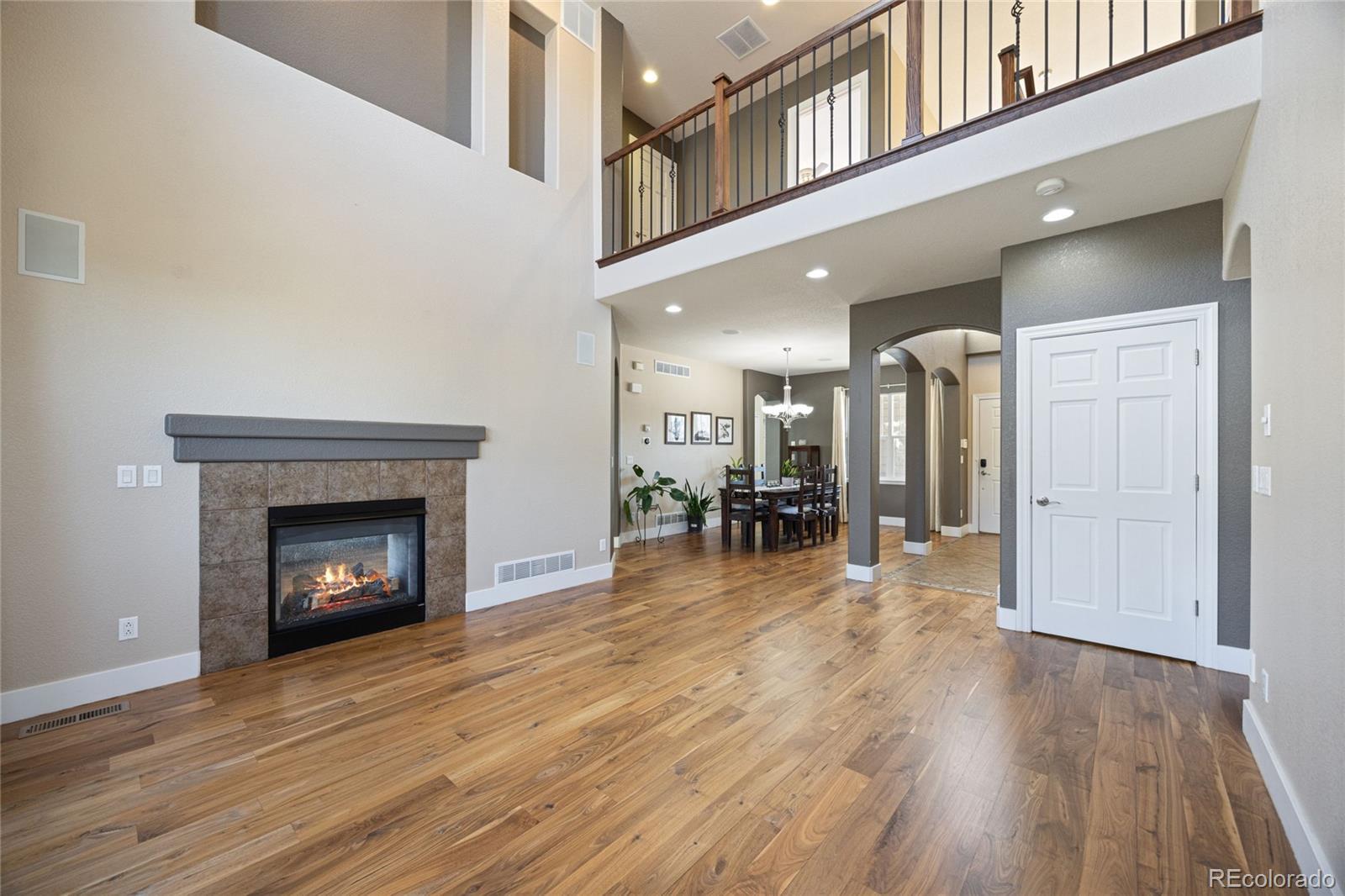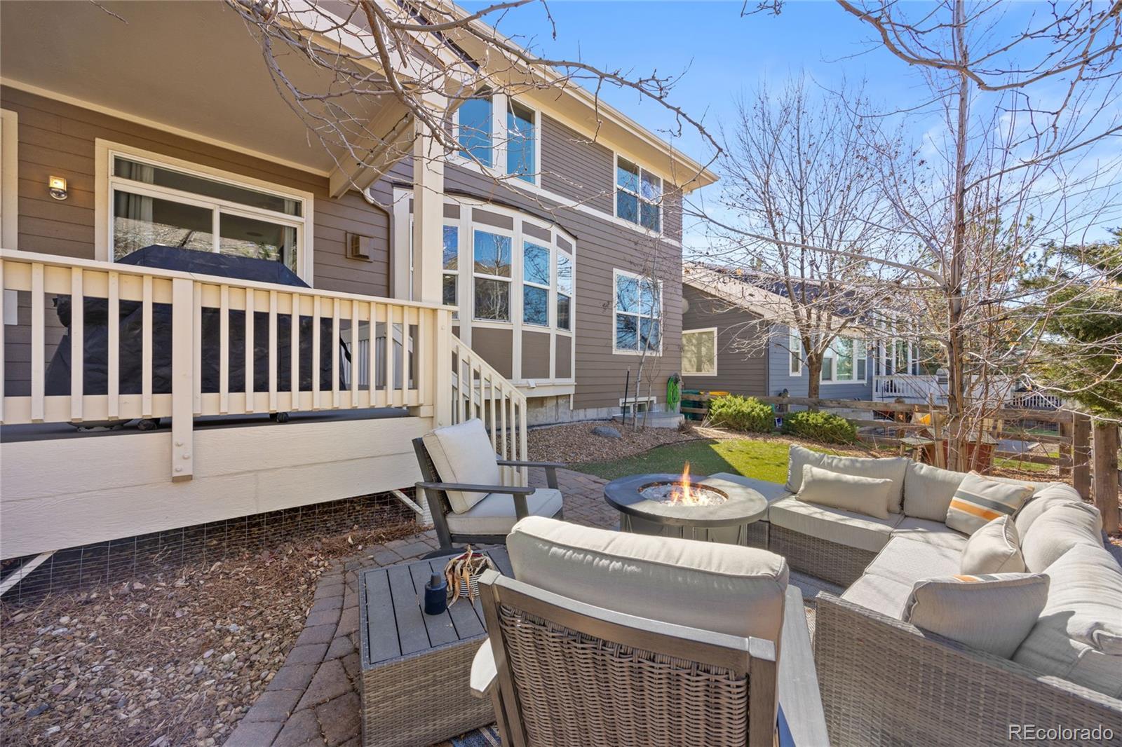 THIS AMAZING PROPERTY IS ELIGIBLE FOR A FREE ONE-YEAR 1% INTEREST RATE BUY-DOWN FOR BUYERS WHO QUALIFY AND FINANCE THROUGH A PREFERRED LENDER... Welcome to this exquisite former model home in the highly sought-after Watercolor community! Situated in The Meadows at Castle Rock, this gorgeous 5-bedroom, 5-bath home offers luxury living with unparalleled features. As one of only five model homes in the neighborhood, it’s a rare opportunity to own a standout property that’s both stylish and functional. Upon entering, you're greeted by soaring ceilings in the living room, where natural light pours in, highlighting the home’s bright, open floor plan. A double-sided fireplace adds warmth and charm, creating a seamless flow between the living room and family room. The main level is adorned with stunning hickory flooring throughout, enhancing the home's inviting atmosphere. The chef’s kitchen boasts rich cherry cabinets, stainless steel appliances, and ample counter space, perfect for preparing meals or entertaining. A main-floor study/den features built-in cabinetry, offering a quiet workspace. Step outside to the covered deck off the family room, which is ideal for relaxing or enjoying the peaceful surroundings. The spacious primary suite serves as a tranquil retreat, featuring an updated bath and a generous walk-in closet. Also upstairs, a guest bedroom with an ensuite bath ensures privacy, while two additional bedrooms share a well-appointed connecting bath. The professionally finished basement is an entertainer's dream, complete with a wet bar, theater area, gaming space, guest bedroom, and full bath. This home is perfectly located with easy access to The Grange clubhouse, community pool, parks, trails, and a variety of shops and restaurants. Commuters will appreciate the quick access to I-25 and Highway 85, along with top-rated schools nearby. Don’t miss out on this incredible opportunity... Schedule your showing today before this gem is gone!