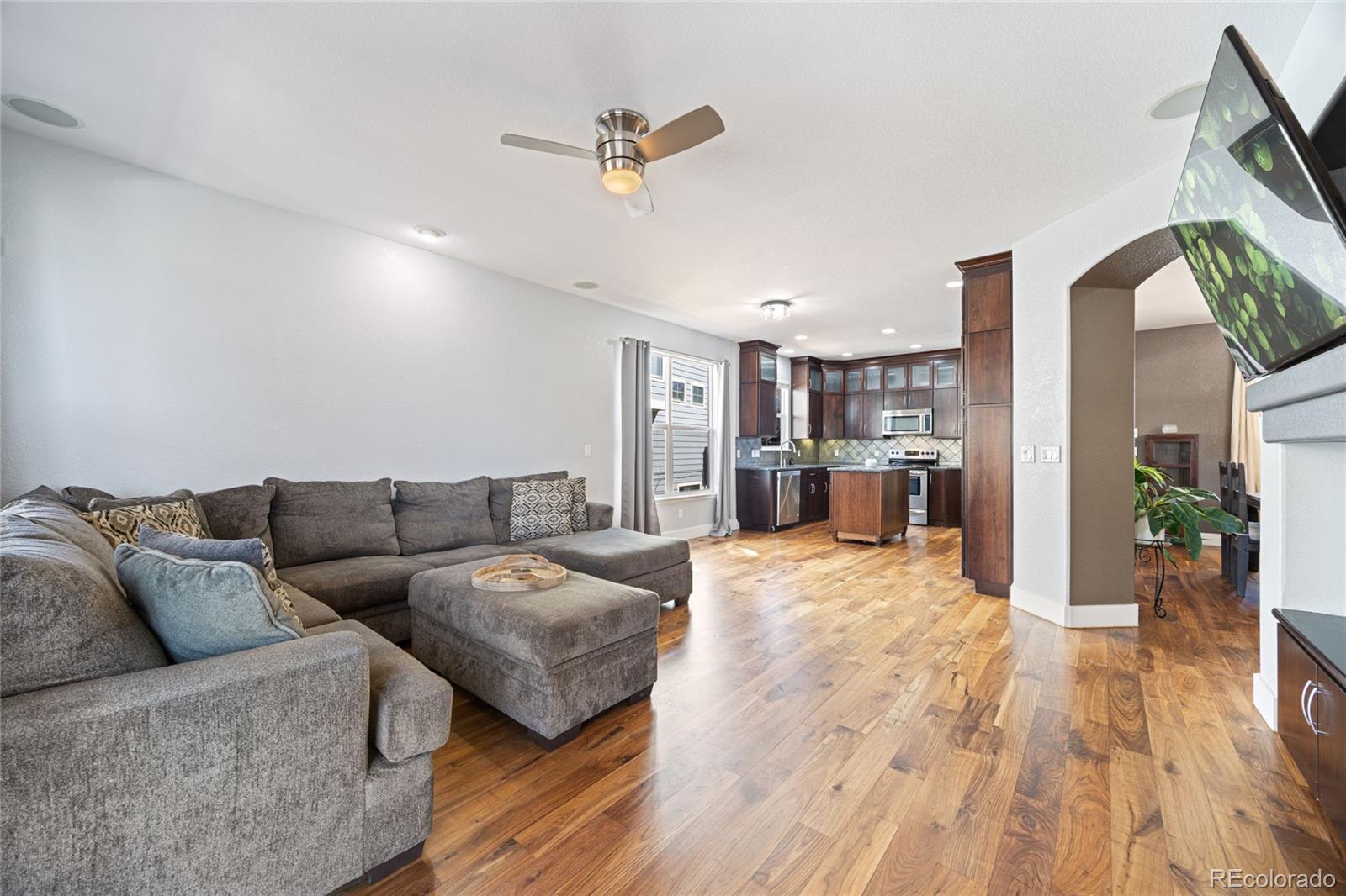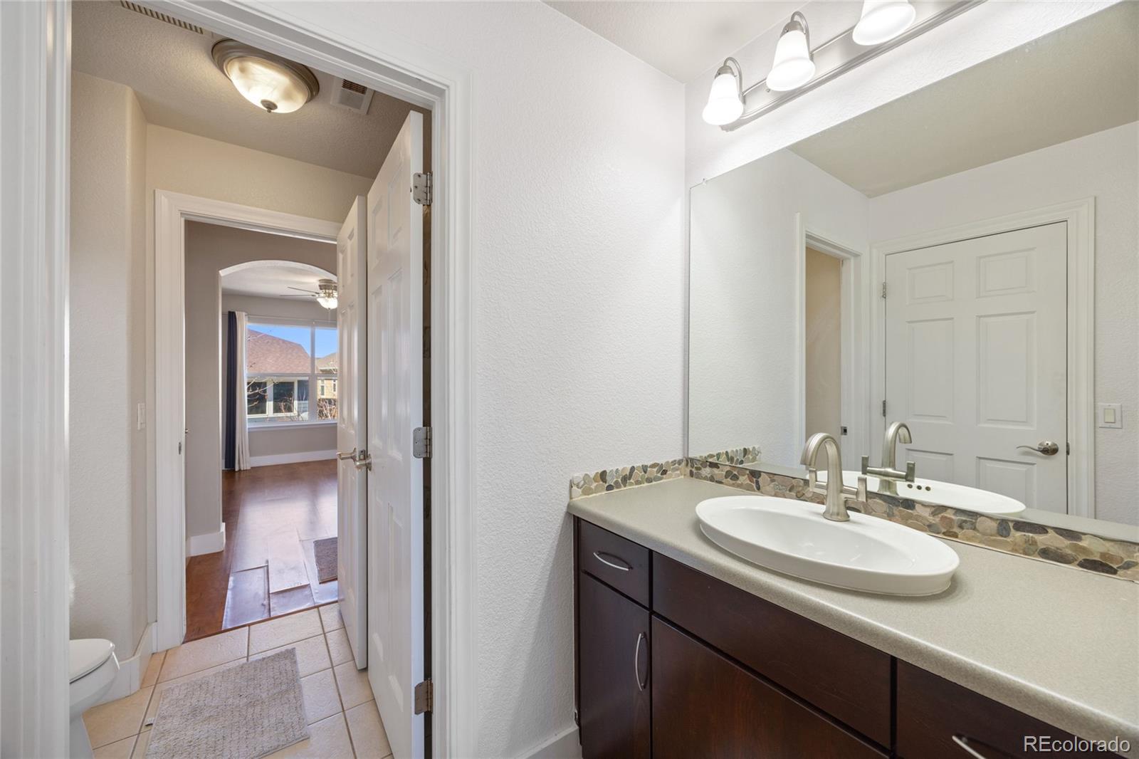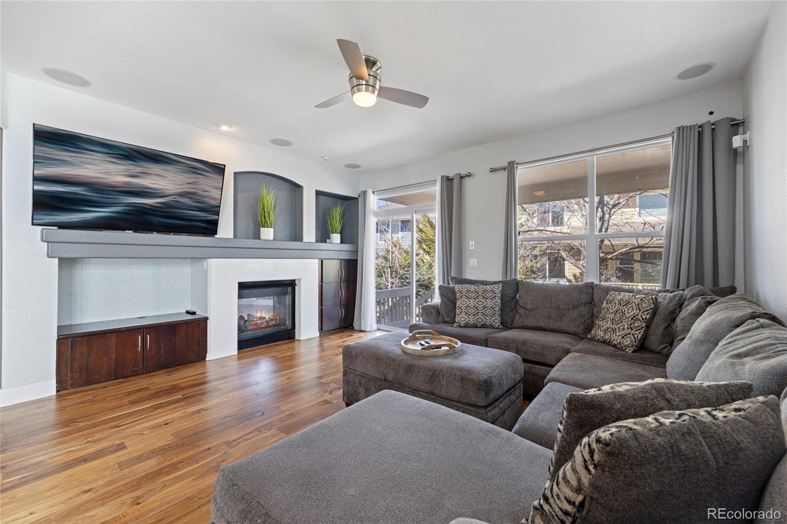 THIS AMAZING PROPERTY IS ELIGIBLE FOR A FREE ONE-YEAR 1% INTEREST RATE BUY-DOWN FOR BUYERS WHO QUALIFY AND FINANCE THROUGH A PREFERRED LENDER... Welcome to this exquisite former model home in the highly sought-after Watercolor community! Situated in The Meadows at Castle Rock, this gorgeous 5-bedroom, 5-bath home offers luxury living with unparalleled features. As one of only five model homes in the neighborhood, it’s a rare opportunity to own a standout property that’s both stylish and functional. Upon entering, you're greeted by soaring ceilings in the living room, where natural light pours in, highlighting the home’s bright, open floor plan. A double-sided fireplace adds warmth and charm, creating a seamless flow between the living room and family room. The main level is adorned with stunning hickory flooring throughout, enhancing the home's inviting atmosphere. The chef’s kitchen boasts rich cherry cabinets, stainless steel appliances, and ample counter space, perfect for preparing meals or entertaining. A main-floor study/den features built-in cabinetry, offering a quiet workspace. Step outside to the covered deck off the family room, which is ideal for relaxing or enjoying the peaceful surroundings. The spacious primary suite serves as a tranquil retreat, featuring an updated bath and a generous walk-in closet. Also upstairs, a guest bedroom with an ensuite bath ensures privacy, while two additional bedrooms share a well-appointed connecting bath. The professionally finished basement is an entertainer's dream, complete with a wet bar, theater area, gaming space, guest bedroom, and full bath. This home is perfectly located with easy access to The Grange clubhouse, community pool, parks, trails, and a variety of shops and restaurants. Commuters will appreciate the quick access to I-25 and Highway 85, along with top-rated schools nearby. Don’t miss out on this incredible opportunity... Schedule your showing today before this gem is gone!