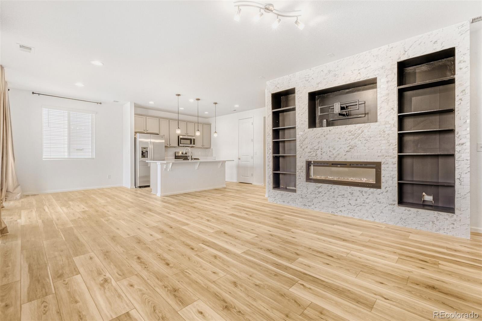 From the moment you step inside, the bright living room sets the tone with a stunning modern brick hearth fireplace framed by built-in shelving — an effortlessly stylish focal point for any space. The open layout flows naturally into the kitchen and dining area, anchored by an island with bar seating that's ideal for entertaining. A main-floor bedroom adds convenient flexibility, while the oversized 3-car garage provides exceptional storage capacity for all your needs. Upstairs, the primary suite is a true retreat, featuring an ensuite bath with dual sinks, a walk-in shower, and a generous walk-in closet. Two additional bedrooms round out the upper level, and a fully fenced yard with a concrete patio offers a private outdoor escape. Located just minutes from The Local Table and Luchals for dining, and with First & Main Town Center nearby for shopping and entertainment, this home puts some of Colorado Springs' best amenities right at your doorstep. Click the Virtual Tour link to view the 3D walkthrough. Discounted rate options and no lender fee future refinancing may be available for qualified buyers of this home.