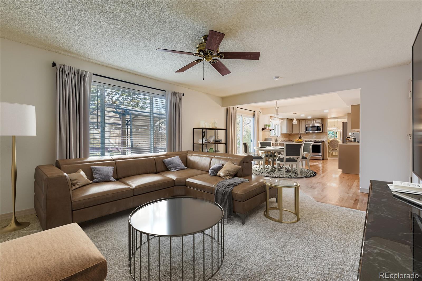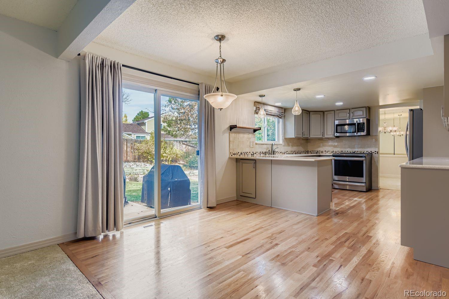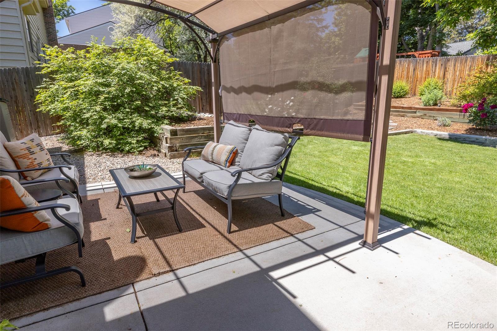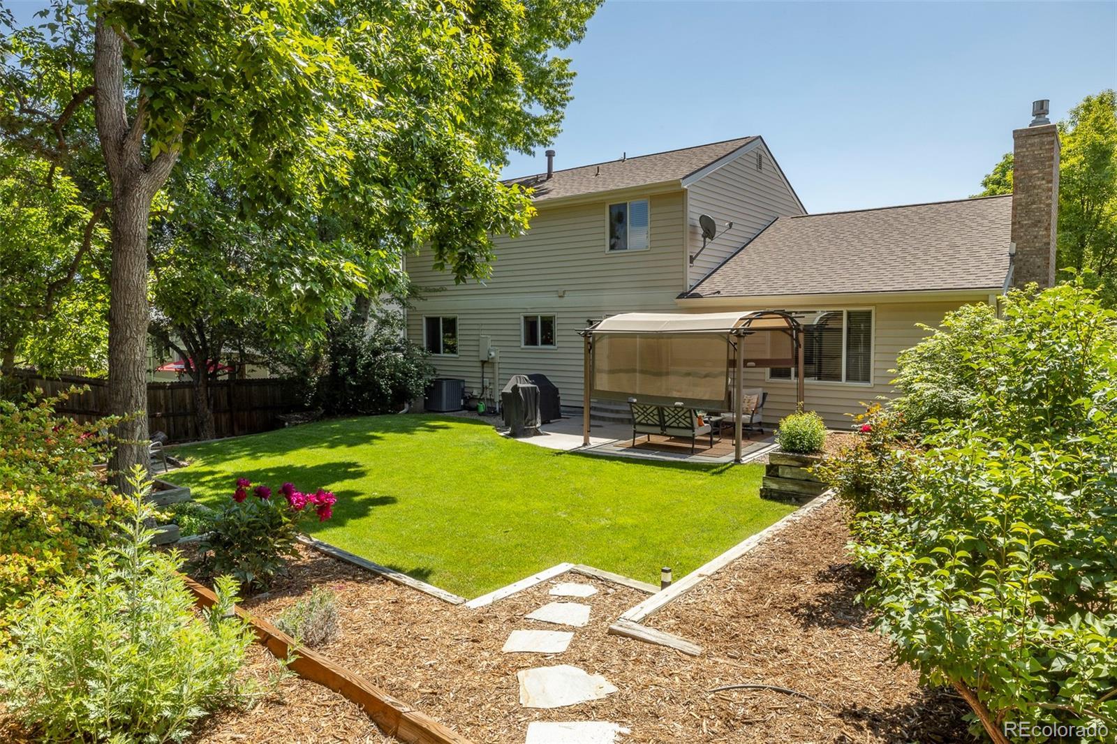 One of those homes you walk into and immediately notice the pride of ownership. Every space has been thoughtfully updated and beautifully maintained, making this property truly move-in ready. The updated kitchen features sleek quartz countertops, stainless steel appliances including an induction cooktop, and a sunny eat-in area, while the separate dining room is perfect for gatherings. A spacious living room offers plenty of natural light, and the cozy family room with a fireplace is ideal for relaxing evenings at home. Upstairs, you’ll find updated bathrooms, including a large primary suite with a private ¾ bath and walk-in closet. Comfort comes easy with newer windows, a whole house fan, a newer HVAC system and water heater for peace of mind. Gutter guard screens also keep debris and leaves from causing clogs. The large unfinished basement has been thoughtfully used by the current owners as a quilting and craft room, offering plenty of space and flexibility for hobbies, storage, or future finishing.Tucked away on a quiet cul-de-sac in The Highlands, one of Centennial’s most desirable neighborhoods, this home is just steps from a greenbelt and walking trail, close to shopping and restaurants, and part of the highly rated Littleton School District. The beautifully landscaped front and backyard offer plenty of outdoor enjoyment, and with no HOA, you’ll enjoy flexibility and freedom. This home is the perfect blend of updates, location, and care — ready for its next owner! Wooden storage shelves in basement, workbench in garage, two outdoor storage cabinets, ring doorbell, patio pergola all included.