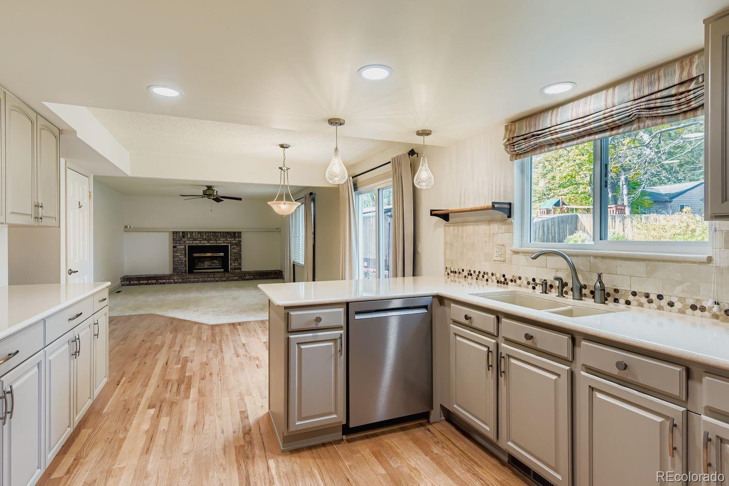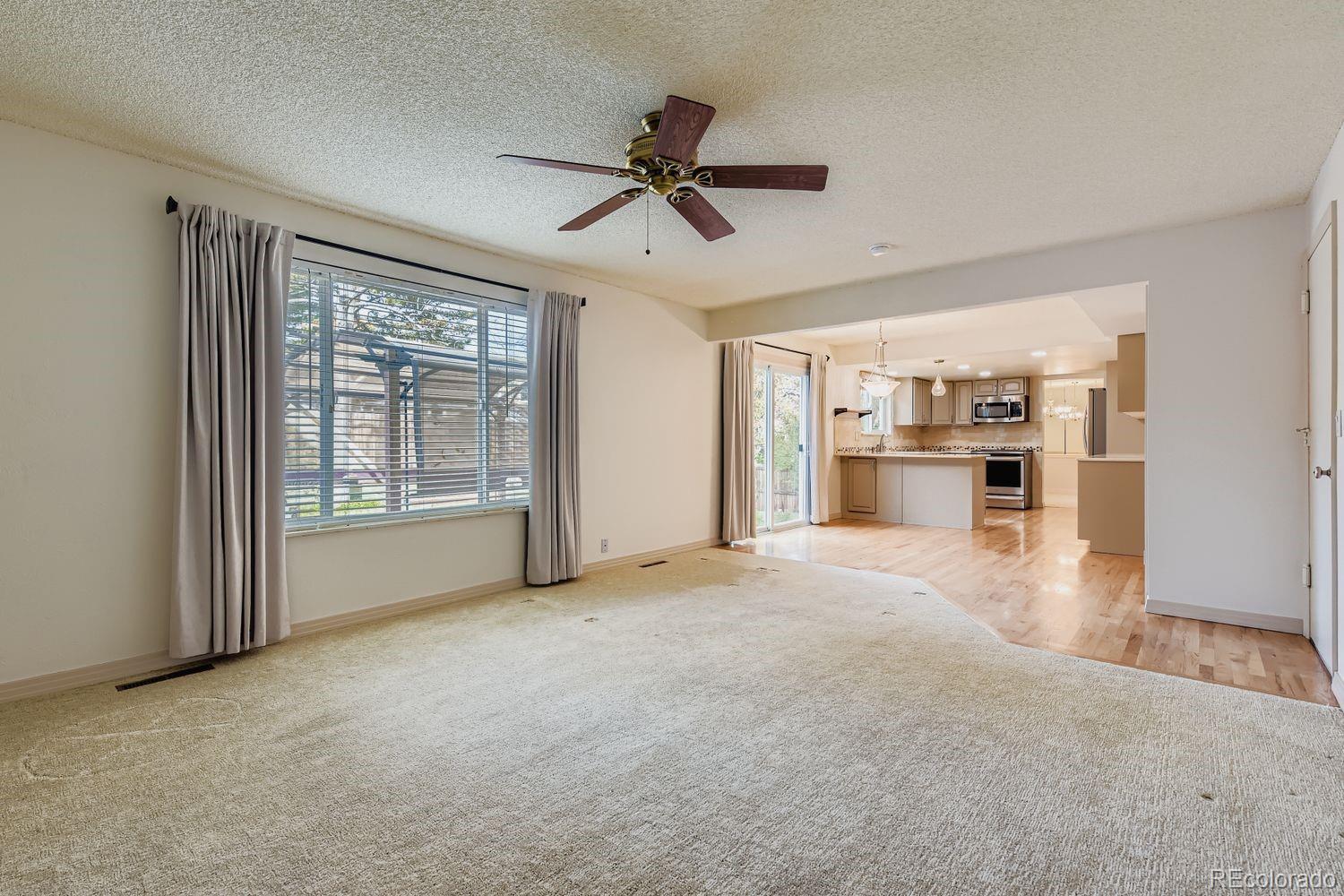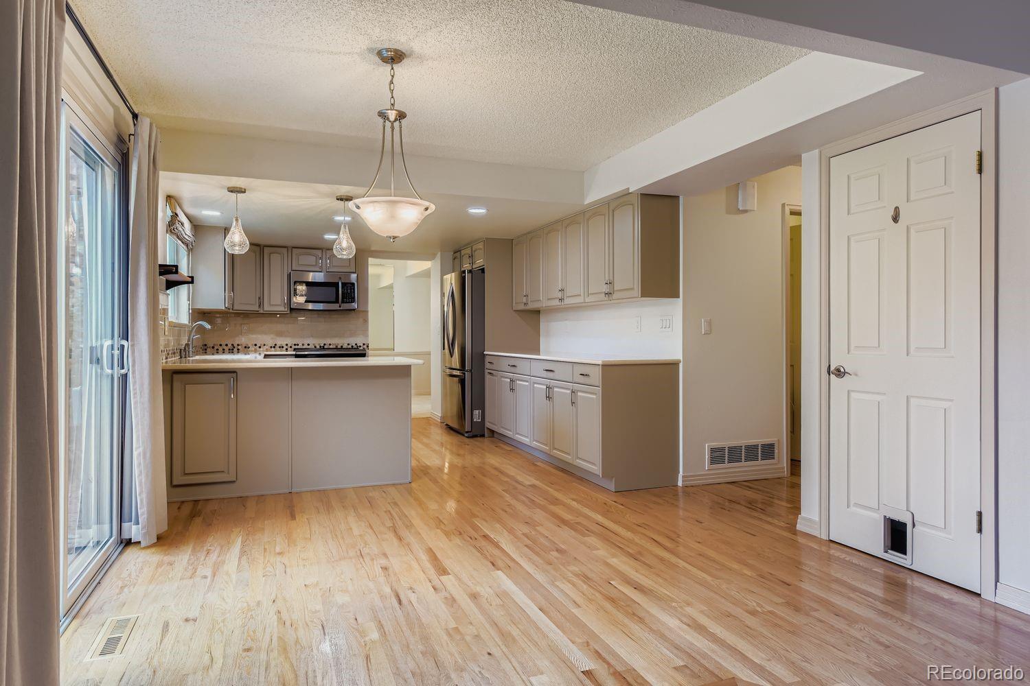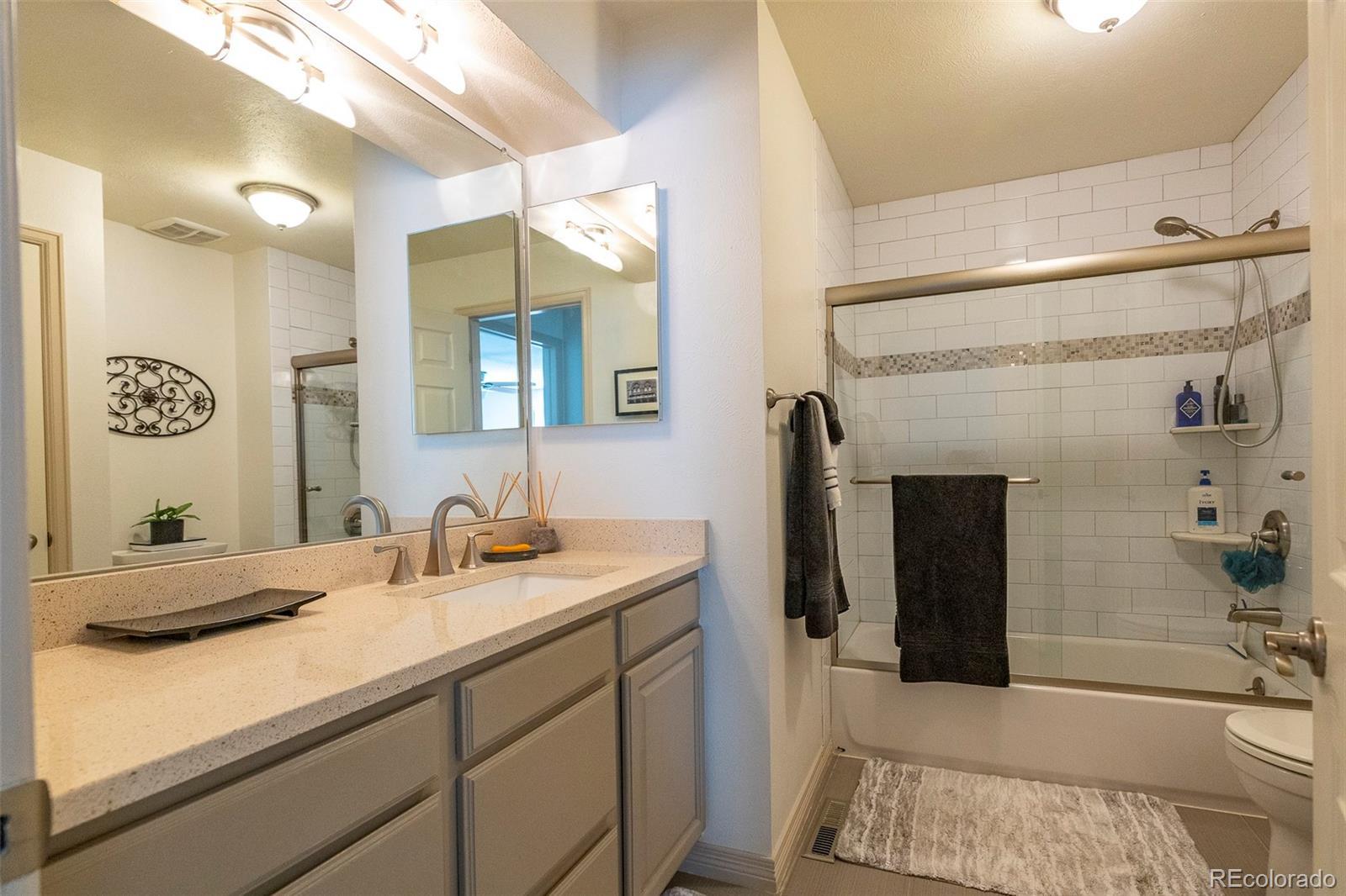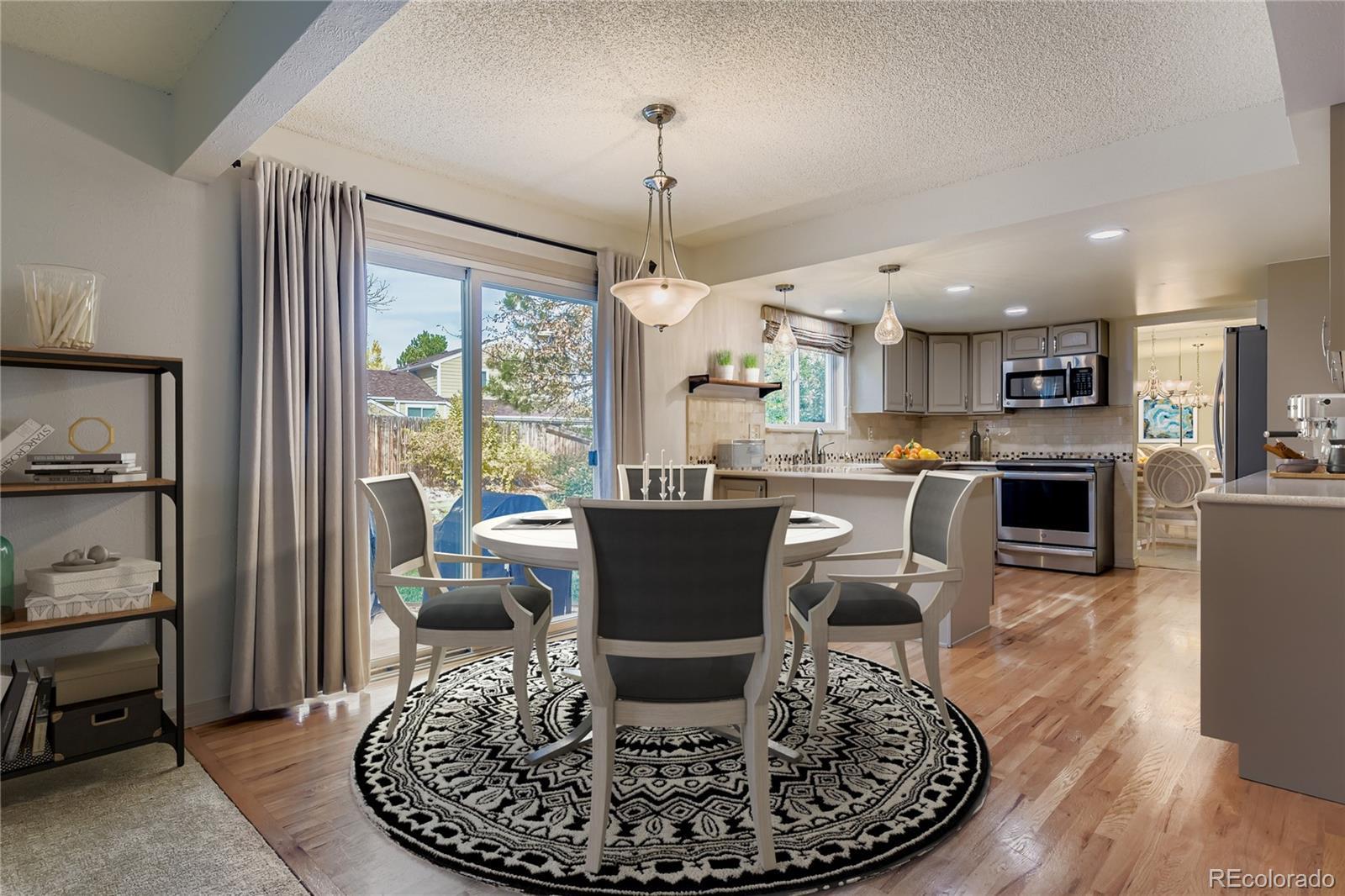One of those homes you walk into and immediately notice the pride of ownership. Every space has been thoughtfully updated and beautifully maintained, making this property truly move-in ready. The updated kitchen features sleek quartz countertops, stainless steel appliances including an induction cooktop, and a sunny eat-in area, while the separate dining room is perfect for gatherings. A spacious living room offers plenty of natural light, and the cozy family room with a fireplace is ideal for relaxing evenings at home. Upstairs, you’ll find updated bathrooms, including a large primary suite with a private ¾ bath and walk-in closet. Comfort comes easy with newer windows, a whole house fan, a newer HVAC system and water heater for peace of mind. Gutter guard screens also keep debris and leaves from causing clogs. The large unfinished basement has been thoughtfully used by the current owners as a quilting and craft room, offering plenty of space and flexibility for hobbies, storage, or future finishing.Tucked away on a quiet cul-de-sac in The Highlands, one of Centennial’s most desirable neighborhoods, this home is just steps from a greenbelt and walking trail, close to shopping and restaurants, and part of the highly rated Littleton School District. The beautifully landscaped front and backyard offer plenty of outdoor enjoyment, and with no HOA, you’ll enjoy flexibility and freedom. This home is the perfect blend of updates, location, and care — ready for its next owner! Wooden storage shelves in basement, workbench in garage, two outdoor storage cabinets, ring doorbell, patio pergola all included.