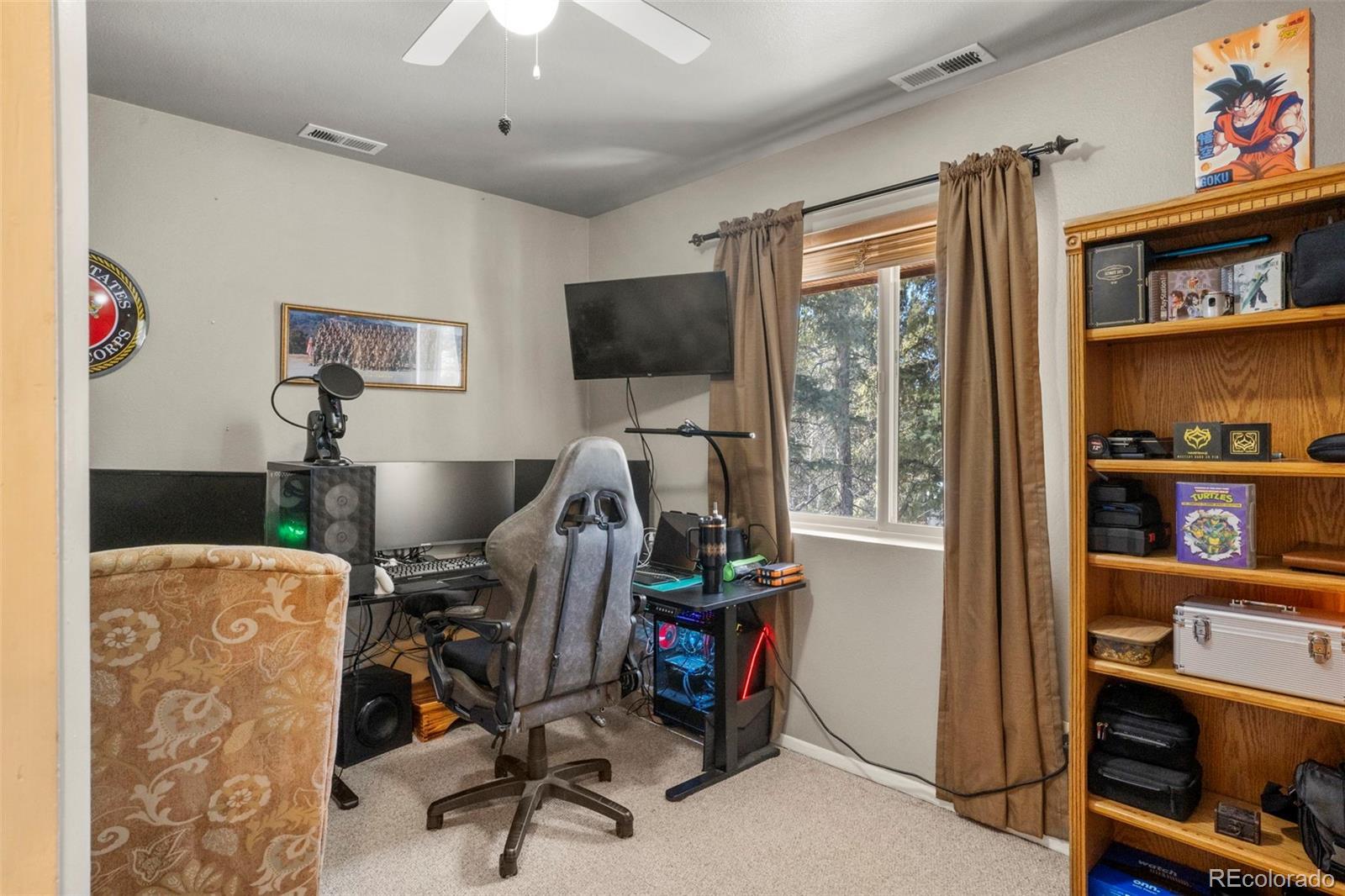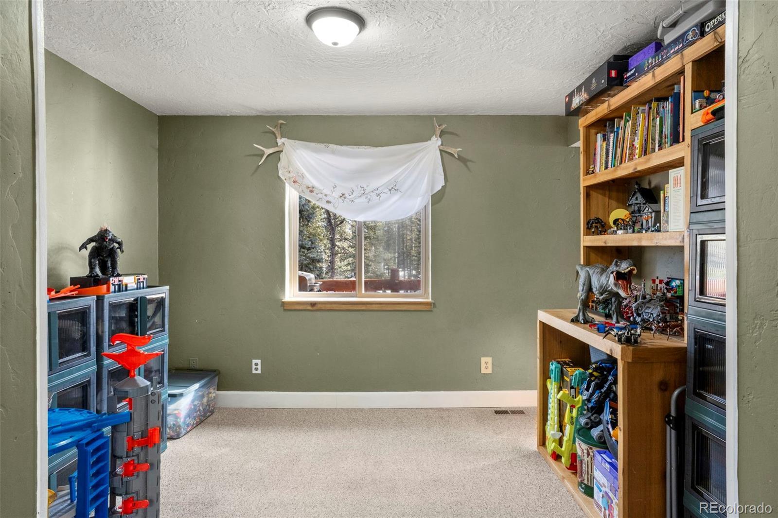 Welcome to this beautiful mountain home, set on 1.37 acres in the highly sought-after Spring Valley community. Surrounded by trees and frequent wildlife, the setting feels peaceful and connected to nature while still being part of an established neighborhood. As you arrive, you’ll appreciate the flat driveway, a rare and valuable feature in the mountains that makes access easy year-round. The property offers an oversized two-car garage, plenty of parking for all your toys, a fenced backyard, and two storage sheds, providing ample space for vehicles, equipment, and mountain gear. A covered front porch offers a welcoming entry, while the back deck overlooks a treed setting that changes beautifully with the seasons. Inside, the home feels warm and functional. The main level includes a half bath and a true bonus room just off the dining area, offering a defined space ideal for an office, creative room, or flex space. The kitchen features generous counter space and newer appliances, making it both practical and inviting. Upstairs, you’ll find bedroom-level laundry and four spacious bedrooms, including a primary suite with an attached bath and generous storage, along with an additional full bathroom. We wrap up the tour with the walkout basement, which features abundant natural light and is fully above ground. This level includes a large bedroom, a bathroom rough-in, and extensive unfinished space, offering excellent potential for additional living space, recreation areas, or a private secondary setup. As part of the Spring Valley community, the property offers access to private fishing lakes, a clubhouse, and community amenities, adding to the appeal of this mountain setting. This home combines classic Colorado character, usable land, and a flexible floor plan, offering a mountain lifestyle that feels both practical and full of possibility.