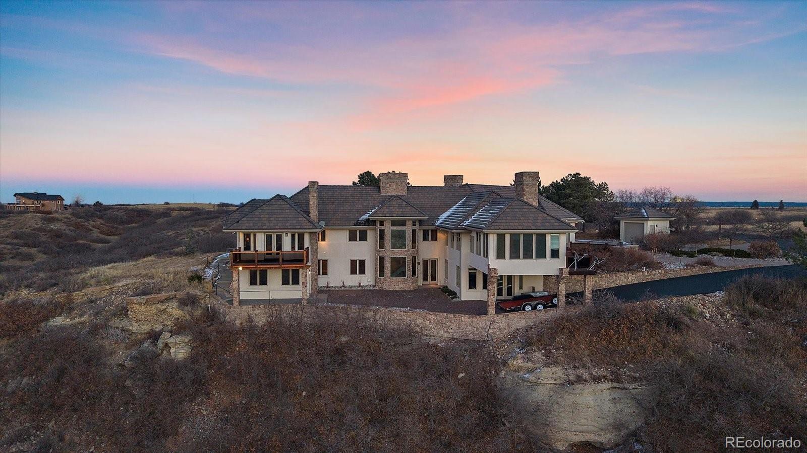 The 35 acre executive estate is surrounded by stunning expansive views of the Rocky Mountains from Pike's Peak to Long's Peak and Mt Evans. It sits adjacent to Rueter-Hess Reservoir which provides water storage to Parker, Castle Rock, Lone Tree and Castle Pines. When full, the water's edge almost reaches the property line. The original Castle Park Ranch homestead sits on the estate grounds and is easily observed from the home. The homestead was built in 1910 from local stone. Easily accessed from Parker or Castle Rock, this gated community provides a private and secure environment within which to enjoy the reservoir and the serenity it provides. This ranch style home is tastefully laid out and beautifully appointed. The main level offers a stunning kitchen with Bosch and GE appliances and granite counters. The kitchen opens to a great room with soaring vaults, built-in cabinetry, and a fireplace. A sunroom provides commanding views of the full Rocky Mountain range, Rueter-Hess Reservoir and the homestead. The main floor includes an expansive primary suite, an office, laundry room, and an eat-in nook. Step out to the Brazilian Paulupe deck, recently updated for splendid views. The lower level offers 3 additional bedrooms, 2 bathrooms (one with a steam shower), a rec room and an unfinished storage area complete with gun safe and treadmill. The owners installed a geothermal heating system which provides cost effective heating in the winter; propane provides back-up and powers the appliances. HughsNet Satellite provides internet. Water rights to the upper and lower Dawson will transfer with the property. Don't miss the opportunity to own this exquisite property! This lovely gated community provides rare access to close-in large acreage; A hidden gem! Qualified Buyers only. Proof of funds letter required. Call Listing Agent with any questions. https://iframe.videodelivery.net/63e0542202e9476a1ea08835fa7d525e