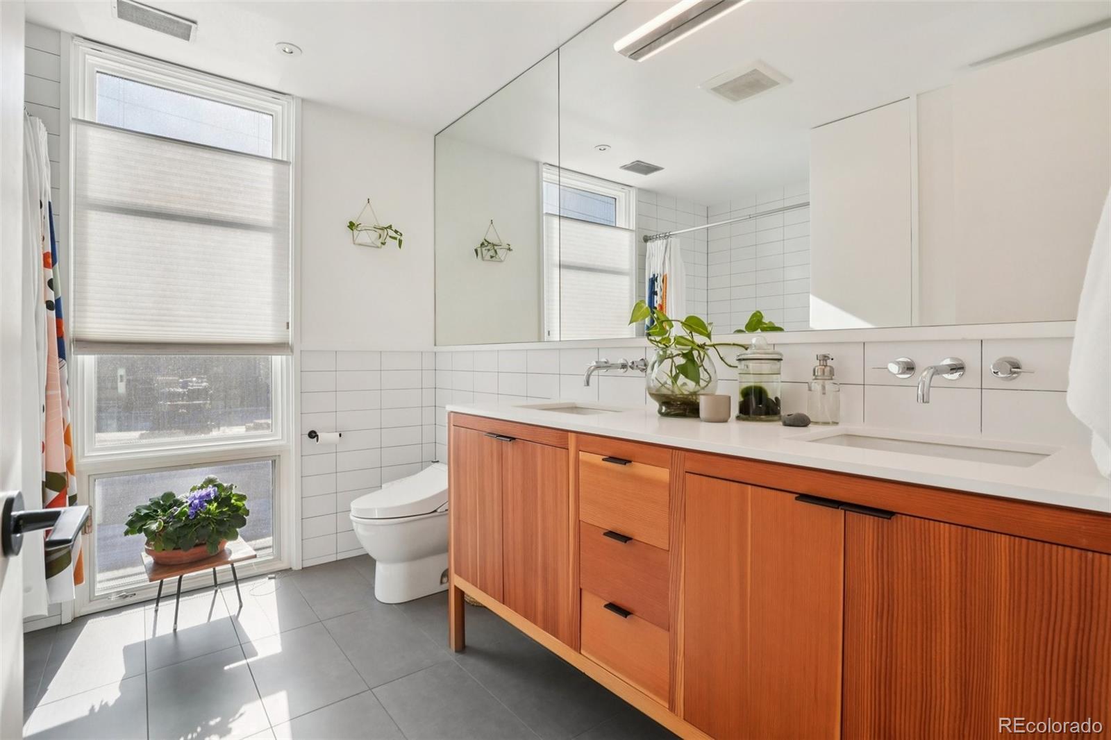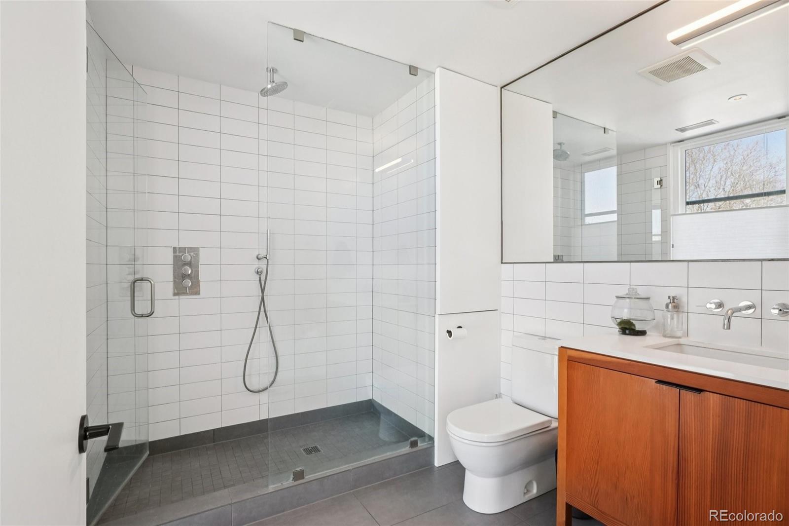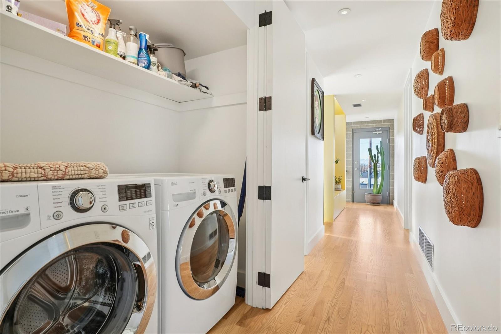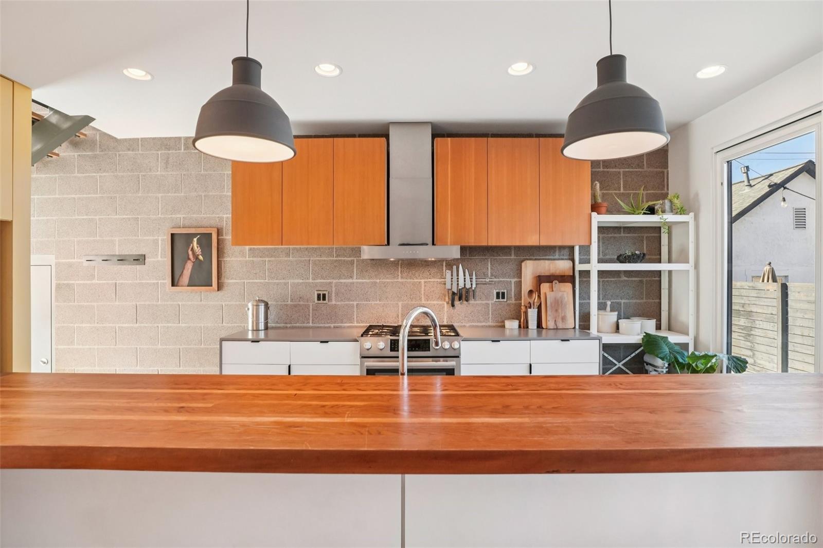 Designed by acclaimed architects Tabula Studio, this two-story Baker showstopper seamlessly blends historic roots with striking modern architecture. Originally built on its 1895 foundation, the home was completely reimagined in 2016 with the addition of a second story and a full contemporary remodel, resulting in a one-of-a-kind residence that feels as much like an art gallery as it does a home. Enter from the north side into a calm, light-filled main level where smooth finished walls and thoughtful spatial design create a quiet retreat—despite being in the heart of one of Denver’s most vibrant urban neighborhoods. The main floor hosts all primary living spaces, including the living room, dining area, kitchen, entry, and powder bath. Exposed brick in the kitchen nods to the home’s historic past, while abundant natural light and passive solar design (polycarbonate wall system) —most notably along the single stringer staircase which anchors the modern aesthetic. Solid ash hardwood floors run throughout, complemented by custom poplar trim and a striking built-in entertainment center. The gourmet kitchen is a true centerpiece, showcasing a Douglas fir butcher-block island with vintage diner stools (included), caesarstone countertops, and high-end designer appliances. Upstairs, you’ll find a serene primary suite, two additional bedrooms, a stylish main bath, and laundry. Custom Douglas fir vanities, quartz countertops, and upgraded fixtures reflect the home’s meticulous attention to detail. With over 2,108 square feet, a private xeriscaped yard, and an unbeatable Baker location just steps from light rail, coffee shops, restaurants, bars, parks, and shopping, this is a rare lifestyle home for buyers seeking inspired design, craftsmanship, and urban energy—all in one exceptional property.The property is zoned I-MX-5 (Industrial Mixed-Use), a highly flexible designation. Low maintenance exterior of brick and corten steel.