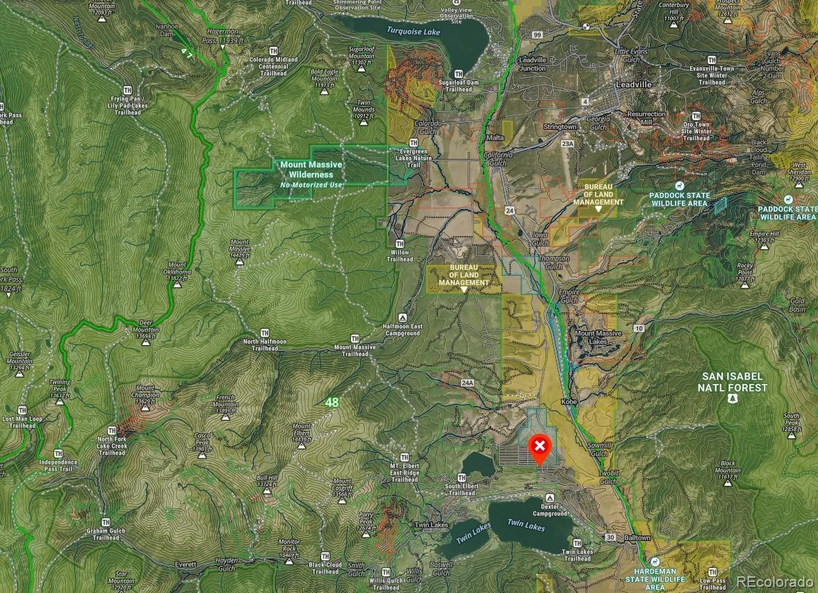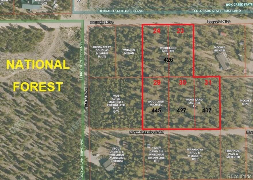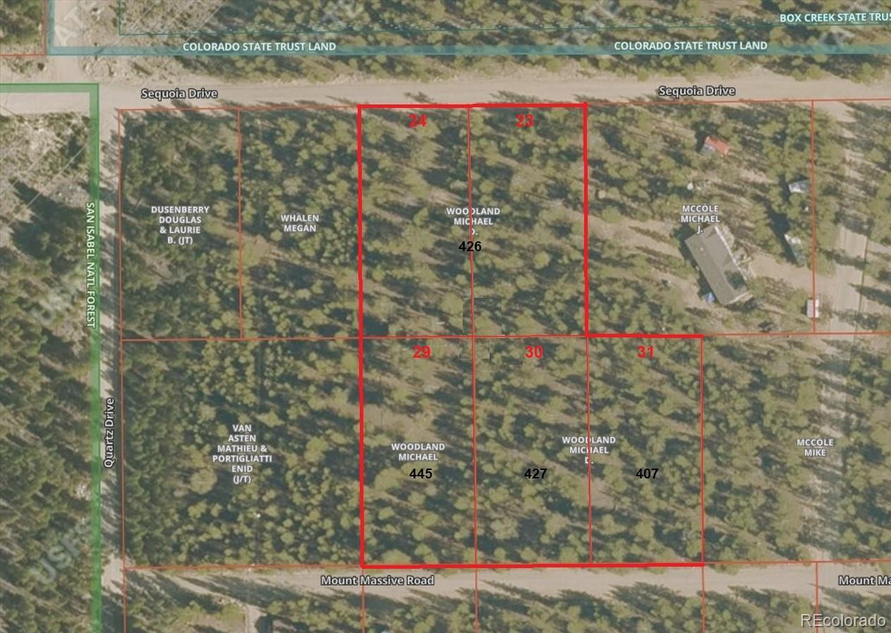 RARE OPPORTUNITY to own 2.32 ACRES of PRIME, LEVEL, WOODED LAND with BREATHTAKING MOUNTAIN VIEWS, in the desirable Pan Ark Estates neighborhood! This rare offering includes 5 ADJOINING LOTS, providing exceptional views, privacy, and a true connection to nature. Situated higher than many surrounding properties, the land captures sweeping mountain views in one of Colorado’s most picturesque settings. The lots span from Mt. Massive Dr. (3 lots- Approx.. .46 acres each) to Sequoia Dr. (2 lots- Approx. .47 acres each), offering EASY ACCESS, FLEXIBILITY, and PRIVACY. You can build on one or more lots, sell other parcels, or retain the additional lots for enhanced privacy. WILDLIFE is abundant, with frequent sightings of elk, deer, and bighorn sheep. OUTDOOR RECREATION is right at your doorstep- enjoy hiking, climbing, skiing, fishing, boating, paddling, camping, off-roading, rafting, and more. Twin Lakes and the Mt Elbert Forebay are nearby, with Clear Creek Reservoir and Turquoise Lake minutes away. The San Isabel Nat. Forest is right down the street. Mt Elbert (Colorado’s highest peak) and Mt Massive are close by, offering unforgettable hiking experiences. Skiing is easily accessible with Ski Cooper and Copper Mtn approx 30 to 45 min away. CONVENIENTLY LOCATED near historic Twin Lakes, just 20 min from Leadville, 30 min from Buena Vista, 44 miles from Aspen via seasonal Independence Pass, and about 2-hours from Denver. This slice of paradise has NO HOA and is easy to access all year with maintained roads and seasonal plowing by the metro district, https://www.panarkestatesmd.org/. The property INCLUDES one PAID WATER CERTIFICATE (a $17,500 value). See MEWA (Mt. Elbert Water Assn.)- https://www.mountelbertwater.org/ for other fees and information. Buyers to verify lots, utilities, building, and all other information that is important to Buyers. Don’t miss this exceptional opportunity to own a piece of COLORADO’S MOUNTAIN PARADISE!