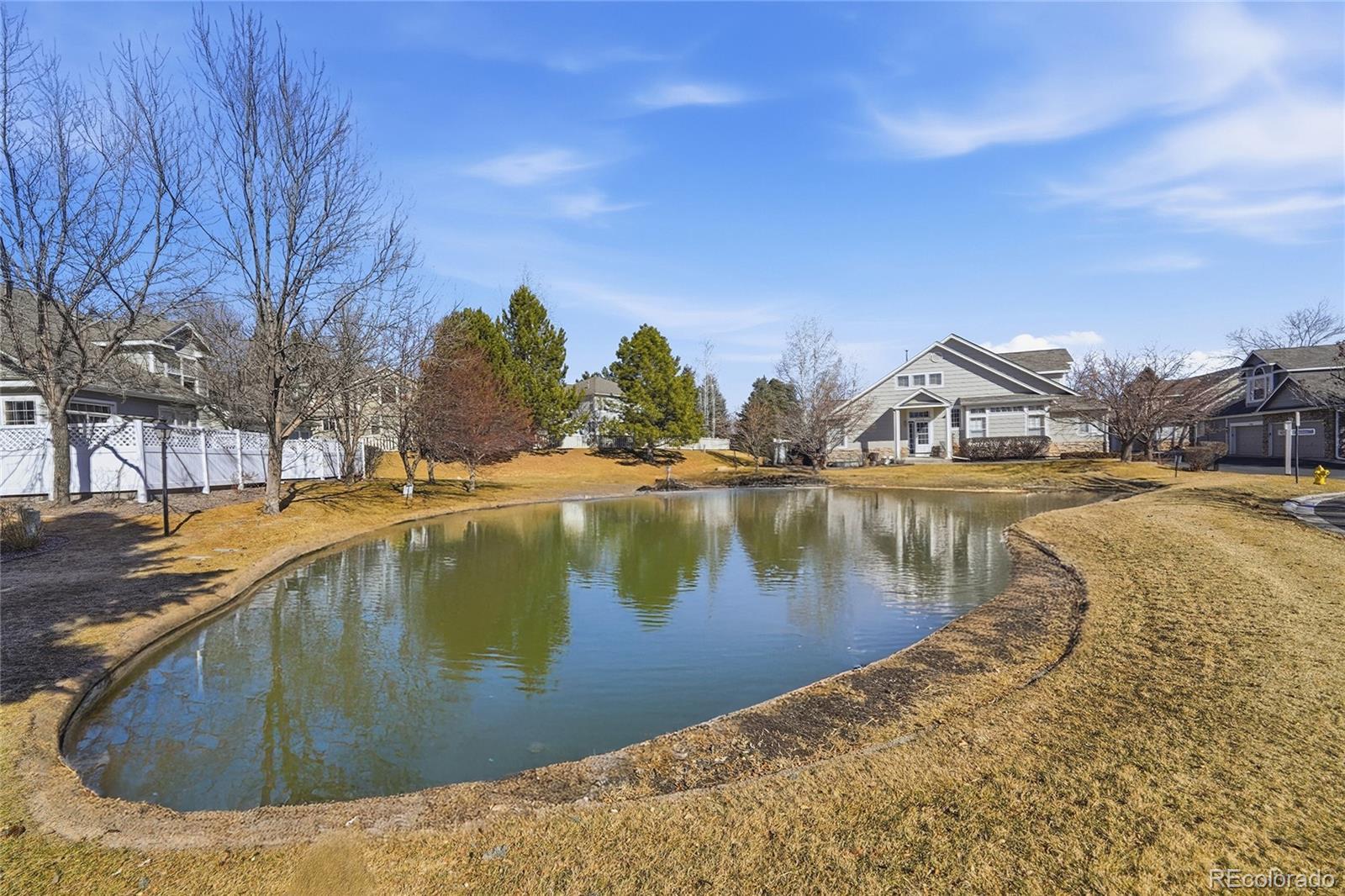 *OPEN HOUSE Sunday 2/15 11-2* Tucked into a serene, private corner of Wyndham Park, this bright and airy paired home offers easy, low-maintenance living with a fresh, updated interior and a peaceful pond just beyond your front door! Soaring vaulted ceilings, new luxury vinyl plank flooring, and new carpet create a clean, updated feel throughout the home. The light-filled living room centers around a cozy gas fireplace and opens to the private patio through sliding doors, perfect for morning coffee, happy hour, or relaxed evenings under the trees. The vaulted dining area with updated lighting flows seamlessly into the kitchen, where stainless steel appliances, warm wood cabinetry, a central island, and a generous pantry make everyday cooking and casual entertaining feel fun and easy. A main-floor bedroom and nearby full bath offer a private space for loved ones or working from home, while the finished laundry room keeps daily routines simple. Upstairs, the sprawling primary suite offers oversized windows, an incredible walk-in closet, and a five-piece bath featuring a soaking tub and spacious walk-in shower. A private primary den offers space for an upstairs living area, sunny office, or creative studio! The unfinished basement is ready for your vision, whether you’re dreaming of a home gym, space to entertain, or future guest suite. Outside, mature trees, a retractable awning, green lawn space, and a canal leading to a small pond create a peaceful setting for dining al fresco or laid-back summer evenings. Walkable to Wyndham and Meadowlake Parks, Hyatt Park, and Das Meyer Fine Pastry Chalet, and under 20 minutes from Golden and Denver, this is the kind of home that makes everyday living feel connected, comfortable, and full of possibility.