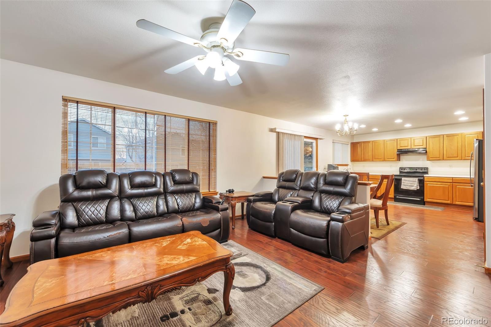 Welcome to this charming 5-bedroom, 3-bath home with 3 car attached Garage nestled in the desirable Saddle Rock Ridge neighborhood in Cherry Creek School District. This cozy home offers a functional layout featuring a comfortable living room and a kitchen with an eat-in dining area that opens seamlessly to the main living space — perfect for everyday living or casual entertaining. A rare main floor bedroom/study featuring ¾ bathroom with shower. Outdoor enthusiasts will love endless trails, parks, offering tons of opportunities for recreation and family fun. This home presents a great opportunity to create your own style in a well-established neighborhood close to schools, parks, and community amenities. You're also just minutes from Southlands Shopping Center, Saddle Rock Golf Course, Aurora Reservoir, and E-470 tollway.