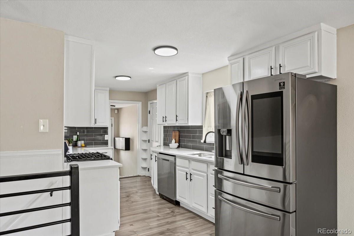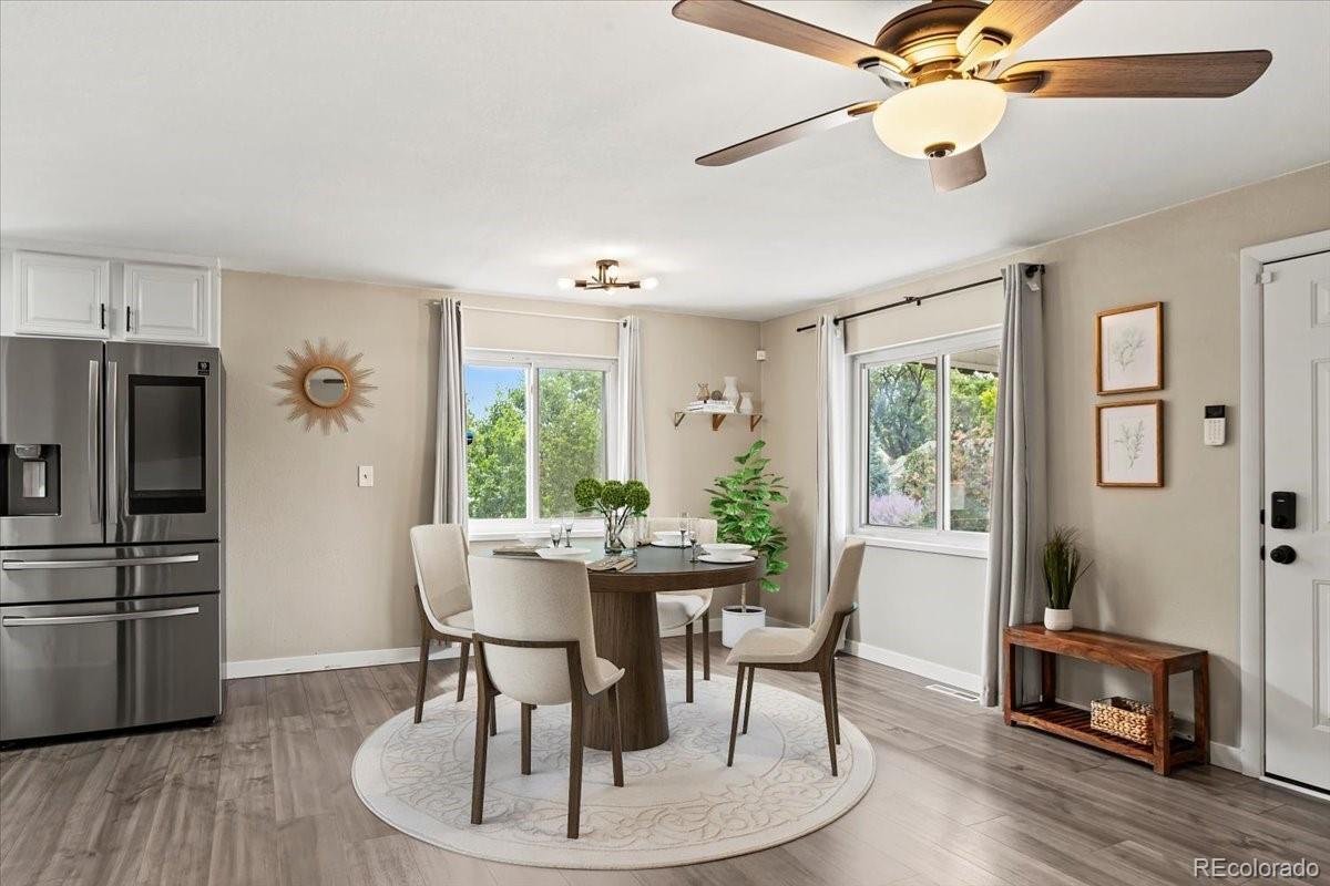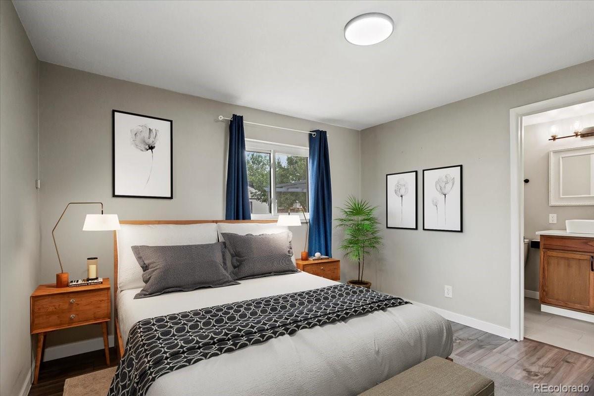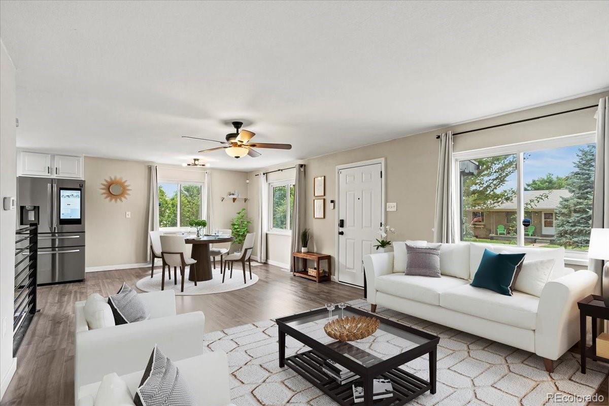 >>PRICED TO SELL + MOVE-IN READY!<< Updated Englewood bungalow with newer roof, modern kitchen, updated baths, and flexible bonus space for bedroom, office, den, or additional living space. This home offers peace of mind with a new water heater and expansion tank (2025), new entry doors (2025), and a new roof (2023). The durable Hardie concrete siding provides long-lasting protection against rot, warping, and fire—built to last for decades. Inside, enjoy a bright and open-concept layout filled with natural light. The updated kitchen features quartz countertops, a modern tile backsplash, and stainless steel Samsung appliances, including a WiFi-enabled smart refrigerator - perfect for today’s lifestyle. All three bathrooms have been tastefully remodeled with new vanities and contemporary tile finishes. The converted garage offers a flexible, sun-filled space ideal for a home office, study, bedroom or bonus room. Situated on a spacious lot in the heart of Englewood, the property includes a detached two-car garage and charming mature apple trees. Located just minutes from light rail, Broadway/Belleview, South Platte Trails, and River Point shopping and dining, this home delivers both comfort and convenience. A rare opportunity to own a truly turn-key home at an exceptional value - schedule your showing today! DISCOUNTED RATE OPTIONS and NO LENDER FEE FUTURE REFINANCING may be available for qualified buyers. Ask the Listing Agent for details.