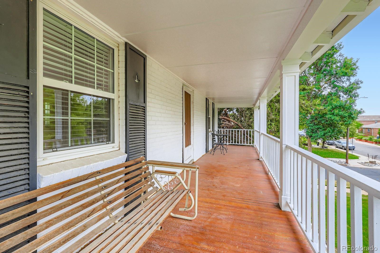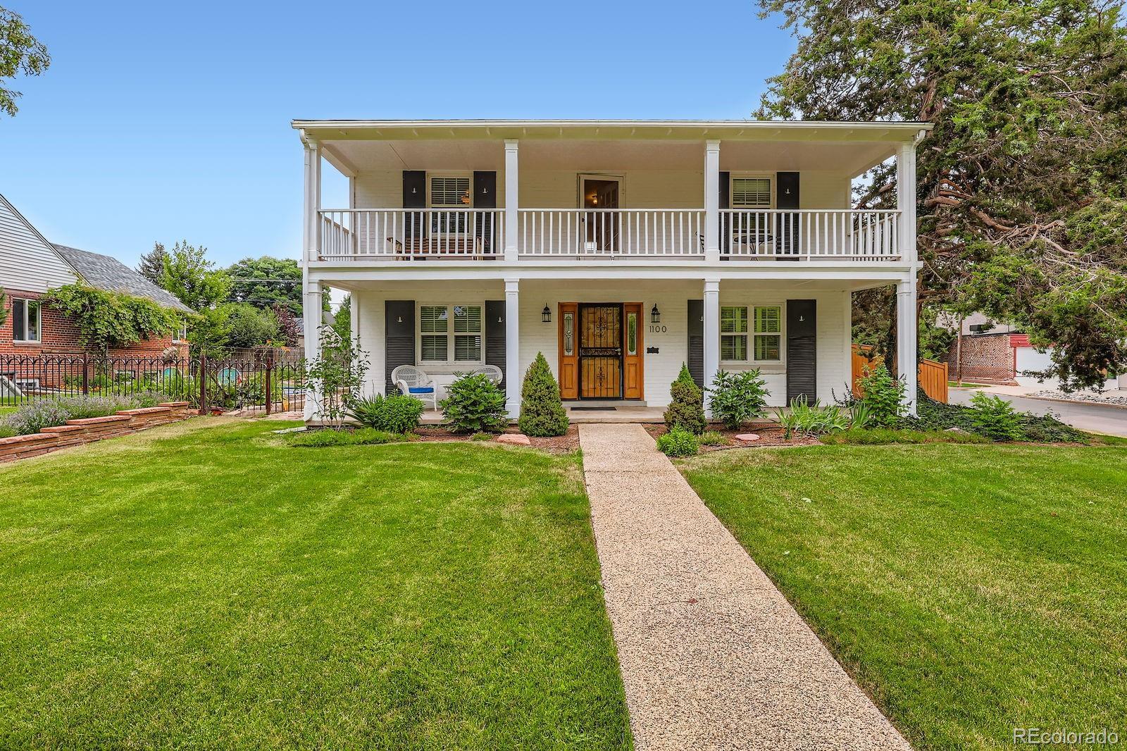 Welcome to this iconic 2-story farmhouse-style gem, perched high on a large corner lot in the lovely Mayfair neighborhood. With stunning curb appeal, this home features a wide covered front porch and a second-floor balcony—both perfect for enjoying the incredible views and tree-lined street. Step inside to find beautiful original hardwood floors and a dramatic staircase. The recently remodeled gourmet kitchen is a dream, complete with JennAir appliances, granite counters, pantry, a cozy eat-in nook, and an open flow to the spacious dining room with a unique curved bay window. The main floor also offers a large living room, powder room and a flex room—great as an office, guest room, or TV room. Upstairs, the charming primary bedroom includes two sizable closets and a quiet sitting nook. A 2nd bright bedroom, a fully renovated bathroom, and access to the huge covered balcony. The full basement has brand new paint and carpet, and adds even more living space with two additional bedrooms or office areas, a family room, 3/4 bath and plenty of storage. Step outside to a backyard built for entertaining, featuring a large patio & yard, with two sets of French doors leading out from the home. Other features include, newer windows with custom shutters, 2 car garage with additional secure off-street parking that can even accommodate a small RV! Just minutes from shops, restaurants, parks, 9+Co, Trader Joe's and an easy trip downtown—this home is truly one of a kind and is a Fantastic Value! ***Seller to Install brand new Central A/C prior to closing!***Elementary School now part of DPS Central East Enrollment Zone***