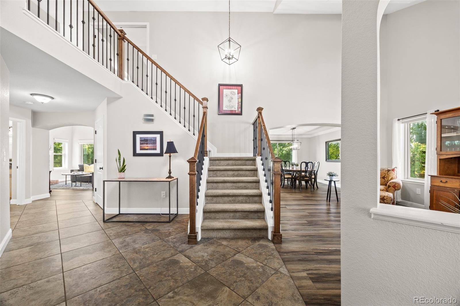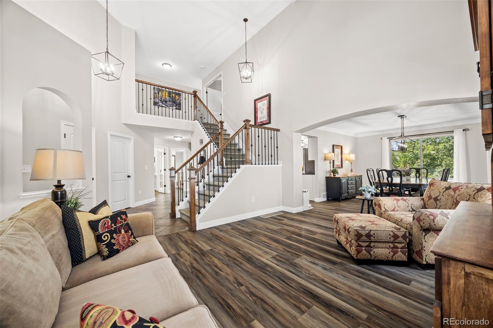Welcome to 9755 Spring Hill Street, an impeccably cared for and beautifully updated 6-bedroom, 5-bathroom home in the heart of Highlands Ranch. Recently refreshed, this home shines with natural light, an open-concept layout, and thoughtful updates throughout. The spacious kitchen with induction cooktop, granite counters, and modern finishes flows into the living room with high ceilings, ample windows bringing in natural light, and a cozy gas fireplace, while a main floor bedroom doubles as a private office. Upstairs, the primary suite is a true retreat with heated bathroom floors, rainfall shower, large walk-in closet with new Elfa custom built-ins and lighting, and beautiful mountain views. Three additional bedrooms complete the upstairs, including a Jack-and-Jill bath and a guest bedroom with private en-suite bath. The newly finished, sound-insulated basement (2025) adds a conforming bedroom, full bath, entertainment space wired for surround sound, plus a flex space for a gym, playroom, or second office. Enjoy Colorado evenings on the large deck overlooking a private yard. Updates include new windows (2025), fresh interior (2024) and exterior (2025) paint, and a finished, insulated 3-car garage with a 220V outlet perfect for projects. Ideally located within walking distance to all grade schools, a grocery store , Highlands Ranch recreation center, and the HRCA trail system, this home balances comfort, convenience, and community living.