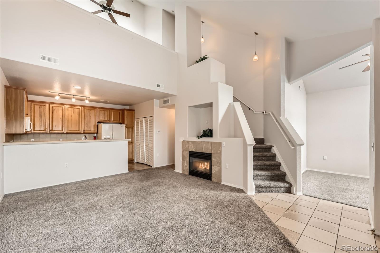 Wonderful 2 bedroom, 2 bathroom condo with 2 GARAGES, facing west with mountain views and great natural light! Must See! Move in ready! Located in The Colony at Cherry Creek in Aurora, this beautiful 2 story condo features vaulted ceilings and plenty of versatile space including a light filled den and vibrant loft. Natural light flows throughout the unit as you step in the cozy family room complete with a gas fireplace. Rest in tranquility as you step into the Primary Suite with a walk in closet. As you wonder upstairs, you will notice a versatile loft ready for your creative use. A secondary bedroom and full bathroom makes the upstairs it's own private area. This unit is located on the second level and is very quiet. Conveniently located in the highly rated Cherry Creek School District with quick access to Red Hawk Ridge Elementary School and minutes away from S Parker Road for easy access to 225 and E-470. Lots of shopping and restaurants nearby. Cherry Creek Valley Ecological Park, Dove Valley, Centennial Airport and Park Meadows Shopping Center are close by for your convenience and enjoyment!