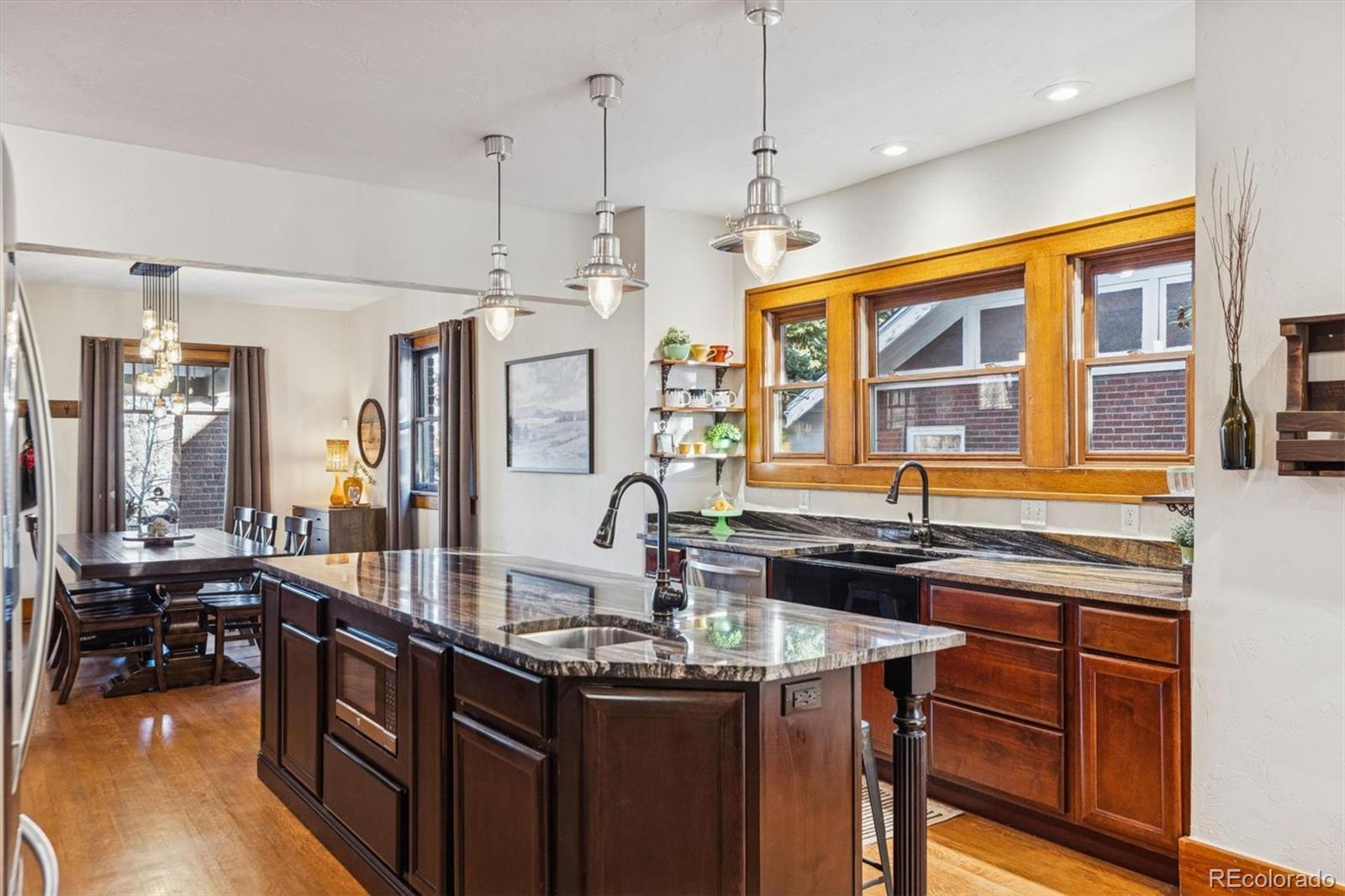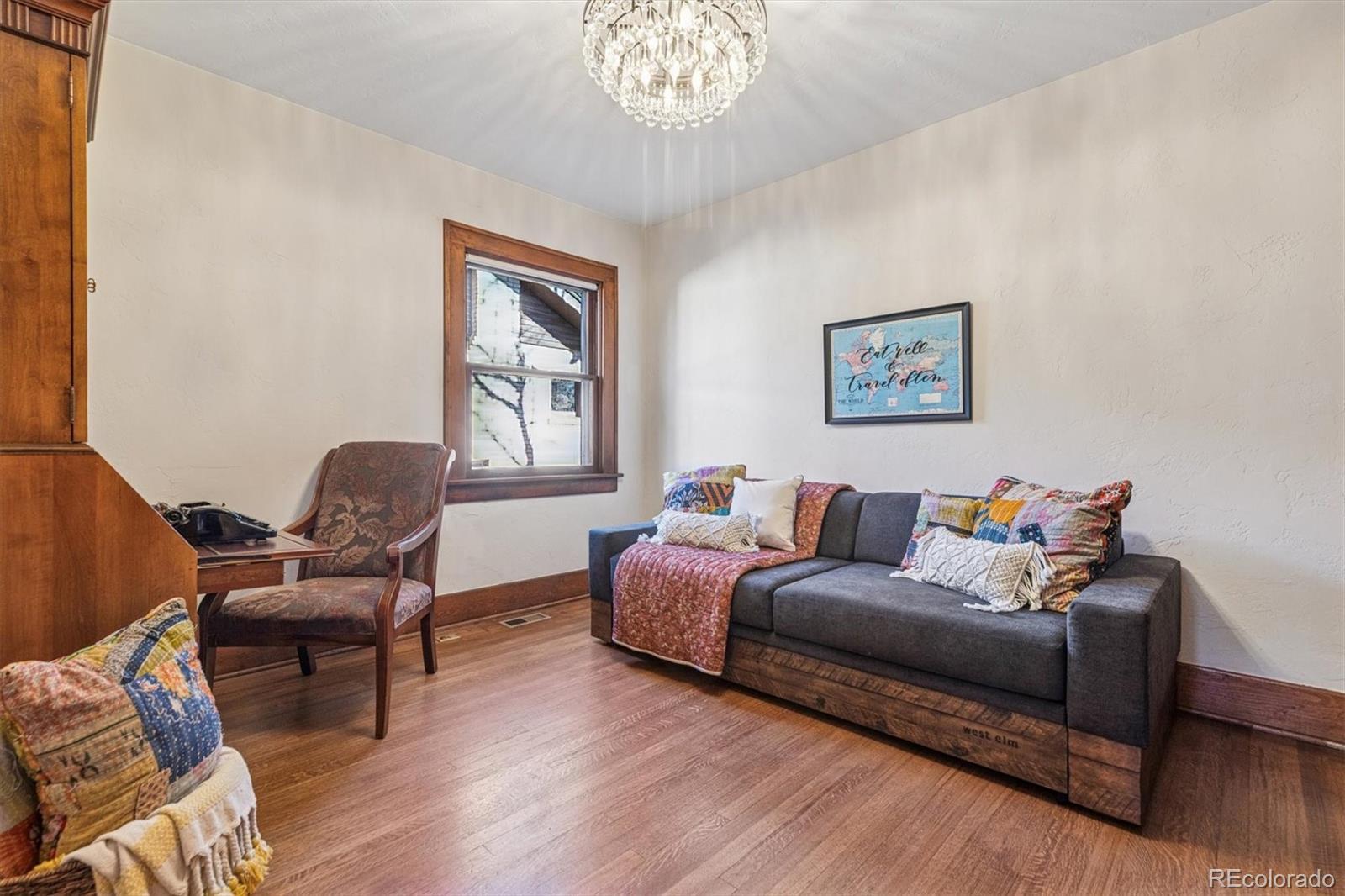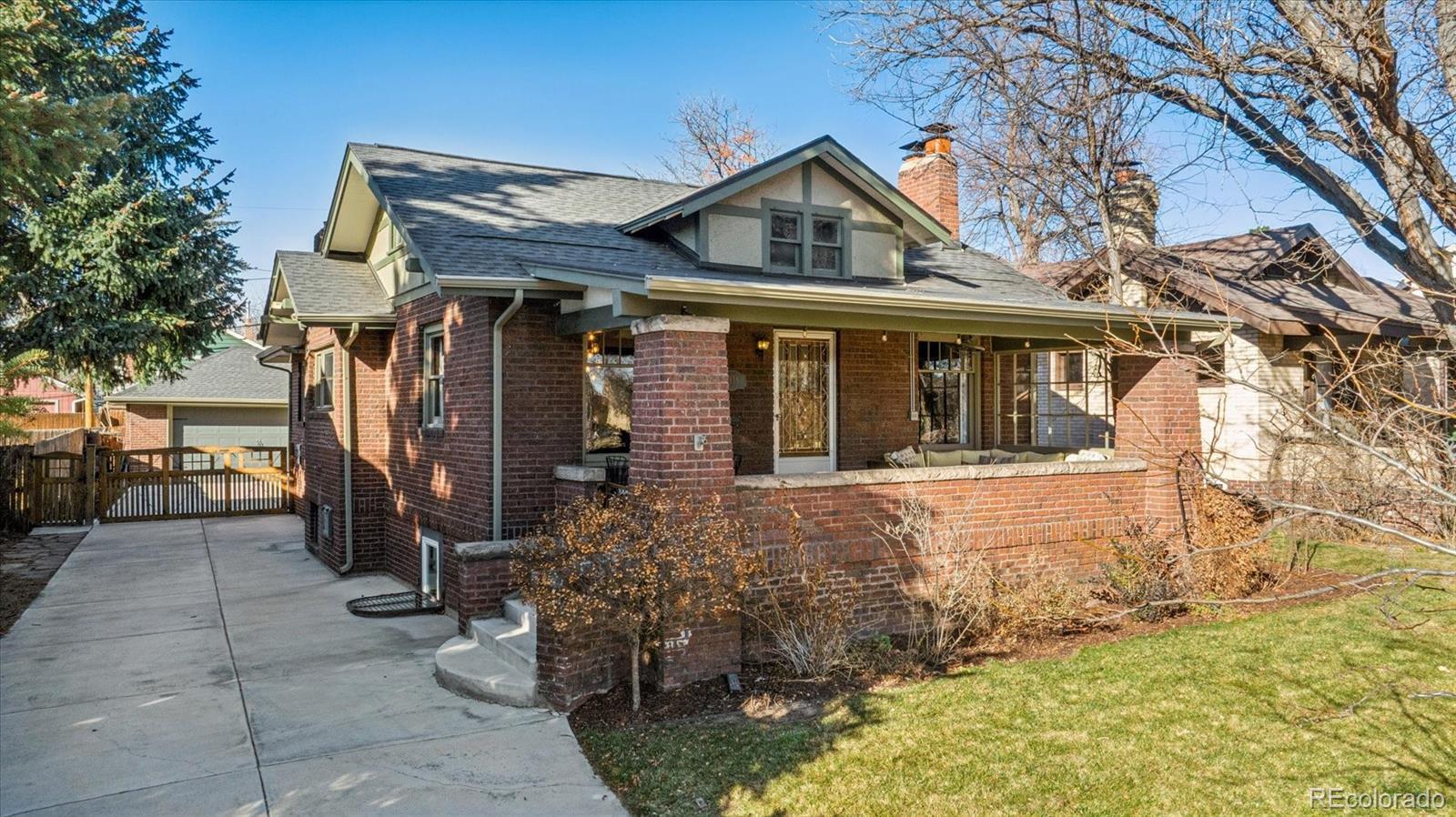 Park Placement has its Privileges! This quintessential Craftsman Bungalow is on McDonough Park, the jewel of the coveted Harkness Heights neighborhood. This thoroughly & thoughtfully remodeled 1922 home offers views of the expansive green space & the Downtown Denver skyline from the huge covered front porch with nearly $100k in recent improvements. Enjoy classic charm w/valuable upgrades & custom touches. Step right inside to the open-layout Great Room. It's the heart of the home, wrapped in honeyed, original woodwork & ideal for entertaining family & friends. Period built-ins flank the brick fireplace hearth. Vintage hardwood doors & millwork mirror the beauty of the wood floors. The kitchen masterfully marries form & function: Abundant cabinetry, slab counters, stainless appliances; 2 sinks & a pot filler! The rare primary suite retreat offers a huge private bath & a walk-in closet. The 2nd, non-conforming main floor bedroom makes up for a closet w/a custom library & a Pottery Barn chandelier for the perfect study. A 1/2 bath & picture-perfect custom pantry complete the main level. Downstairs, there’s plush new carpeting in 2 more big bedrooms w/egress windows & huge closets. There’s a full, tiled bath w/a double vanity; a family room w/another showpiece fireplace wrapped in custom Craftsman cabinetry; & an insane amount of storage. The sunny laundry room includes a handy utility sink. Outside, there's a new patio & a 2-car detached garage w/space for 2 more cars inside the gate. Have Peace of Mind w/New: HVAC; Hail-resistant roof; Rubberized/long-lasting exterior paint; Concrete flatwork; & Tuck-pointed brick. All this & a “Very Walkable” 72 Walkscore. Stroll across the park for food, coffee, a massage at the spa or a show at the Federal Theater. Enjoy all the nearby Highlands happenings or get Downtown quickly. The bells of St Catherine's Cathedral resound across one of 5280’s past Top of the Town Neighborhoods! Hurry to start telling YOUR story on Green Ct!