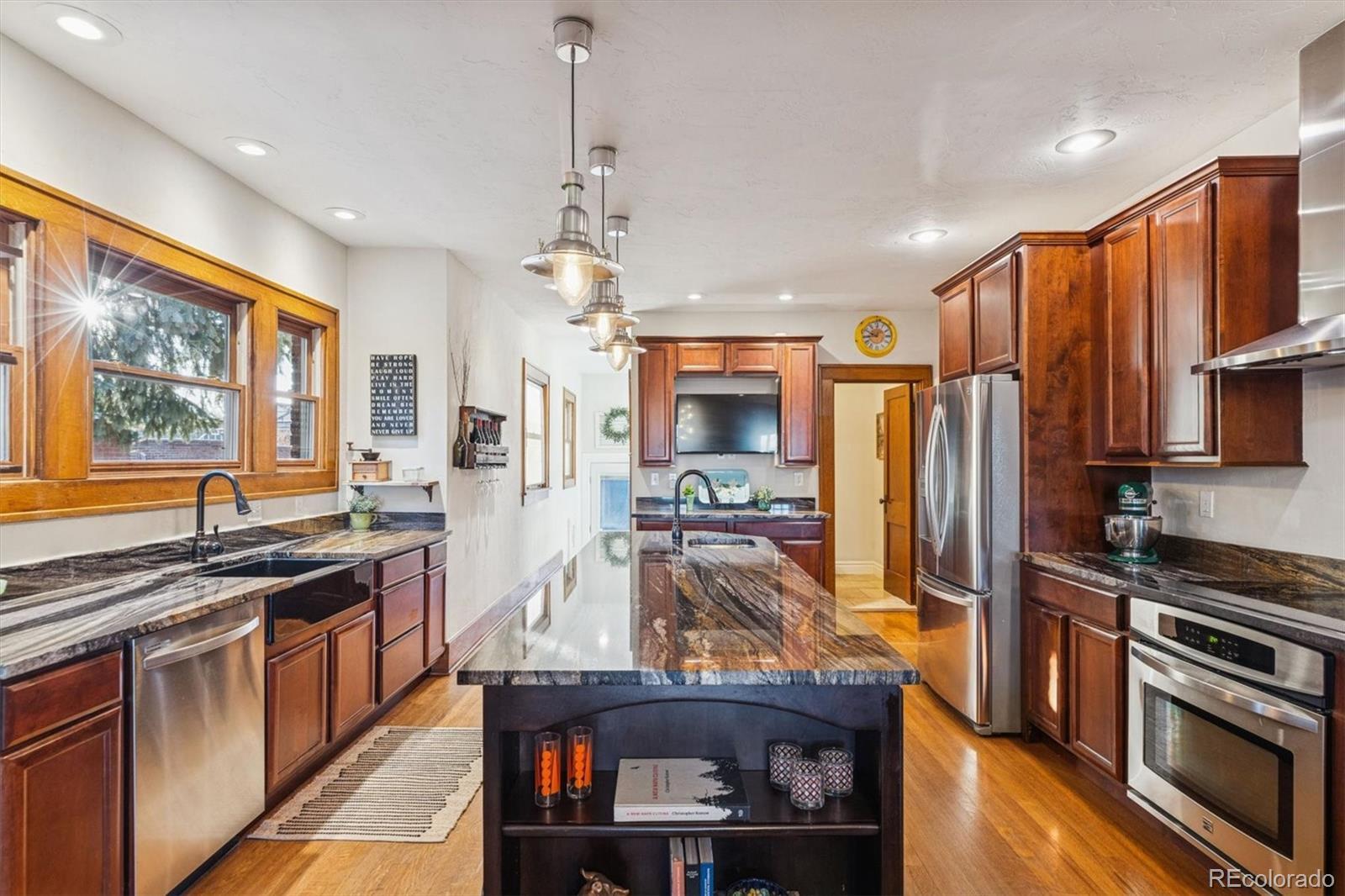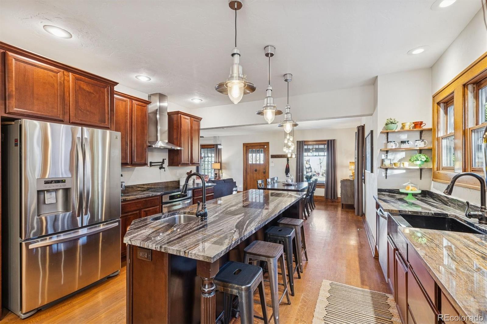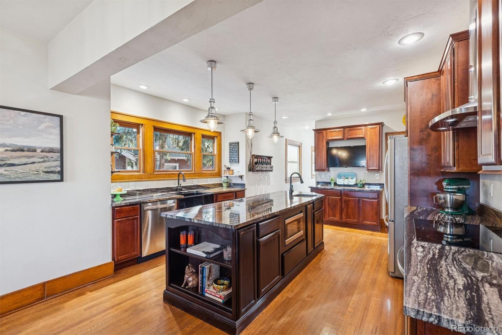 Park Placement has its Privileges! This quintessential Craftsman Bungalow is on McDonough Park, the jewel of the coveted Harkness Heights neighborhood. This thoroughly & thoughtfully remodeled 1922 home offers views of the expansive green space & the Downtown Denver skyline from the huge covered front porch with nearly $100k in recent improvements. Enjoy classic charm w/valuable upgrades & custom touches. Step right inside to the open-layout Great Room. It's the heart of the home, wrapped in honeyed, original woodwork & ideal for entertaining family & friends. Period built-ins flank the brick fireplace hearth. Vintage hardwood doors & millwork mirror the beauty of the wood floors. The kitchen masterfully marries form & function: Abundant cabinetry, slab counters, stainless appliances; 2 sinks & a pot filler! The rare primary suite retreat offers a huge private bath & a walk-in closet. The 2nd, non-conforming main floor bedroom makes up for a closet w/a custom library & a Pottery Barn chandelier for the perfect study. A 1/2 bath & picture-perfect custom pantry complete the main level. Downstairs, there’s plush new carpeting in 2 more big bedrooms w/egress windows & huge closets. There’s a full, tiled bath w/a double vanity; a family room w/another showpiece fireplace wrapped in custom Craftsman cabinetry; & an insane amount of storage. The sunny laundry room includes a handy utility sink. Outside, there's a new patio & a 2-car detached garage w/space for 2 more cars inside the gate. Have Peace of Mind w/New: HVAC; Hail-resistant roof; Rubberized/long-lasting exterior paint; Concrete flatwork; & Tuck-pointed brick. All this & a “Very Walkable” 72 Walkscore. Stroll across the park for food, coffee, a massage at the spa or a show at the Federal Theater. Enjoy all the nearby Highlands happenings or get Downtown quickly. The bells of St Catherine's Cathedral resound across one of 5280’s past Top of the Town Neighborhoods! Hurry to start telling YOUR story on Green Ct!
