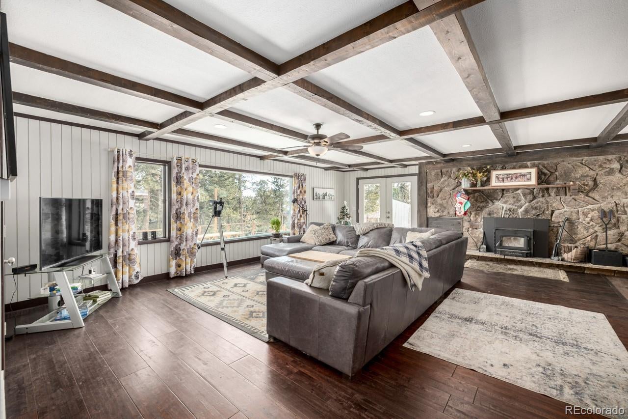 Huge Price Drop!!! A rare and extraordinary opportunity to own a breathtaking mountain equestrian retreat in Morrison, Colorado. Spanning approximately 28 pristine acres, this exceptional property offers a perfect blend of rustic charm, modern amenities, and endless possibilities for both personal enjoyment and investment potential. Notably, Doubleheader Mountain Peak is located exclusively on this property, offering unparalleled privacy and a truly one-of-a-kind setting.At the heart of the ranch is the main residence, a cozy yet spacious two-bedroom, one-bathroom home featuring an open-concept living area with tall ceilings, large windows that frame panoramic mountain and city views, and a tiered deck ideal for outdoor entertaining or peaceful mornings in nature. Adding to its unique appeal, six rustic cabins are thoughtfully positioned throughout the property, each boasting its own distinct layout. These charming one-bedroom, one-bathroom cabins feature warm, inviting living spaces with wood-burning fireplaces, private storage sheds, and scenic views, making them ideal for guest accommodations, rental properties, or a retreat-style getaway. For equestrian enthusiasts, Doubleheader Ranch offers top-tier facilities, including a state-of-the-art horse stable built in 2021. Designed with functionality and safety in mind, the stable includes 5 V-front stalls, ample interior storage with tack room, and covered exterior storage areas. Just outside, three expansive, fenced pastures including a round pen provide plenty of space for horses to roam freely, all while enjoying the fresh mountain air and natural beauty of the surrounding landscape. The ranch also features a community yurt, a tranquil gathering space perfect for events, retreats, or simply unwinding in a serene setting. Private hiking and riding trails wind throughout the property, offering endless opportunities to explore the stunning natural surroundings. https://vimeo.com/1049644900?share=copy