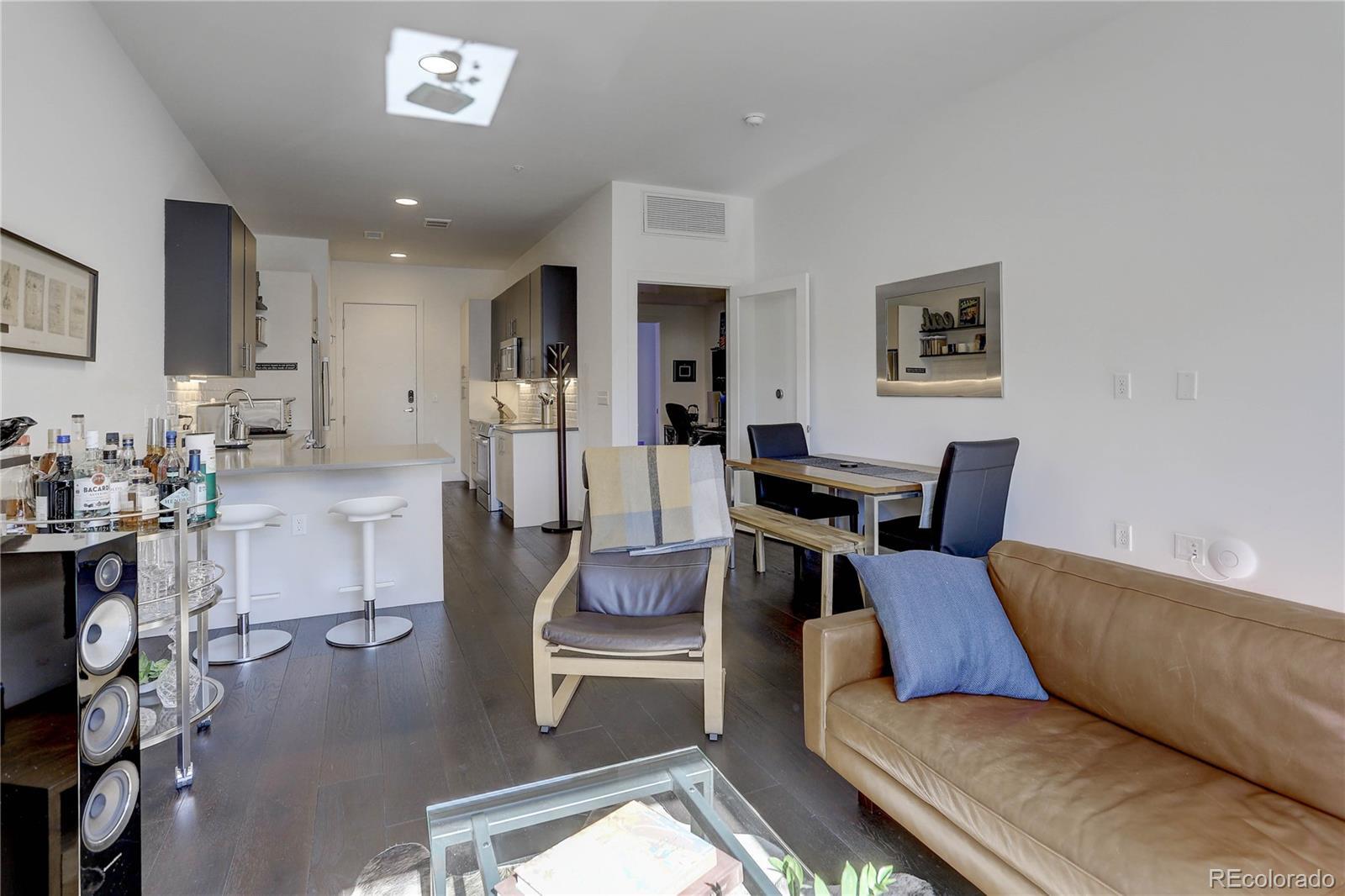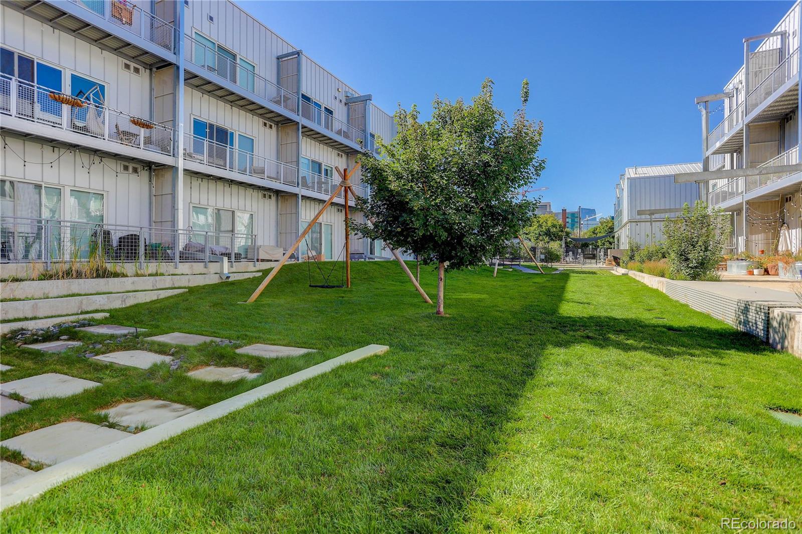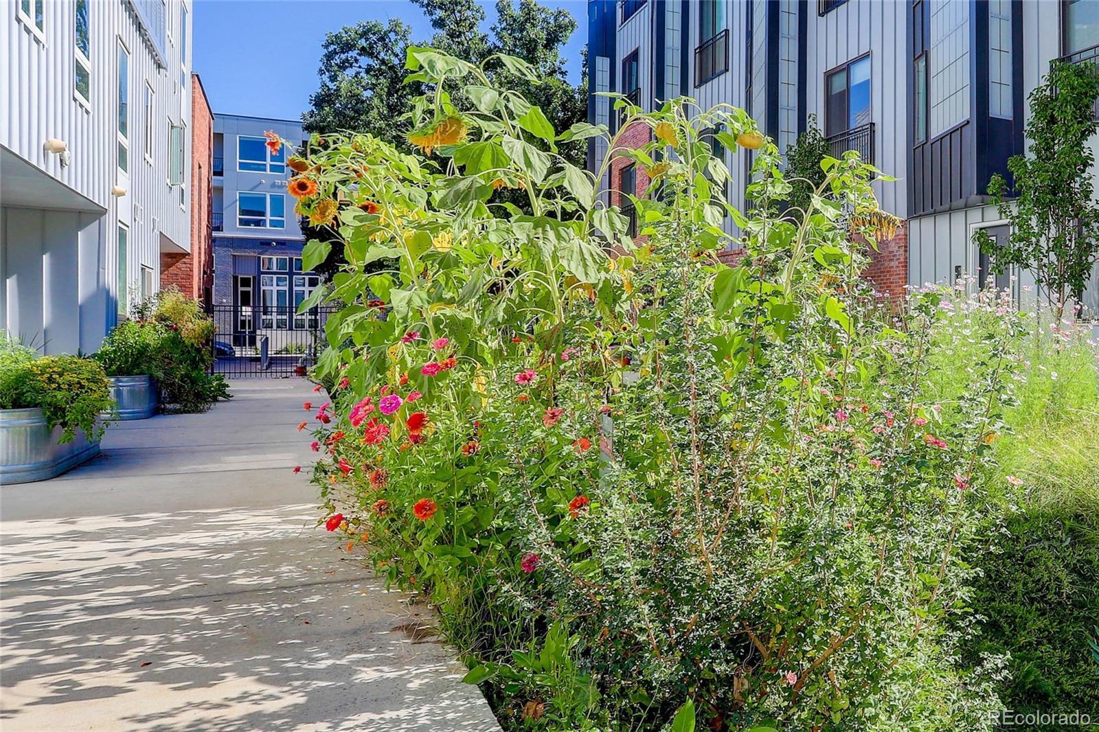 Get ready to fall in love with this terrific townhome! You are greeted with gleaming dark wood laminate floors when you enter this modern masterpiece. 10 foot high ceilings and southeastern windows flood the space with abundant natural light. Your guests will enjoy the views of downtown from every window as you cook up gourmet meals in your kitchen while working on quartz counters and stainless-steel appliances. Or take things outdoors while you throw the best BBQs in the big meticulously landscaped grassy courtyard garden, complete with grilling area. Your friends will love the swings, wildflowers and bird houses which help create this incredible entertaining space. Invite an out-of-town guest to stay with you comfortably in the guest room which also makes a great office. And when it’s all done, relax away the day in your spacious primary suite complete with big walk-in closet and large shower with bench seat. Take your morning coffee onto your private balcony and enjoy the sunrise over downtown, or have the perfect latte prepared for you at the coffee shop located at the southwest corner of the property. Your car will always be safe and just the right temperature when you park in your secure, underground parking garage which is well lit and includes bike storage, EV charging and a dog washing station right in your garage. Walking distance to Uchi and other world-class shopping and dining, not to mention parks and Coors Field! Welcome Home! Seller concession to help buy down your interest rate is available! Check out this article about the building: https://www.5280.com/2019/08/denvers-newest-multi-use-community-is-all-about-sustainable-living/ https://fb.watch/cEVjnYCJBv/