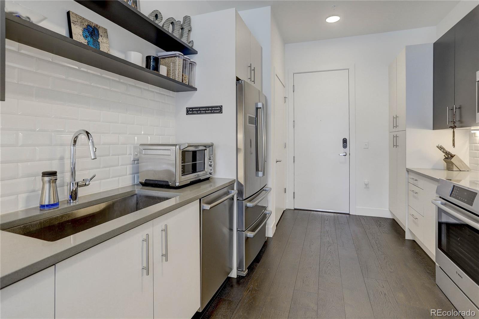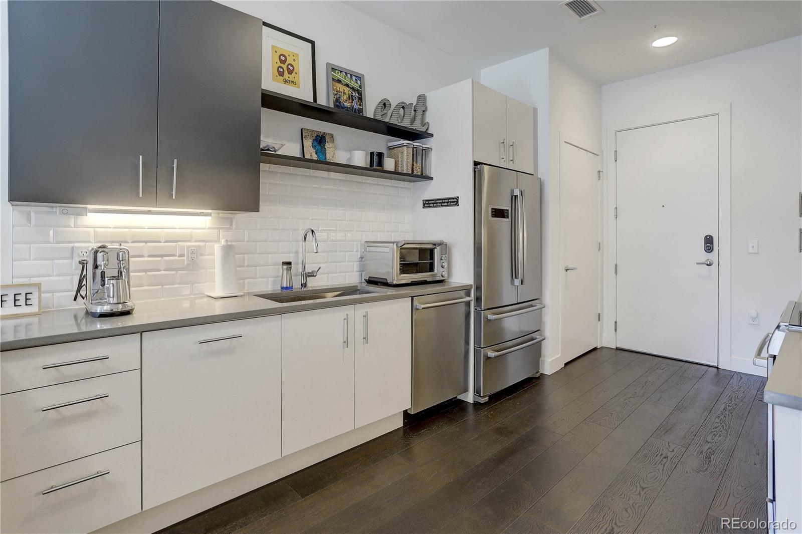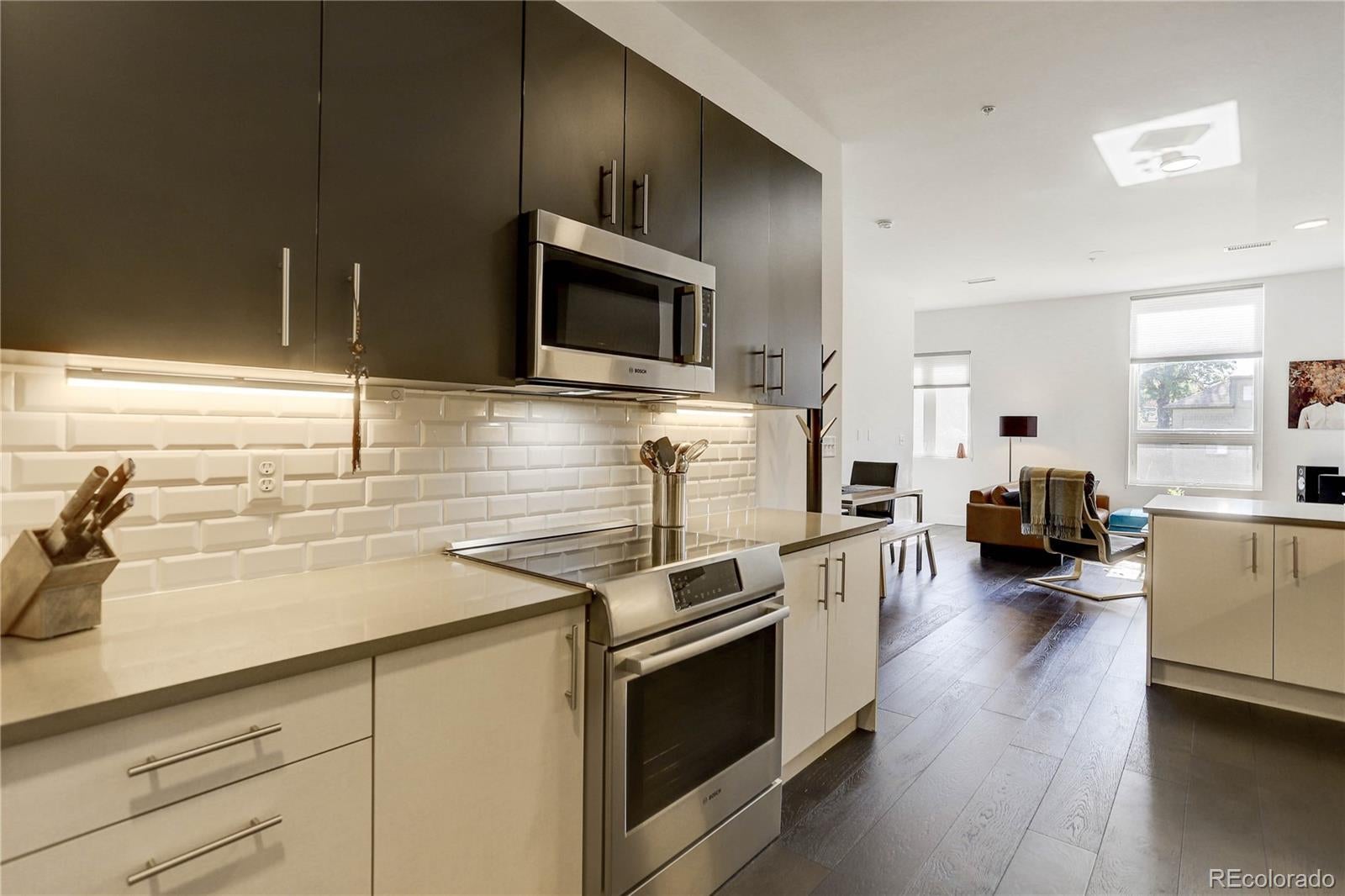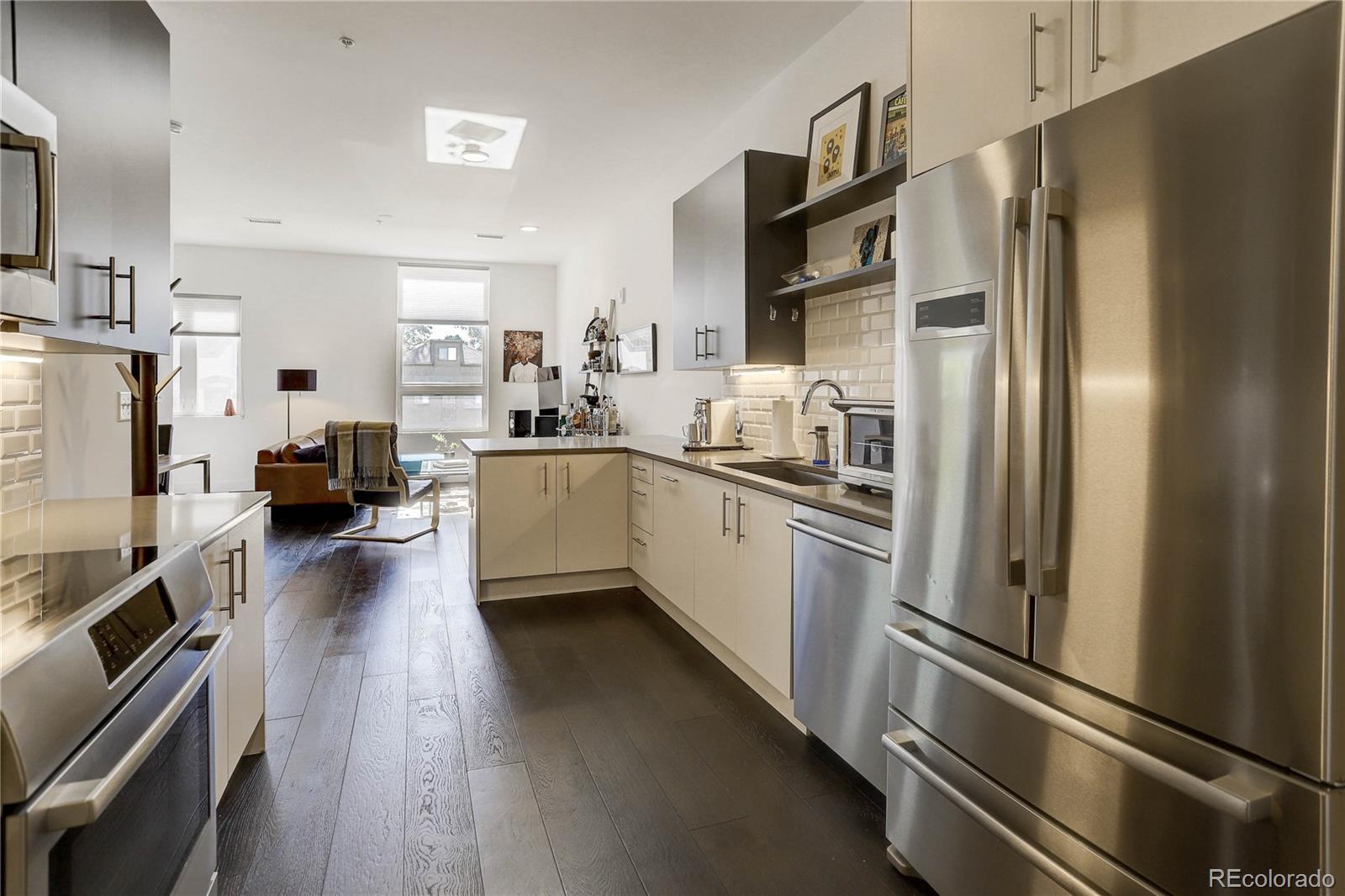 Get ready to fall in love with this terrific townhome! You are greeted with gleaming dark wood laminate floors when you enter this modern masterpiece. 10 foot high ceilings and southeastern windows flood the space with abundant natural light. Your guests will enjoy the views of downtown from every window as you cook up gourmet meals in your kitchen while working on quartz counters and stainless-steel appliances. Or take things outdoors while you throw the best BBQs in the big meticulously landscaped grassy courtyard garden, complete with grilling area. Your friends will love the swings, wildflowers and bird houses which help create this incredible entertaining space. Invite an out-of-town guest to stay with you comfortably in the guest room which also makes a great office. And when it’s all done, relax away the day in your spacious primary suite complete with big walk-in closet and large shower with bench seat. Take your morning coffee onto your private balcony and enjoy the sunrise over downtown, or have the perfect latte prepared for you at the coffee shop located at the southwest corner of the property. Your car will always be safe and just the right temperature when you park in your secure, underground parking garage which is well lit and includes bike storage, EV charging and a dog washing station right in your garage. Walking distance to Uchi and other world-class shopping and dining, not to mention parks and Coors Field! Welcome Home! Seller concession to help buy down your interest rate is available! Check out this article about the building: https://www.5280.com/2019/08/denvers-newest-multi-use-community-is-all-about-sustainable-living/ https://fb.watch/cEVjnYCJBv/