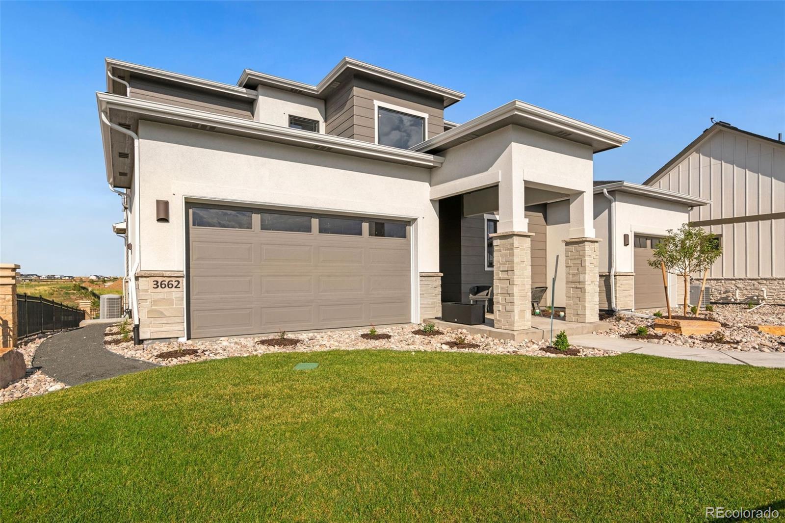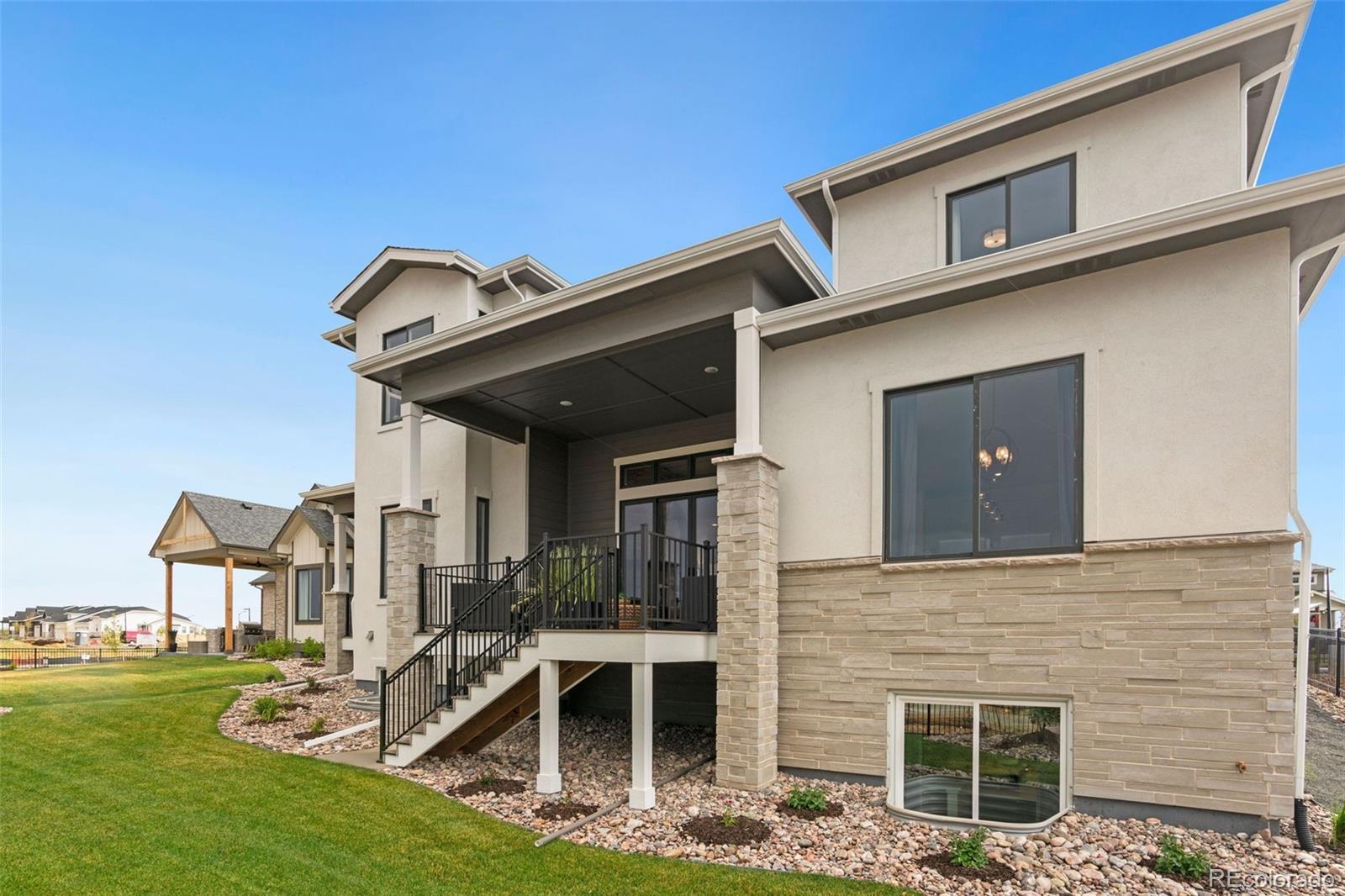 Now Available - Model Home leaseback opportunity! The Remington by Bridgewater Homes. Experience multi generation living in this immaculate 2-story Remington Model Home, crafted by renowned local builder Bridgewater Homes. This beautifully upgraded model showcases the finest in quality construction and high-end finishes throughout. Boasting a split garage w/private entrance to main floor on-suite, this 6 bedroom, 4.5 bathroom, and a main floor office, offers space for everyone - including a fully finished garden level basement with a beautiful wet bar. Premium features include: Engineered hardwood flooring, Gourmet kitchen with gas range, double ovens, slab quartz counters, and custom Tharp cabinets. Large walk-in pantry and functional mudroom. Cozy gas fireplace and designer touches throughout. Retreat to the luxurious primary suite with a spa-inspired 5-piece bath and walk-in closet. Convenient upstairs laundry, central A/C, whole-home humidifier, and 2x6 exterior walls for energy efficiency add to the comfort and value. Outside, enjoy the beautifully landscaped front and back yards, a 12' x 18' covered deck. Located in The Aurora Highlands with easy access to top schools, shopping, Denver International Airport, and commuter routes. Don't miss your chance to own the Remington-schedule your private showing today! Model Home leaseback at 8% CAP rate for 12 months with the option to extend month to month thereafter.