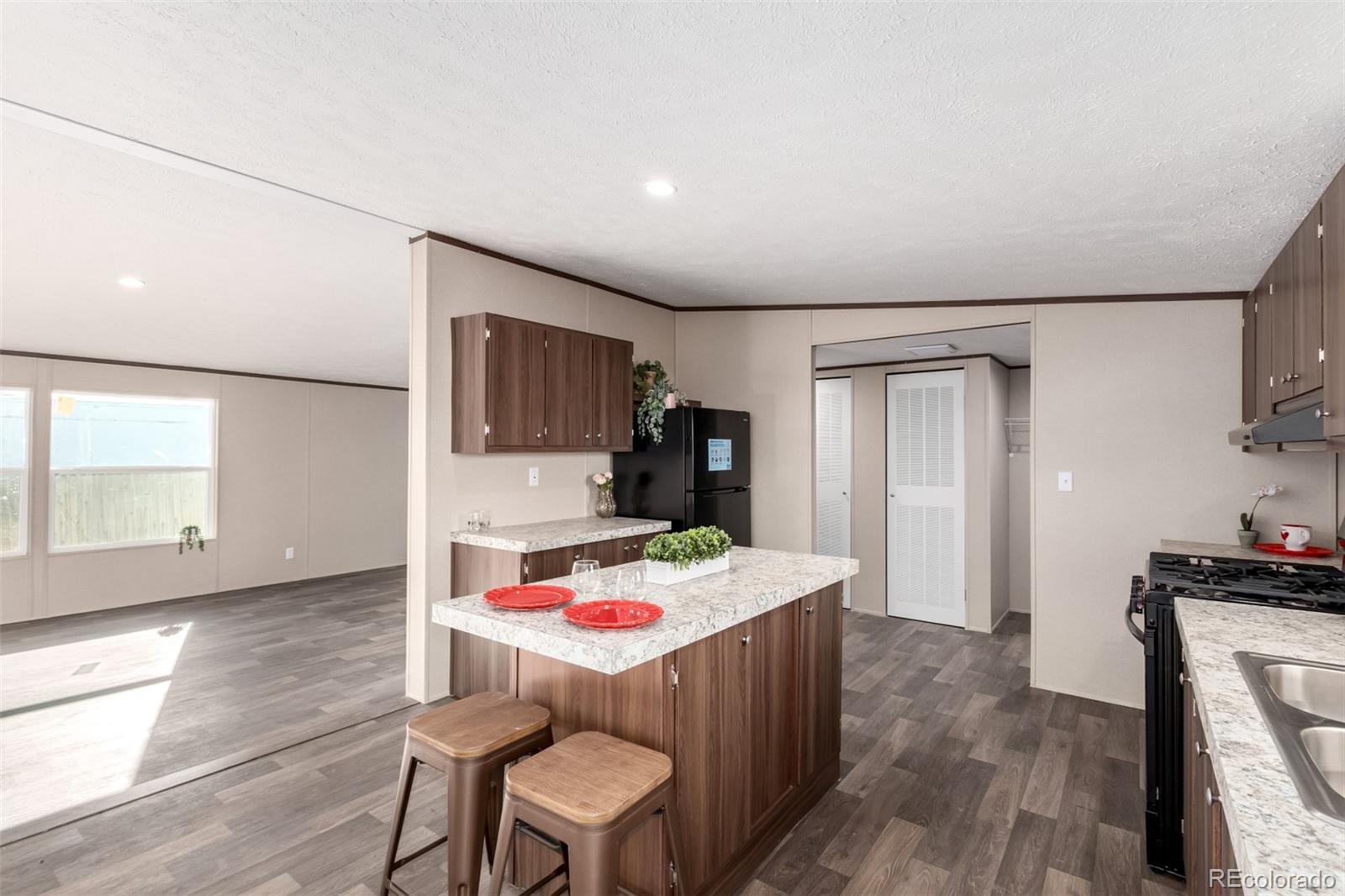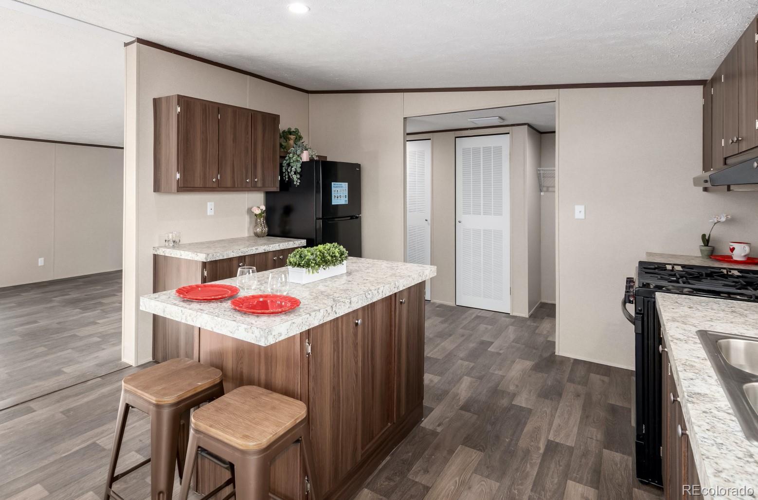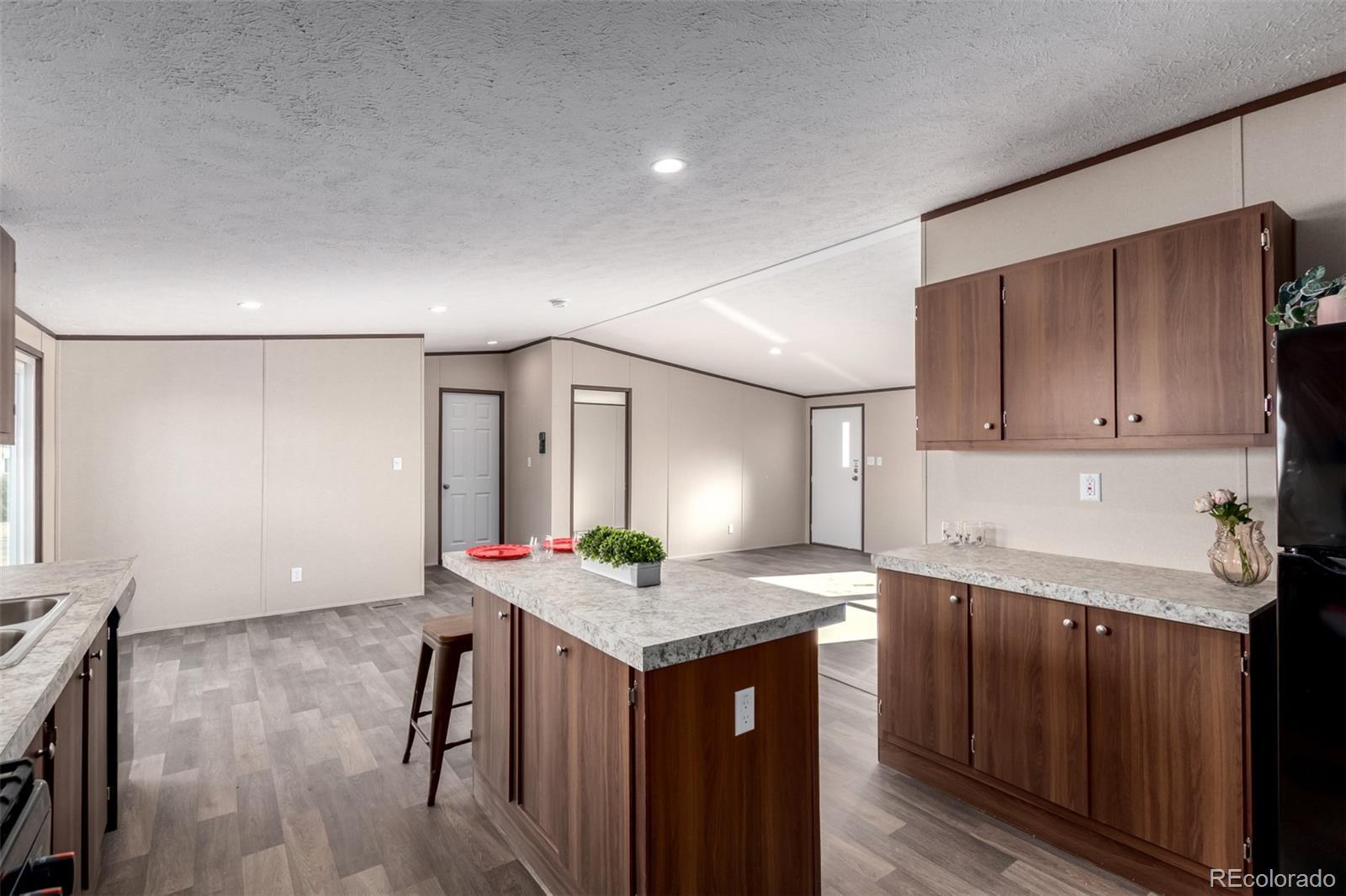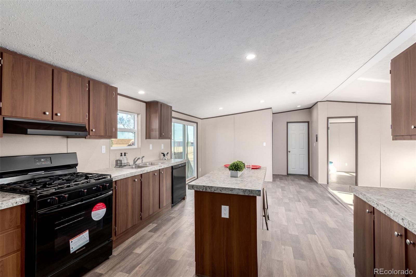 Welcome home to this brand new 3 bed, 2 bath energy efficient Clayton home in Colorado Springs with breathtaking Pikes Peak views. This home offers a bright and open floor plan with abundant natural light, warm finishes, and a welcoming atmosphere throughout. The spacious kitchen features rich wood cabinetry, ample counter space, stainless steel appliances including a gas range, all appliances are included. The large center island is perfect for meal prep or eat in space. The open layout flows seamlessly into the main living area, creating an ideal space for everyday living and entertaining. The spacious dining area provides plenty of room for a larger table, making it the perfect spot for entertaining or enjoying a quiet dinner. This floor plan is very ideal with the primary bedroom on the opposite side of the home from the other two bedrooms. The primary suite is very spacious and has a private en-suite bathroom, while the additional bedrooms are well-sized and versatile for a home office, or hobbies. Both bathrooms feature clean, modern finishes and functional layouts. There is a dedicated laundry area with a hanging rack perfect for additional storage. There are plenty of parking spaces. From the brand new front patio take in the wide-open Colorado landscape. Enjoy peaceful sunsets, expansive skies, and the feeling of country living while still being conveniently located near Colorado Springs amenities.