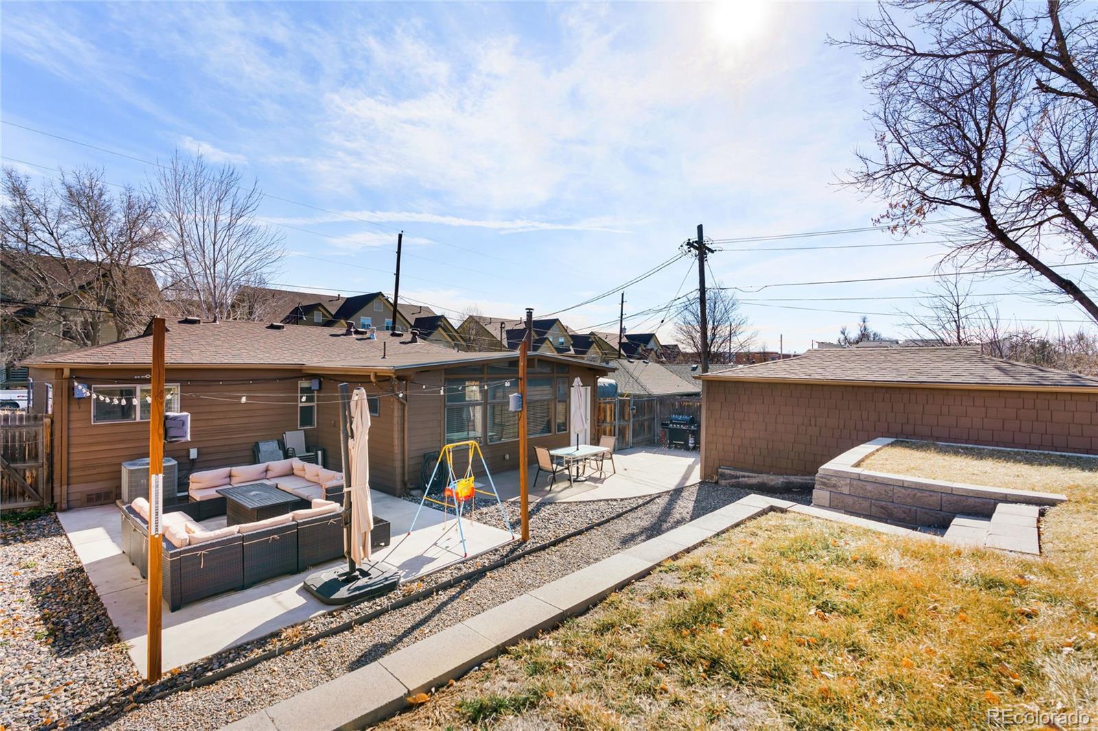 Tucked along a lush, tree-lined street just steps from Olde Town Arvada, this charming bungalow offers an exceptional opportunity to own in one of the area’s most vibrant and walkable neighborhoods. This 3-bedroom home blends timeless character with everyday comfort. Exposed beams add architectural interest, while a cozy sunroom featuring a classic wood-burning stove creates the perfect retreat — an inviting space for quiet mornings, afternoon reading, or warm winter evenings. The home’s original charm shines throughout, complemented by a functional layout and abundant cabinetry designed for practical livability. Situated on a generously sized lot, the outdoor setting feels private and serene. A brand-new, expansive patio extends the living space outdoors and features hard-wired speakers — ideal for hosting dinner parties, summer gatherings, or unforgettable movie nights under the stars. The extra-long driveway accommodates 3–5 vehicles and/or an RV, offering flexibility rarely found at this price point in the metro area. Enjoy unbeatable convenience to Olde Town’s boutiques, dining, and light rail access just moments away. Located only 0.5 mile from I-70, this home offers quick access to Downtown Denver (15 minutes), Boulder (30 minutes), Denver International Airport (30 minutes), and the mountains beyond...and did we mention, the RV is for sale along with the house should the perfect buyer be interested! Character, location, and lifestyle — all within reach.