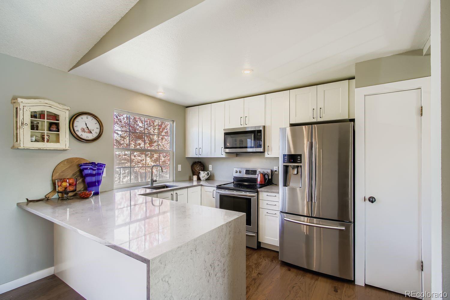 Live the Colorado dream in this beautifully updated home in the heart of Countryside. Just a short stroll to Westminster Hills Open Space 480-acre off leash dog park with views of mountains and Stanley Lake. This three-bedroom, two-bath blends modern convenience with peaceful suburban living. Curb appeal shines with newly painted siding, new roof, mature water-wise landscaping, inground sprinklers and a raised garden bed with drip system. Inside, natural light fills the space, highlighting engineered hardwood flooring, stylish finishes, and an open layout designed for comfort and flow. The kitchen features a quartz waterfall counter, stainless-steel appliances, and seamless connection to dining+living. Downstairs, a versatile lower level offers space for media, work-from-home, or guests. Outside, a private patio provides a tranquil spot to unwind, while nearby trails and greenbelts bring nature to your doorstep. With easy access to US-36 and downtown Denver, this home offers a rare balance of urban convenience and serene community living. Perfect for active lifestyles, dog lovers, and anyone seeking their next chapter in a welcoming neighborhood.