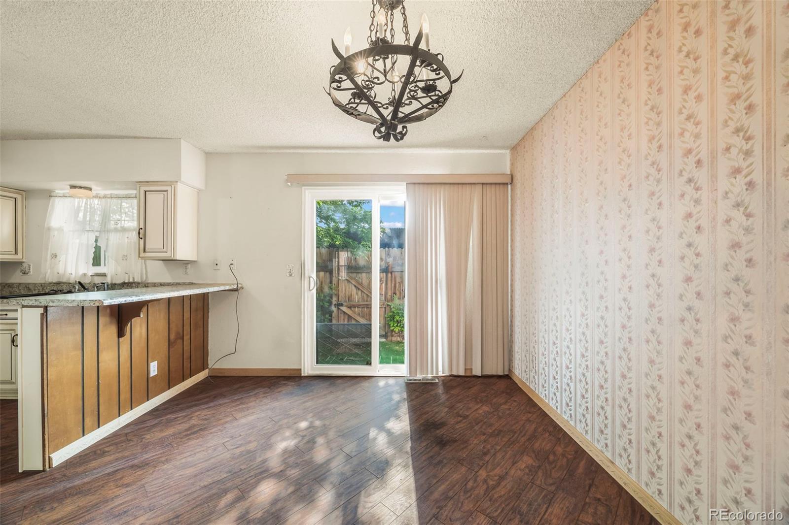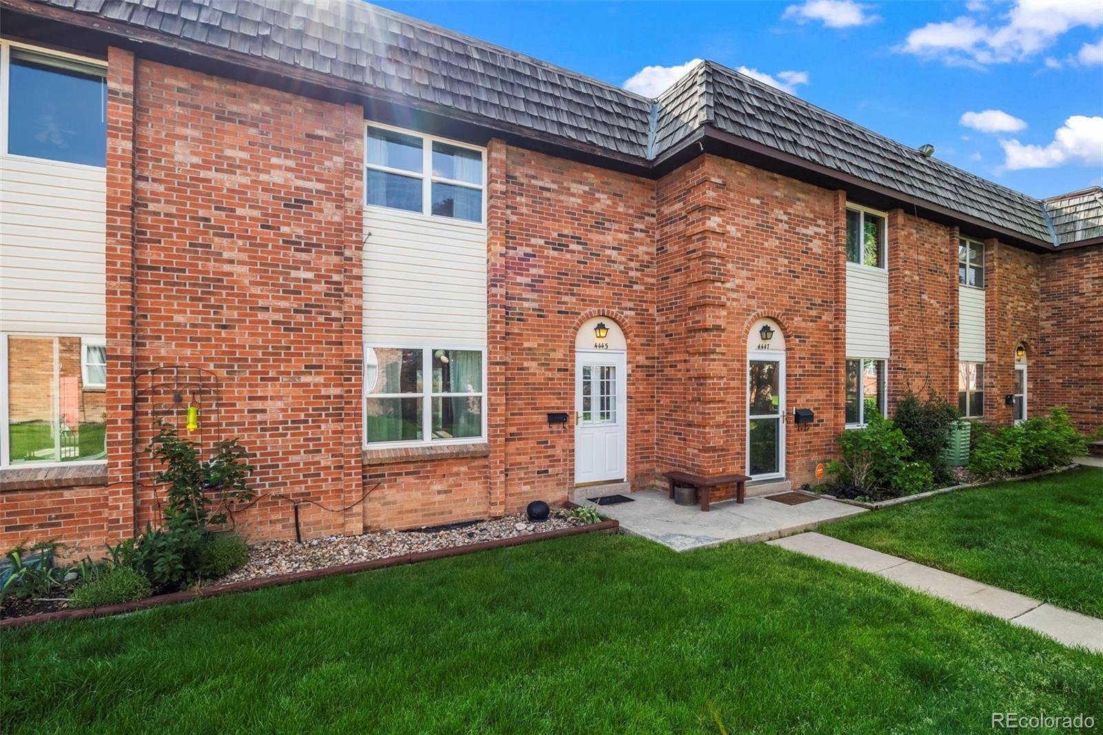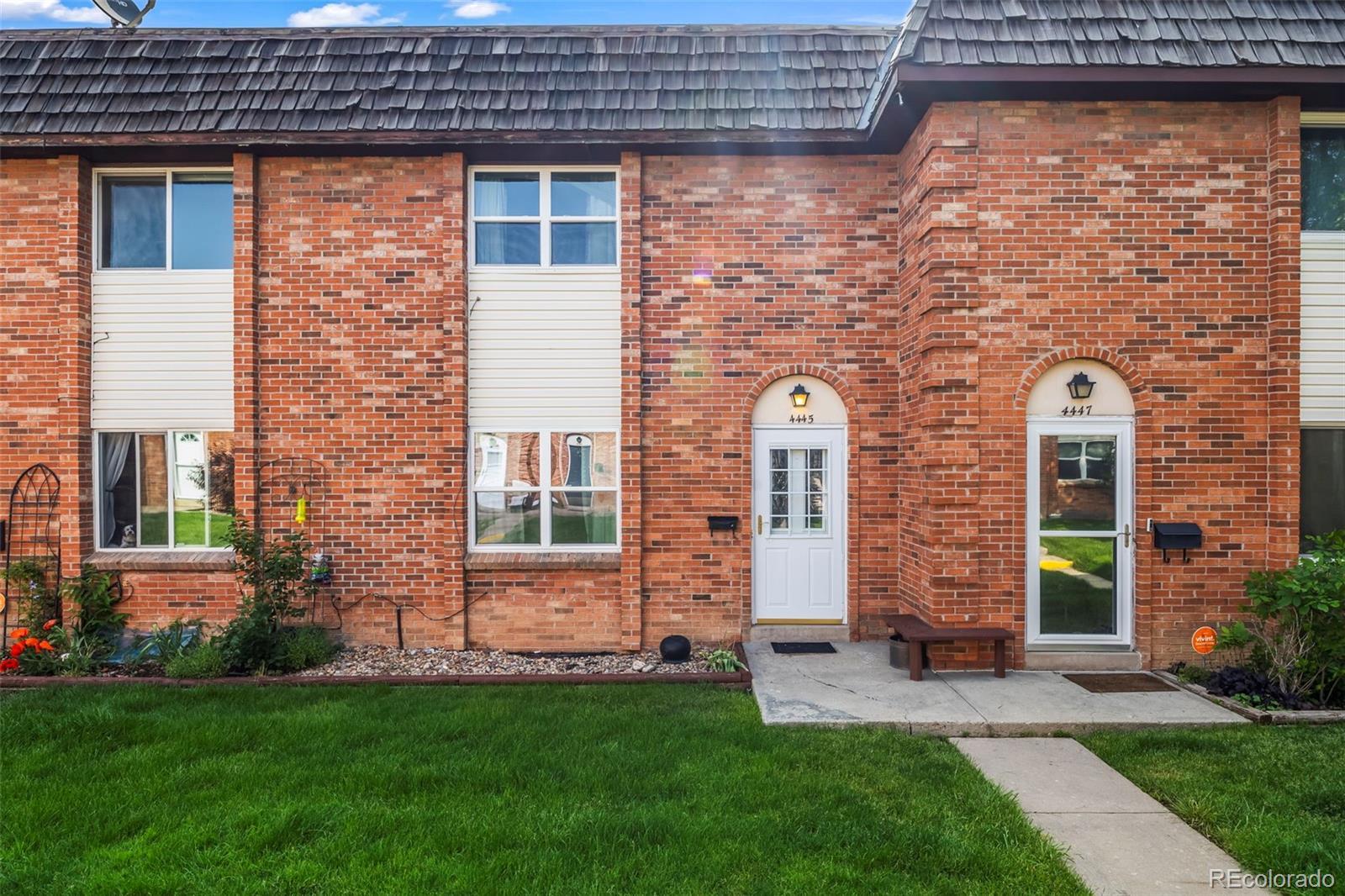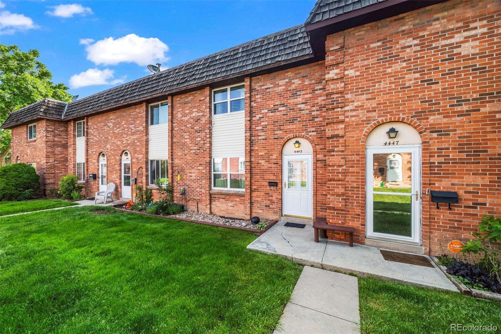 Welcome to 4445 S Lowell Boulevard, a delightful 2-bedroom, 2-bath townhome-style condo in the inviting Westchester North community. A classic brick archway and cheerful landscaped walkway lead into a thoughtfully designed home with timeless charm and abundant potential. Inside, the main level offers a bright and spacious living room with a cozy fireplace and elegant wrought-iron stair railings. The flow continues into the dedicated dining space with sliding glass doors that open to a private, tree-shaded patio—ideal for summer evenings or a tranquil morning retreat. The adjacent kitchen exudes vintage appeal with soft-close cabinetry, decorative trim, and generous counter space for everyday cooking or hosting friends. Upstairs, two well-sized bedrooms offer ample closet space and share a full bathroom with nostalgic wallpaper detail. The full-size basement spans over 540 square feet and is a true blank canvas—perfect for future living space, creative studio, gym, or storage. Other highlights include one assigned covered parking space directly behind the unit, in-unit laundry hookups, and forced-air heating. The HOA covers exterior maintenance, water, sewer, trash, and snow removal for low-stress living, and recently got a FHA spot approval! Located just minutes from shopping, dining, parks, and major commuter routes like US-285 and Santa Fe Drive, this home delivers the perfect mix of convenience, community, and character—with room to make it your own.Don’t miss this incredible opportunity to own a slice of Colorado living!***Seller has added a fresh coat of paint and new carpet throughout the home***