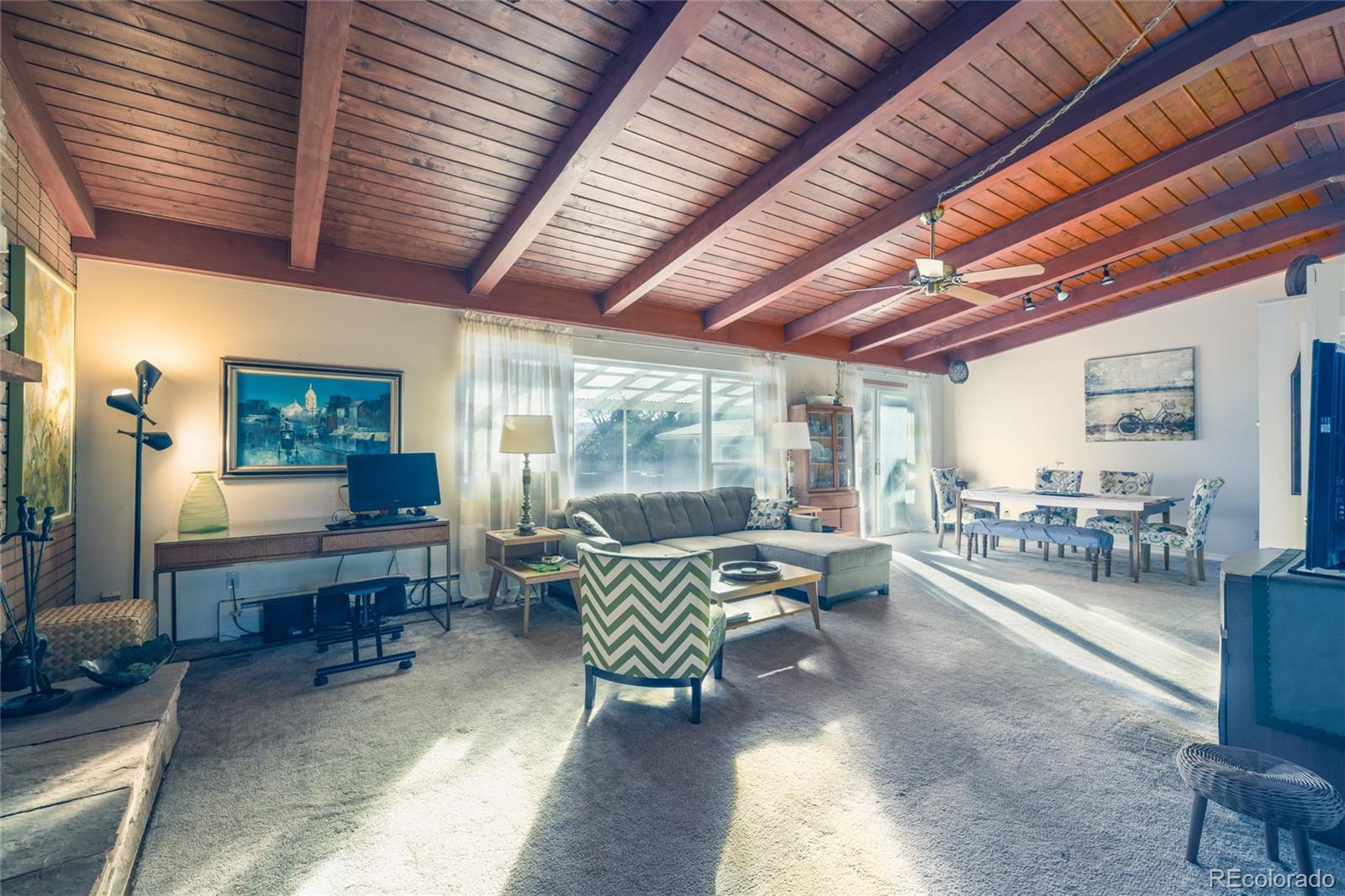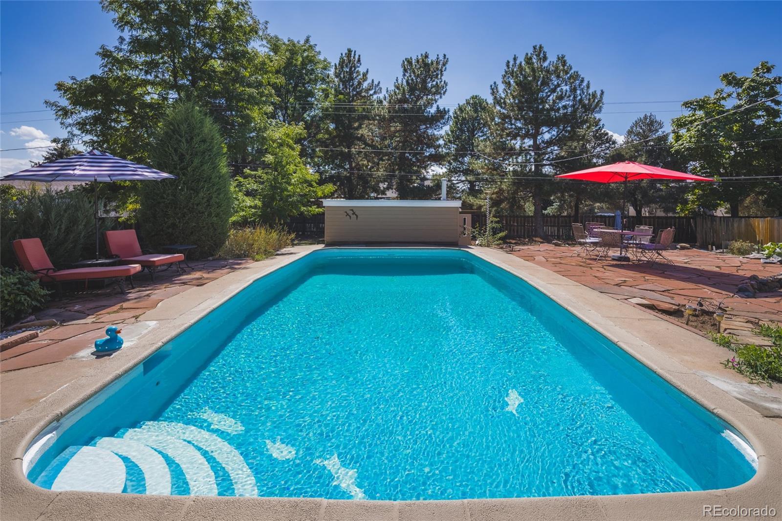 Nestled within one of Littleton’s most distinguished neighborhoods, 7332 West Stanford Avenue sits on an expansive 0.54-acre lot (23,914 square feet) in the quiet, tree-lined enclave of Lochmoor. Step inside to discover abundant natural light, vaulted ceilings with exposed beams, and the framework for your personal touches. The mid-century tri-level design and basement gives separation of space across more than 3,400 square feet. With five bedrooms and two baths, this classic 1957 mid-century brick home offers the perfect blend of vintage character and potential. On over a half-acre lot, this property delivers outdoor freedom within city limits — a beautifully landscaped backyard sanctuary featuring mature trees, a private pool, garden, golf putting green, spacious chicken coop, astroturf lawn, and an expansive flagstone patio for relaxing or entertaining, equipped with an exterior gas line for your grill or future expansion. The oversized garage and sheds offer ample storage. This home gives you access to the best of Lakewood and Littleton — located near highly rated schools, close to shopping, dining, and services, within an established and coveted community.