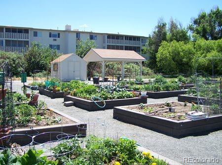Witness year round breathtaking Colorado sunsets from this west-facing, top floor corner unit in one of the area's most sought after 55+ communities. This condo features vaulted ceilings & extra windows for a light & airy feel, with added privacy as it is surrounded by lush mature trees and only one shared wall with no one above you. Secure building access and only a half block from the community center where there is no shortage of amenities to include restaurant/bar with quaint patio seating option overlooking the 9-hole, par 3 golf course, new fitness center, indoor & outdoor pool & hot tub, theater room, library, community gardens, clubhouse & more! This unit has a deeded parking space with cowboy storage in a secure, underground garage, as well as additional storage closet just down the hall from your front door. Updated LVT flooring flows through the living room and kitchen and adds both style & durability. Sizeable bedrooms with wall length closets in addition to a pantry and entry closet - there is no shortage of storage. Start your day or unwind on the covered Lanai sunroom which boasts floor to ceiling windows & natural light. This peaceful two bedroom, one bath condo is waiting for you to call it home!