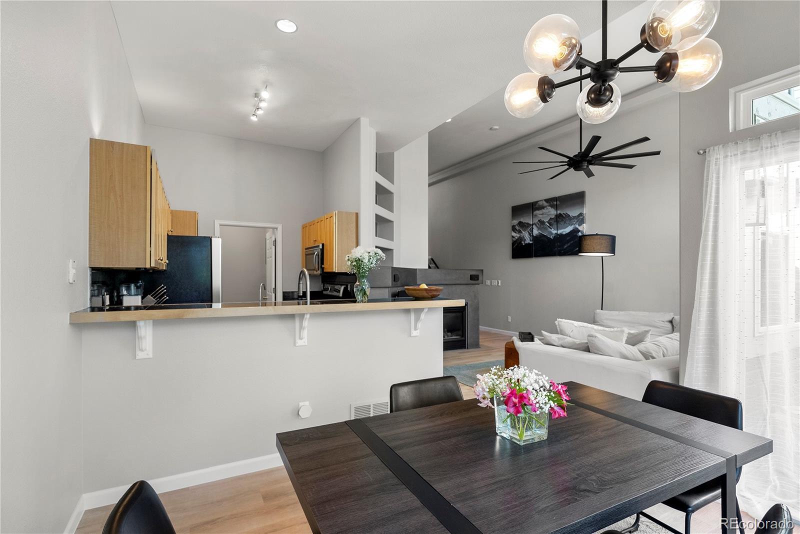 Welcome to this beautifully updated 2-bedroom, 3-bath townhome offering 1,800 square feet of stylish and functional living space. The main living room and expansive primary bedroom feature vaulted ceilings, filling the home with natural light and allowing the space to feel open and airy. Upgrades include luxury vinyl flooring on the main and lower levels, modern light fixtures, stainless steel appliances, a fully integrated reverse osmosis water purification system, and an EV charging station in the garage. The top level is dedicated to a spacious primary suite with vaulted ceilings, a 5-piece en-suite bath, and a walk-in closet. The lower level provides a secondary bedroom, additional living space, and a luxuriously updated full bathroom. Head outside to a low-maintenance Trex deck, perfectly framed by mature pine trees that create a peaceful and private setting. Enjoy the Highline Canal Trail, offering over 70 miles of paved walking and bike paths, with an entry point just steps from your front door. Located only 4 miles from Cherry Creek North, this property is hard to beat!