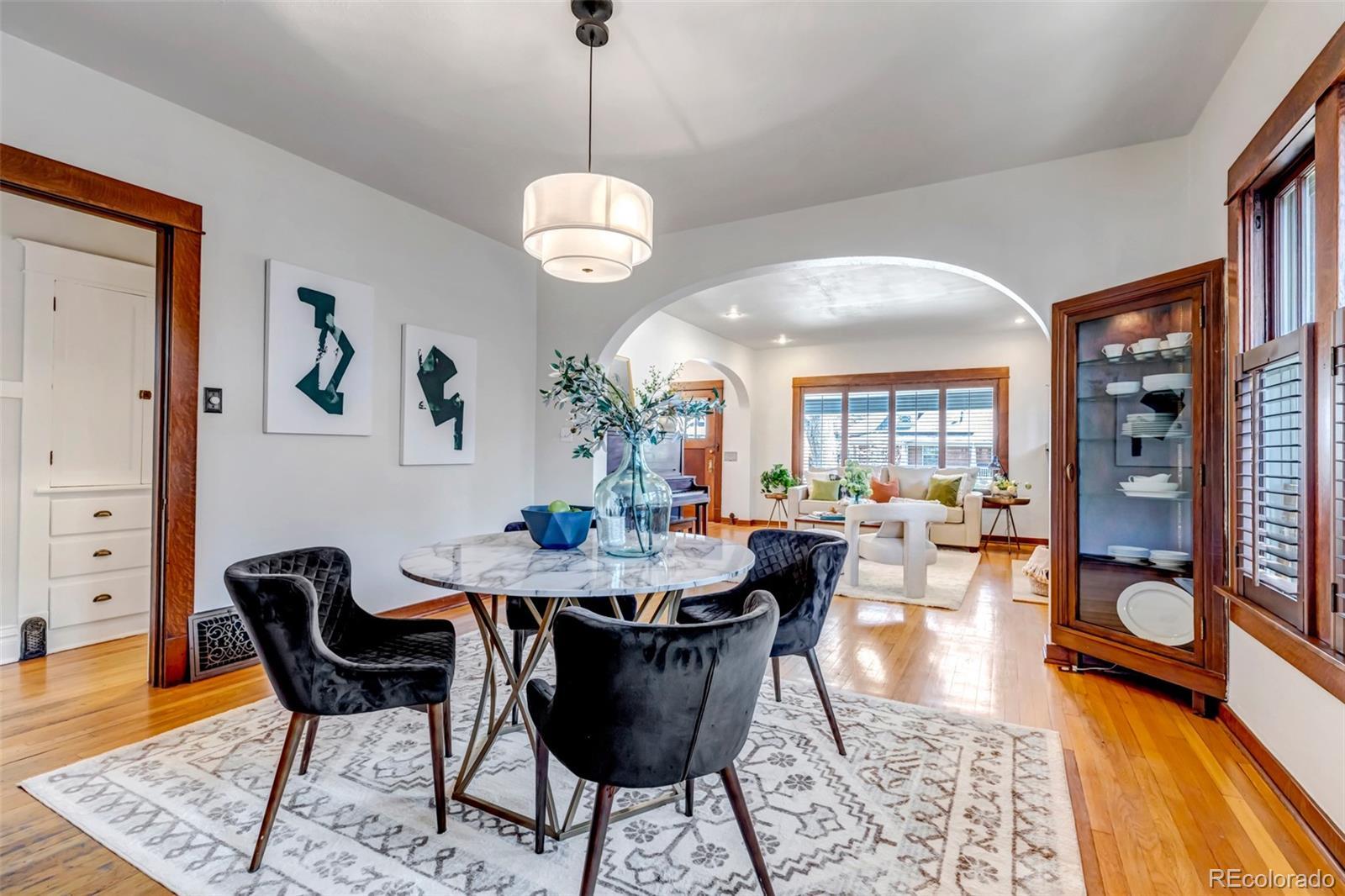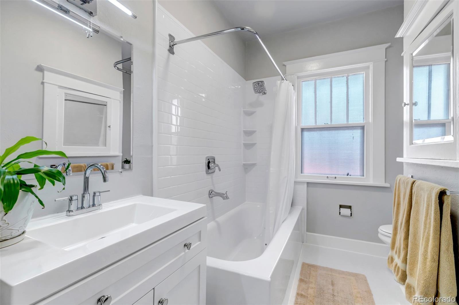 With a tasteful blend of classic style and modern updates, this stunning Wash Park bungalow features a newly remodeled kitchen and bathroom along with lighting upgrades in the dining room and living room. Recently showcased on the annual Wash Park Home Tour, this three bedroom, two bathroom house has two original oak built-in cabinets framing the dining room, and hardwood floors throughout the main level. The kitchen has remodeled cabinets, new quartz countertops, modern fixtures, a new subway tile backsplash, and a breakfast nook overlooking the manicured backyard. One of the two large main-floor bedrooms has an adjacent window-filled sunroom perfect for a nursery or office. The finished basement features new carpeting in the ample family room that offers a natural divide providing space for an office, as well as a 3/4 bathroom, non-conforming bedroom, laundry room and storage space in the mechanical room. This well-maintained house has received a new roof, new exterior paint, irrigation system upgrades, and a new fence all within the last ten years (the current owners have lived in the house for twenty years). The front-entry two-car garage offers added security with no alley access and a spring blossom tree-lined driveway, and the flowering pear trees on the south side of the house bring shade in the summer. You won't find a more lovingly cared for, charming bungalow on such a friendly, tree-lined street.